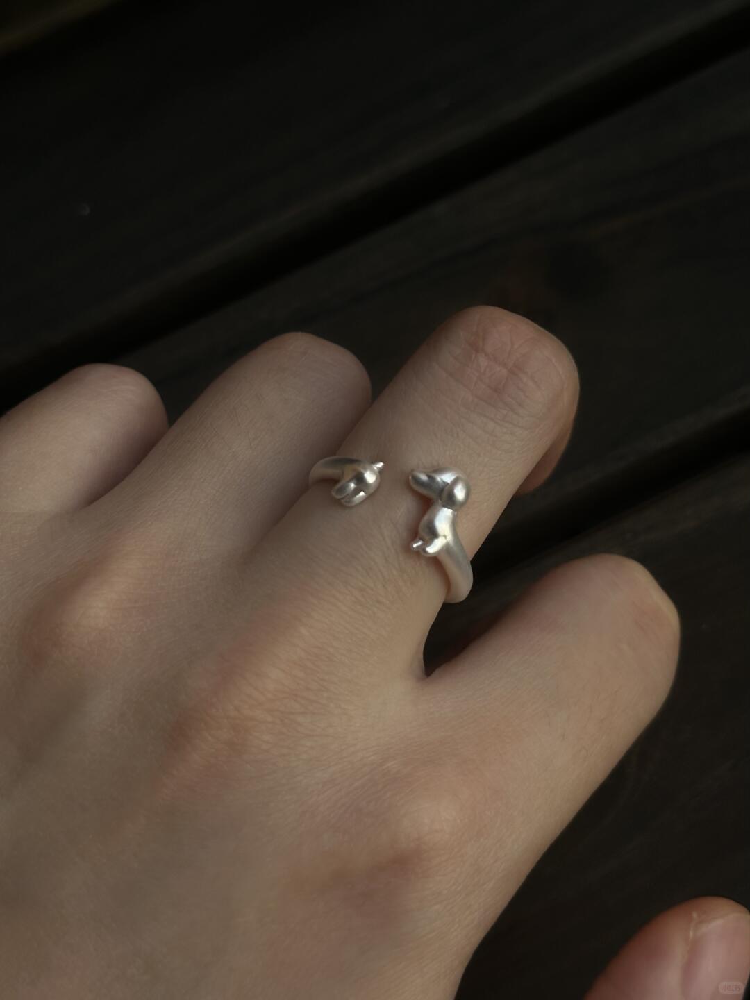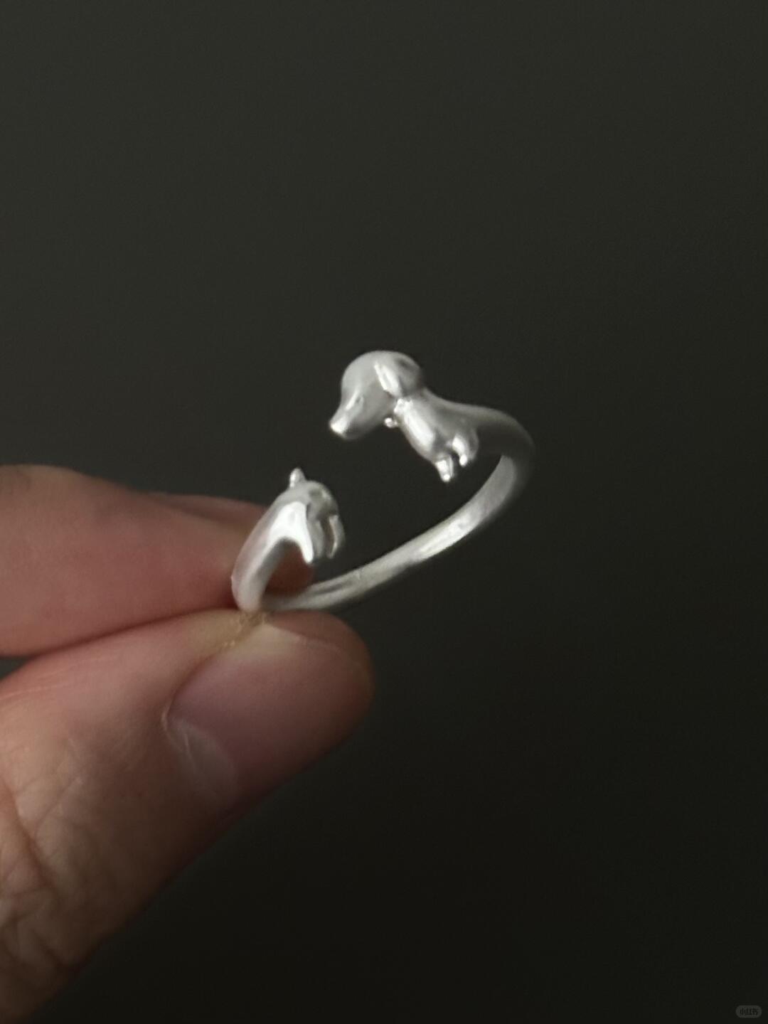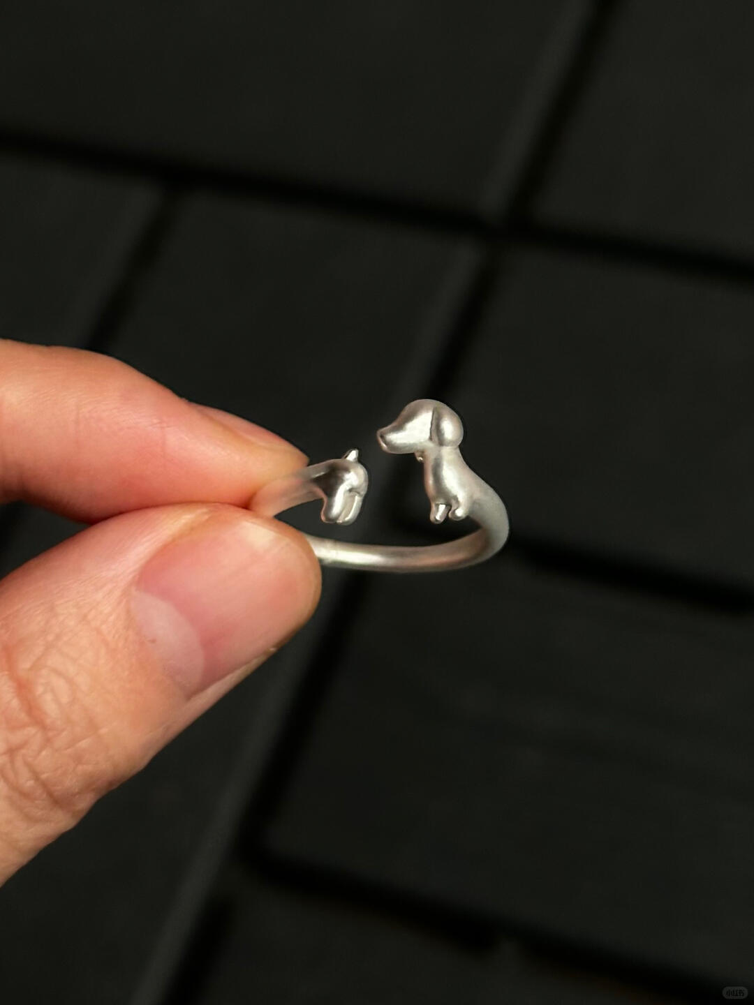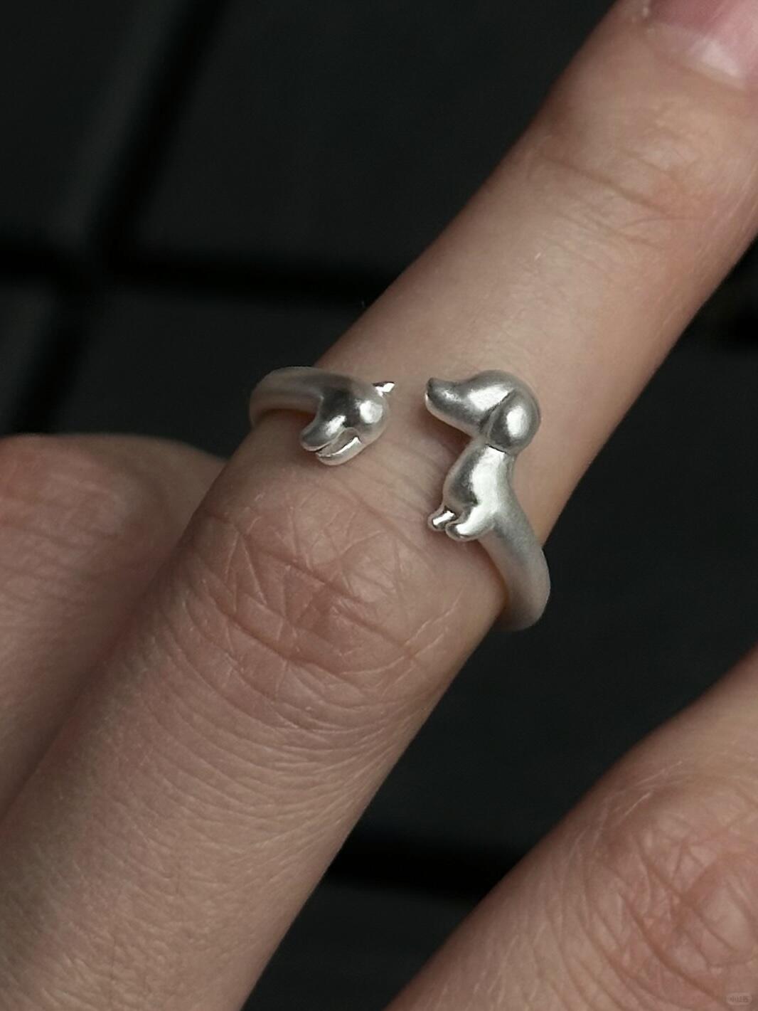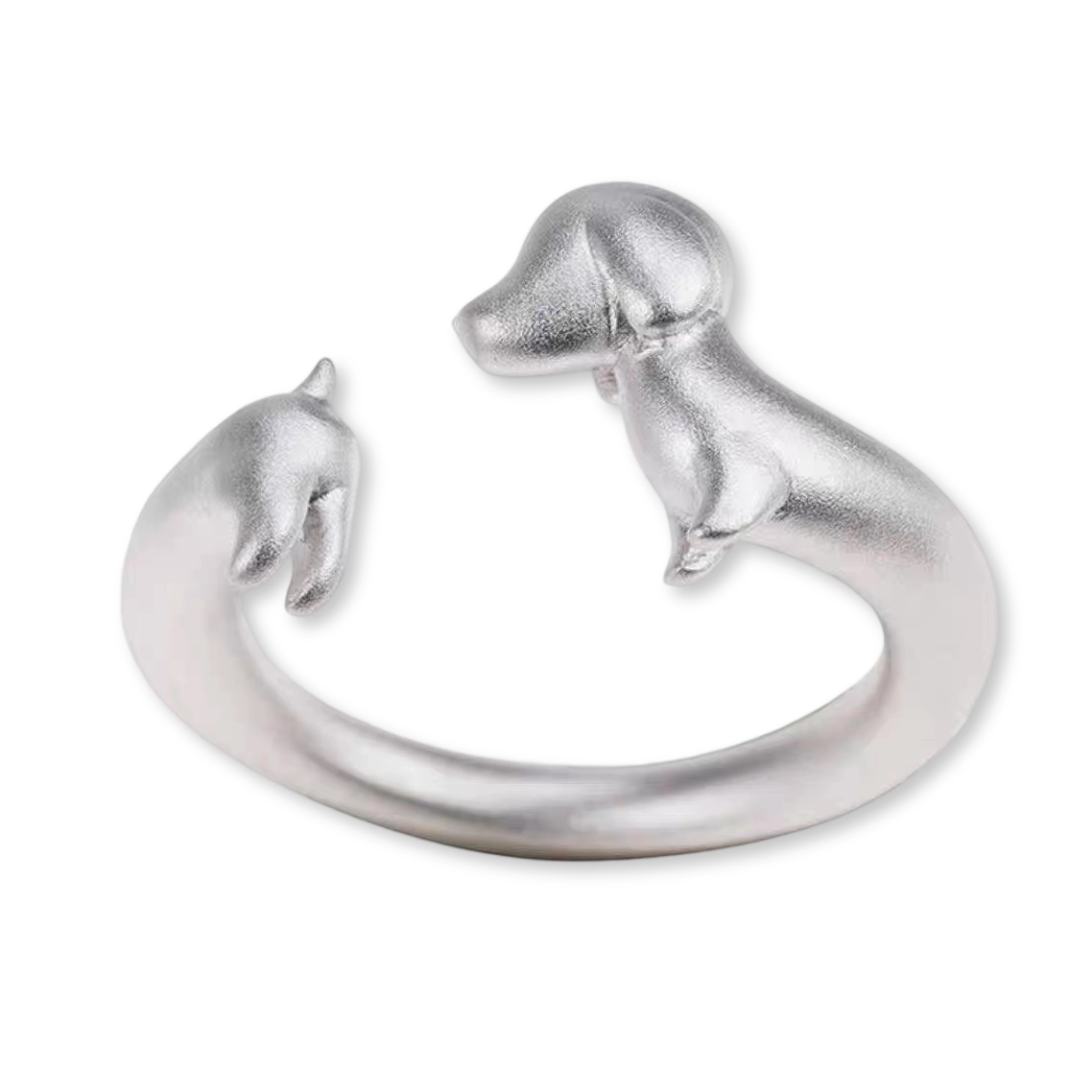 Realizzato in lega color argento lucido, l'anello si avvolge a forma di un bassotto extra lungo: le sue piccole orecchie, le zampe tozze e la coda che lo avvolge completamente. È allo stesso tempo un gioiello e un'espressione estetica: morbido, buffo, accattivante. Regolabile in taglia, è ideale da abbinare o da regalare al tuo amante dei cani preferito.
