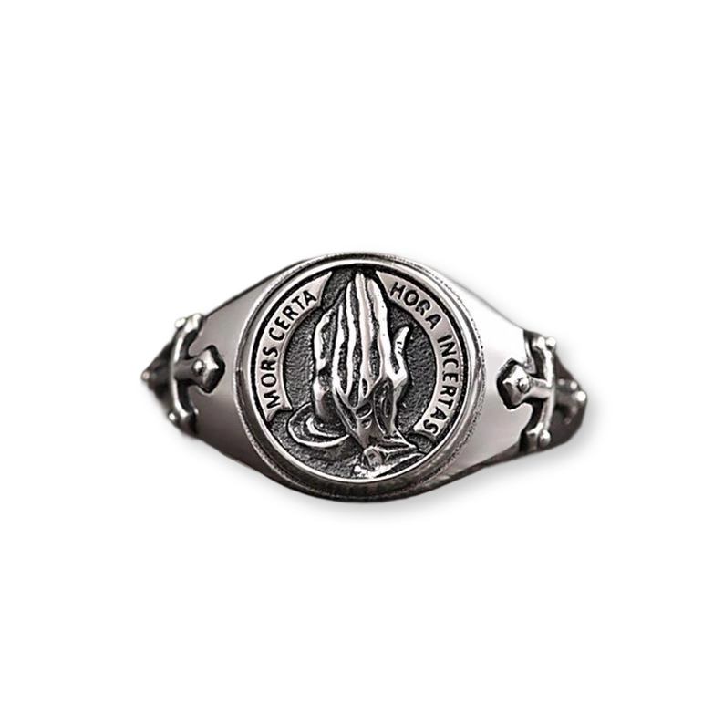 L' Anello della Preghiera non ha a che fare con la religione, ma con il silenzio. Con il cercare qualcosa quando nient'altro ti trattiene. Pensato per quei momenti in cui il mondo ti sembra rumoroso e tu no, questo anello diventa una liturgia privata, da indossare a stretto contatto.
