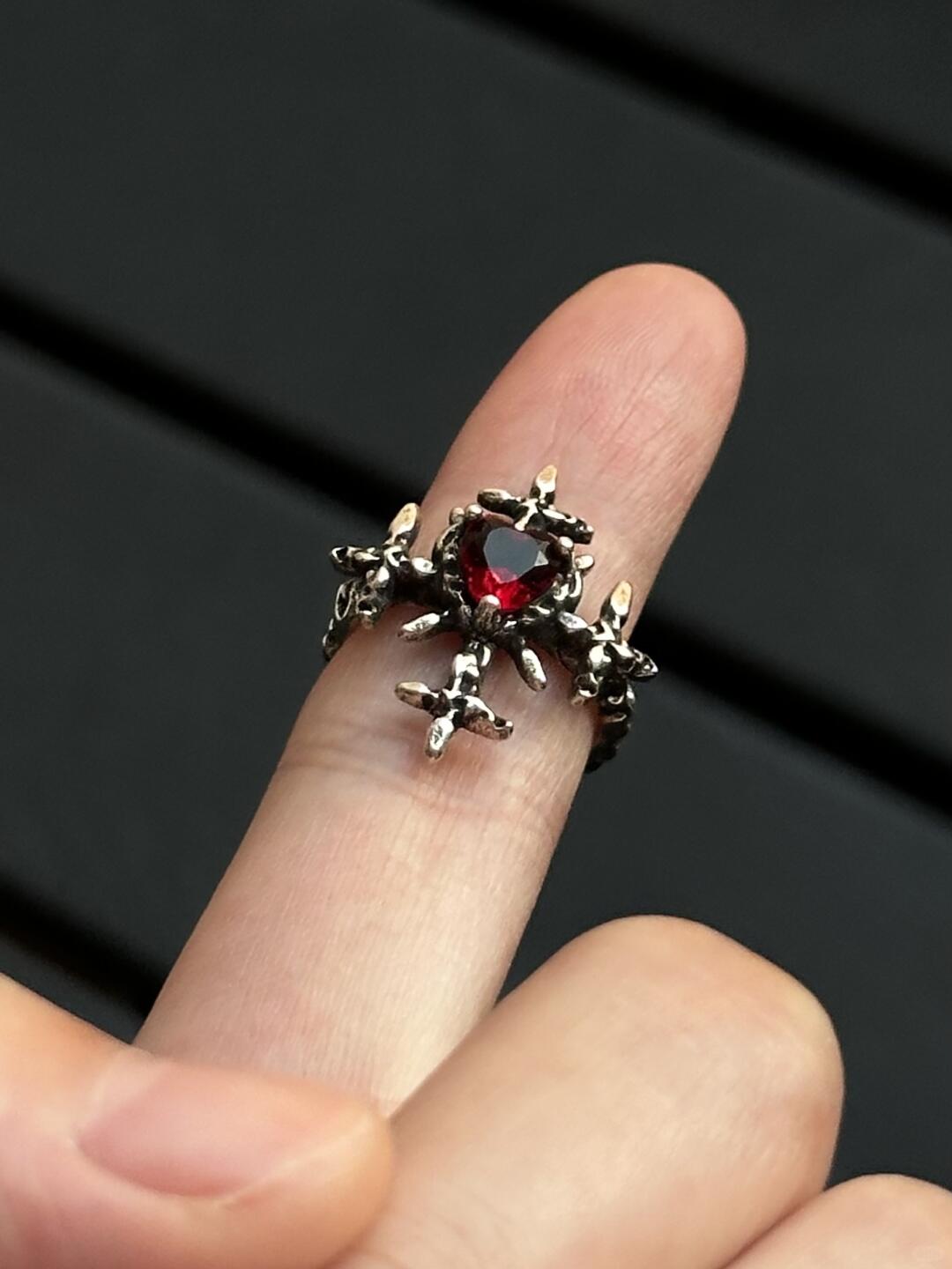 L' anello con pietra preziosa Cuore d'Inverno è nato in una silenziosa mezzanotte passeggiata, dove il primo fiocco di neve della stagione è atterrato su un cuore rosso nascosto frammento. Catturò la luce della luna e si rifiutò di sciogliersi, proprio come l'amore che riscalda anche nelle notti più fredde. Indossalo per portare con te quella scintilla quando il mondo sembra ghiacciato.