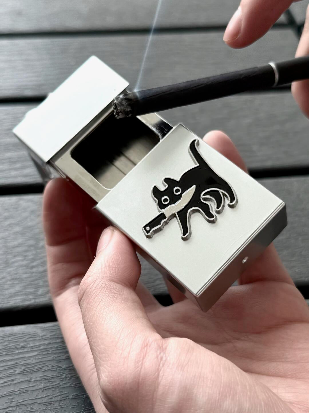 The Killer Cat Ashtray is a bold and playful design, featuring the charm of black cats and a rebellious attitude. Perfect for smokers who value style, convenience, and a touch of humor, this portable ashtray is both functional and unique.