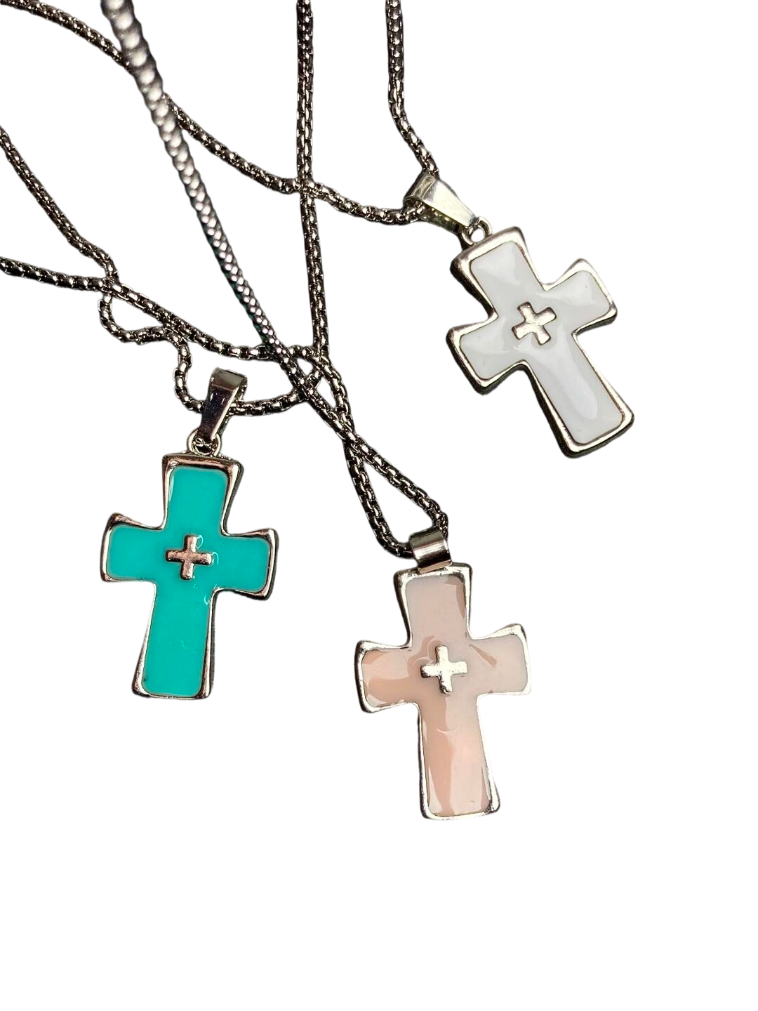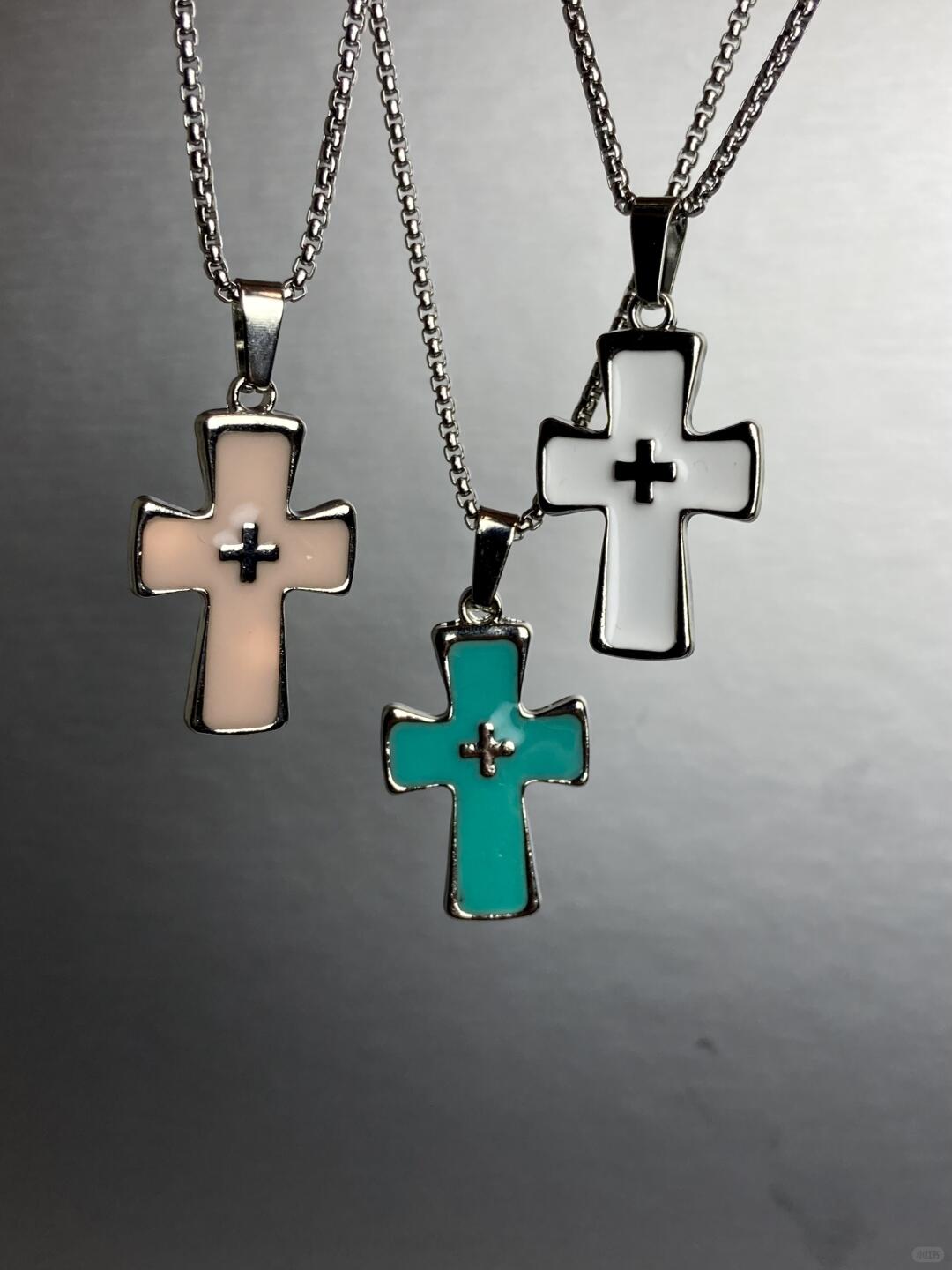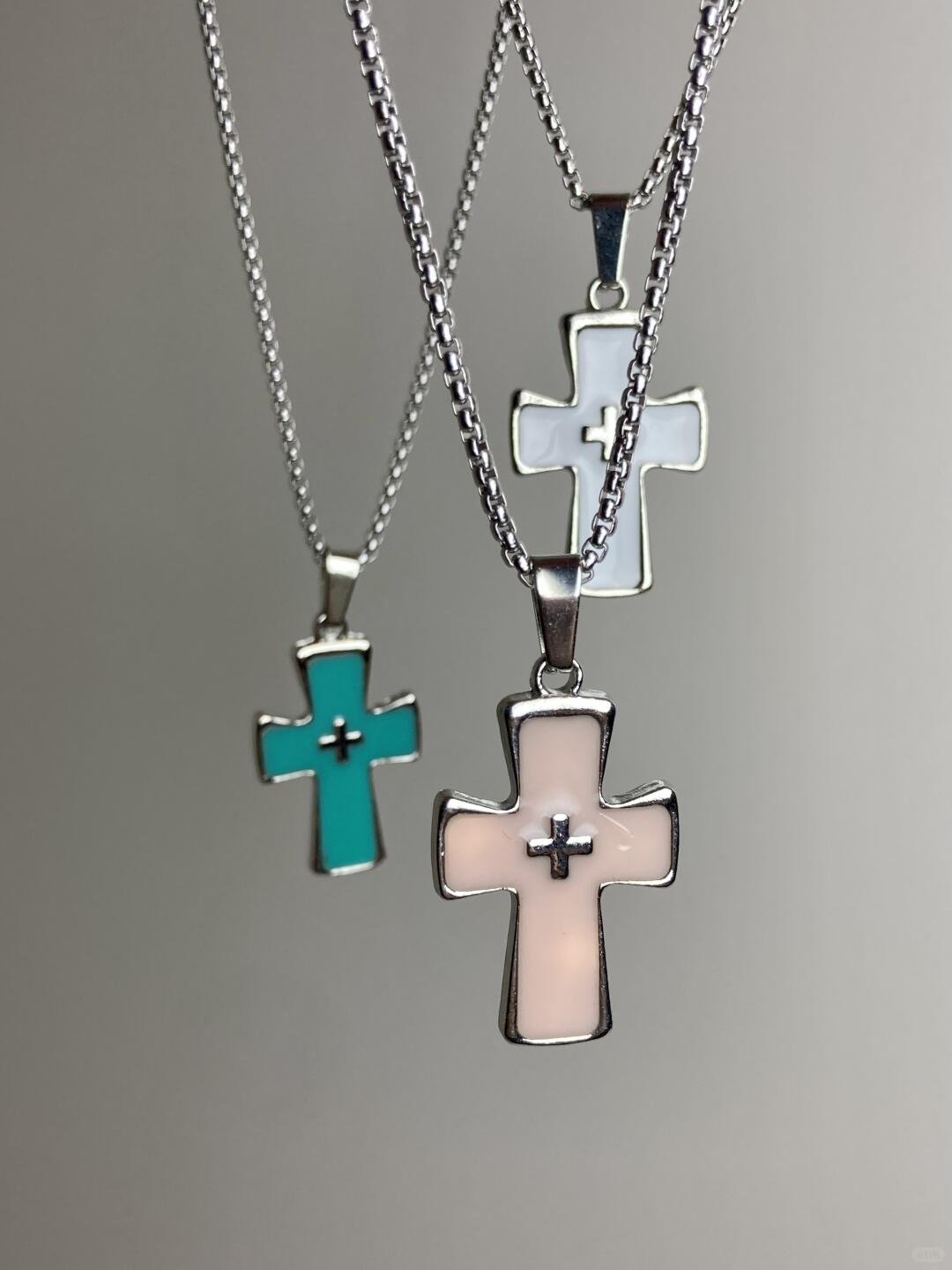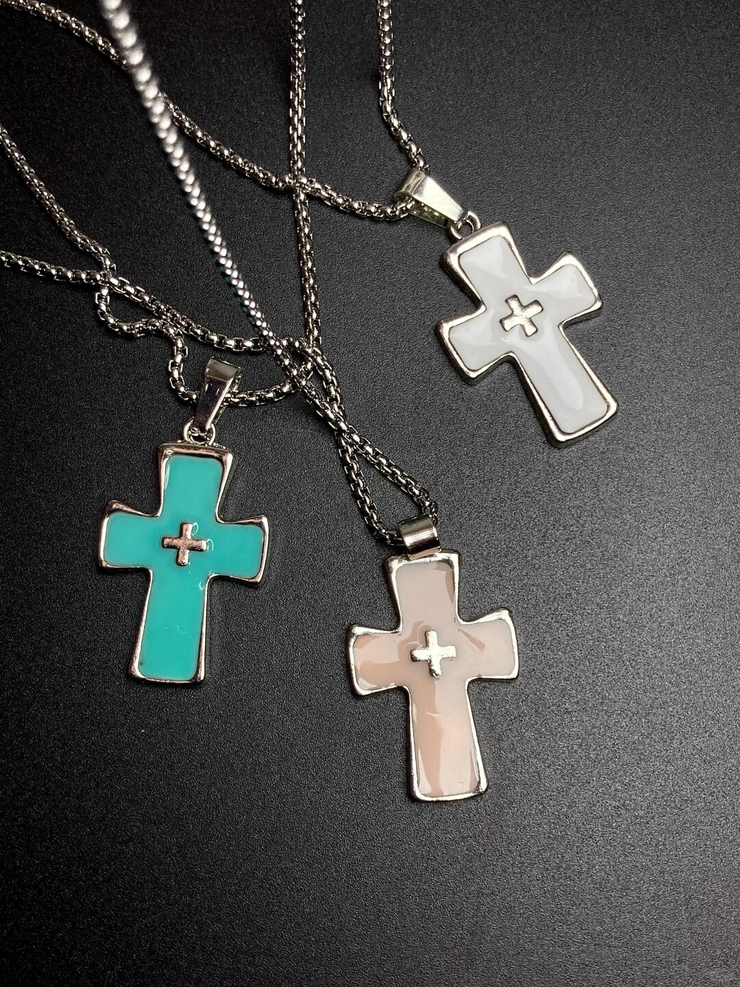 Silence Cross Necklace | Minimal Box Chain & Enamel Glow (Limited Edition)