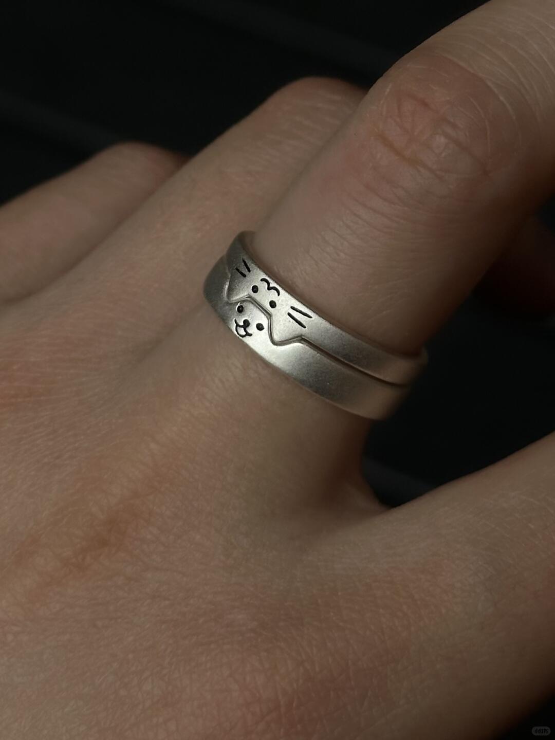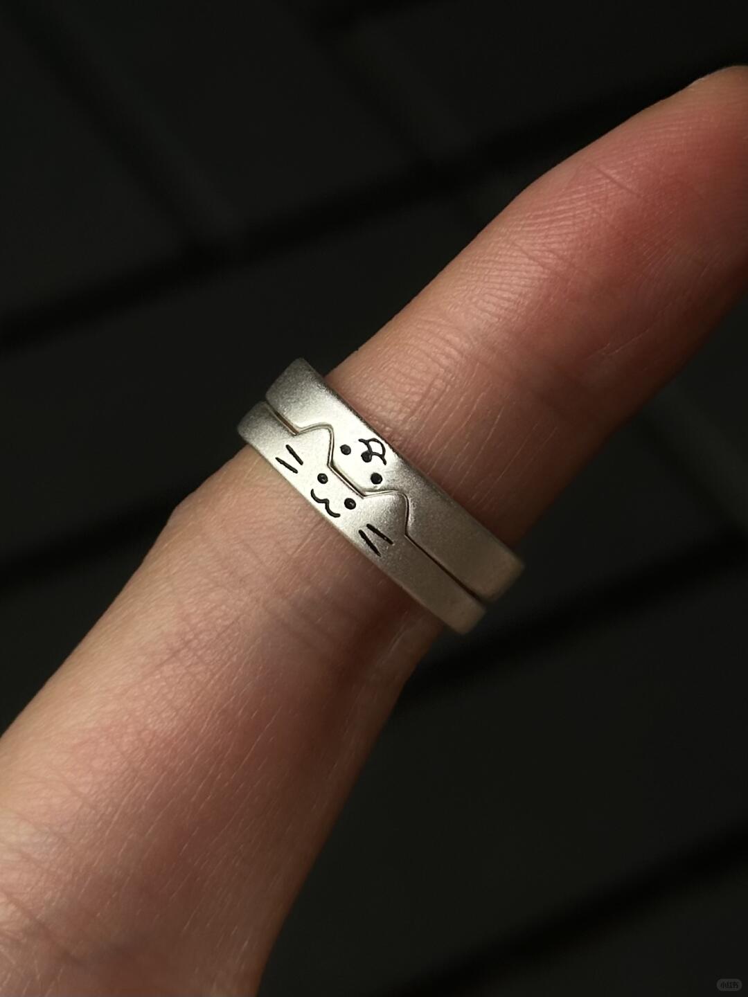 Gli anelli di coppia Stitched Hearts non sono vistosi. Non gridano amore. Lo sussurrano, come un gatto che si rannicchia nel tuo silenzio, o un cane che aspetta anche quando sei in ritardo. Un anello recita "Sii il mio gatto" , l'altro "Il mio cane fedele" . Due anime, due stili: una casa.