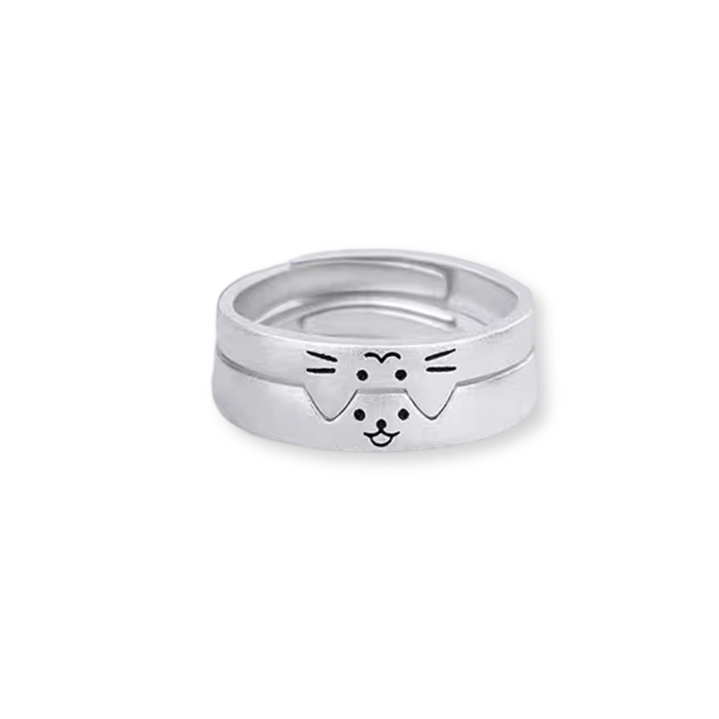 Il mondo è lacerato, ma noi lo ricuciamo | Anelli di coppia con gatto e cane in argento sterling