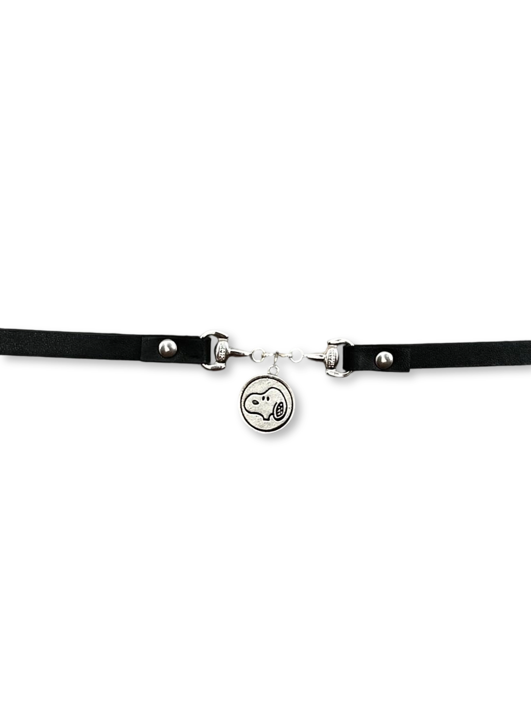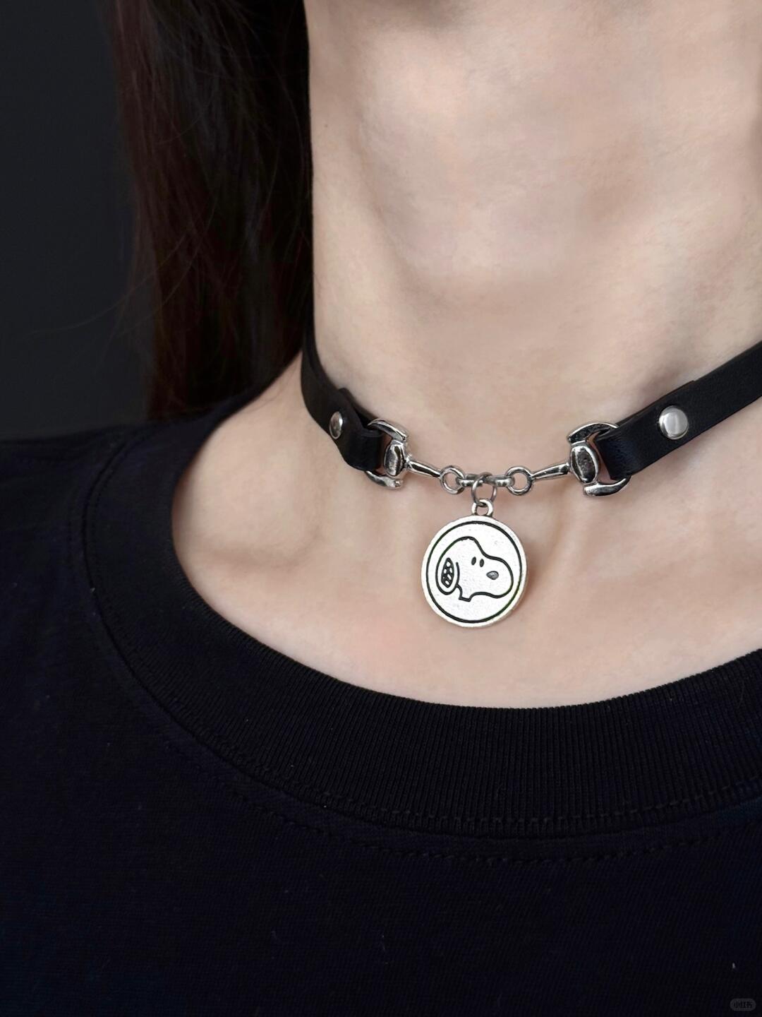 “A puppy will give you 100% love.” The 100% Puppy Love Choker wears this playful promise at your throat. A stylized cartoon dog pendant dangles from a sleek Y2K-inspired band, reminding you that pure devotion comes in the smallest, furriest packages.