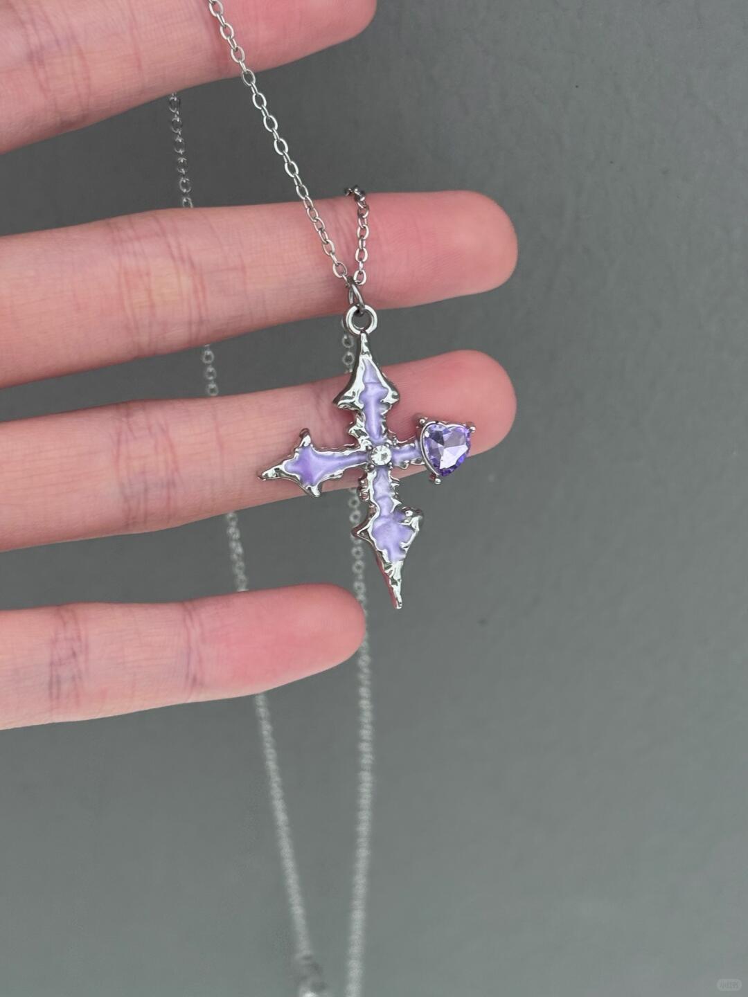 - Design: Cross-shaped pendant with deep purple accents, symbolizing intuition and mystery