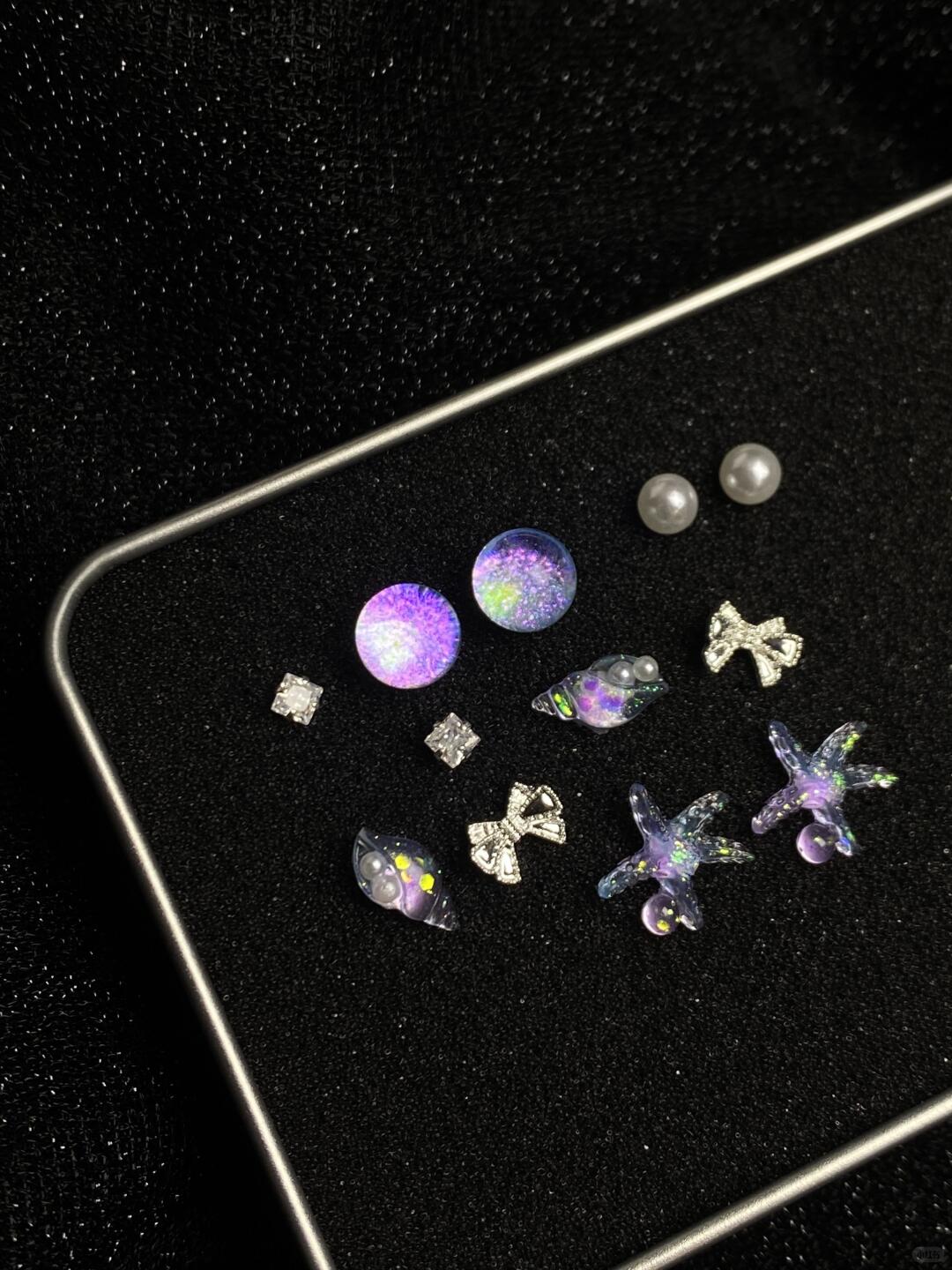 Beach Party Studs bring bubble-pop shine to every ear stack. Under flash they sparkle like a seaside night; in natural light they soften into a juicy gloss. Tiny, easy, and made for summer playlists.
