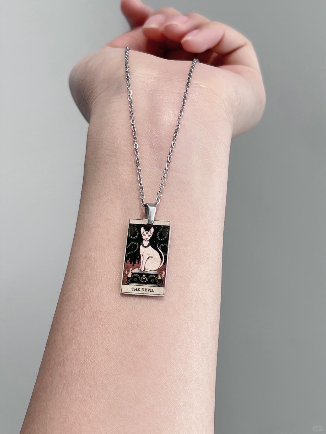 The Big Akanataro Necklace is inspired by the Y2K aesthetic of mystical elegance, blending the symbolism of the Devil’s Tarot card with the quiet beauty of transformation. It’s the perfect accessory for those who embrace their individuality and the pursuit of freedom.