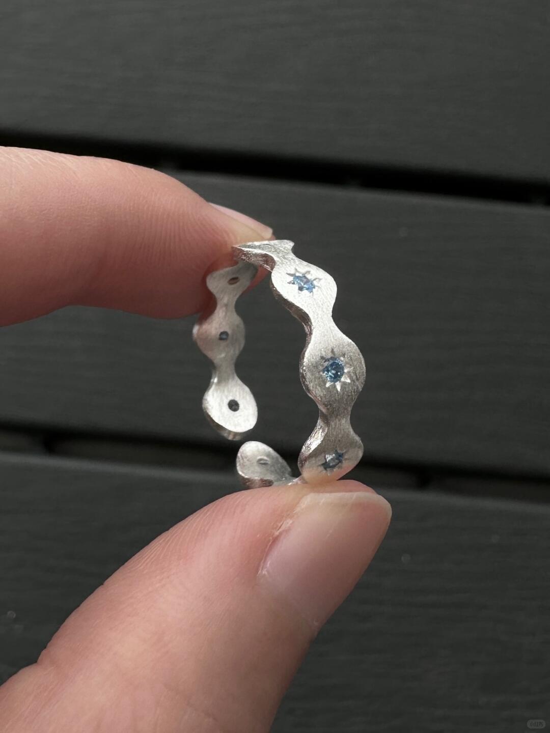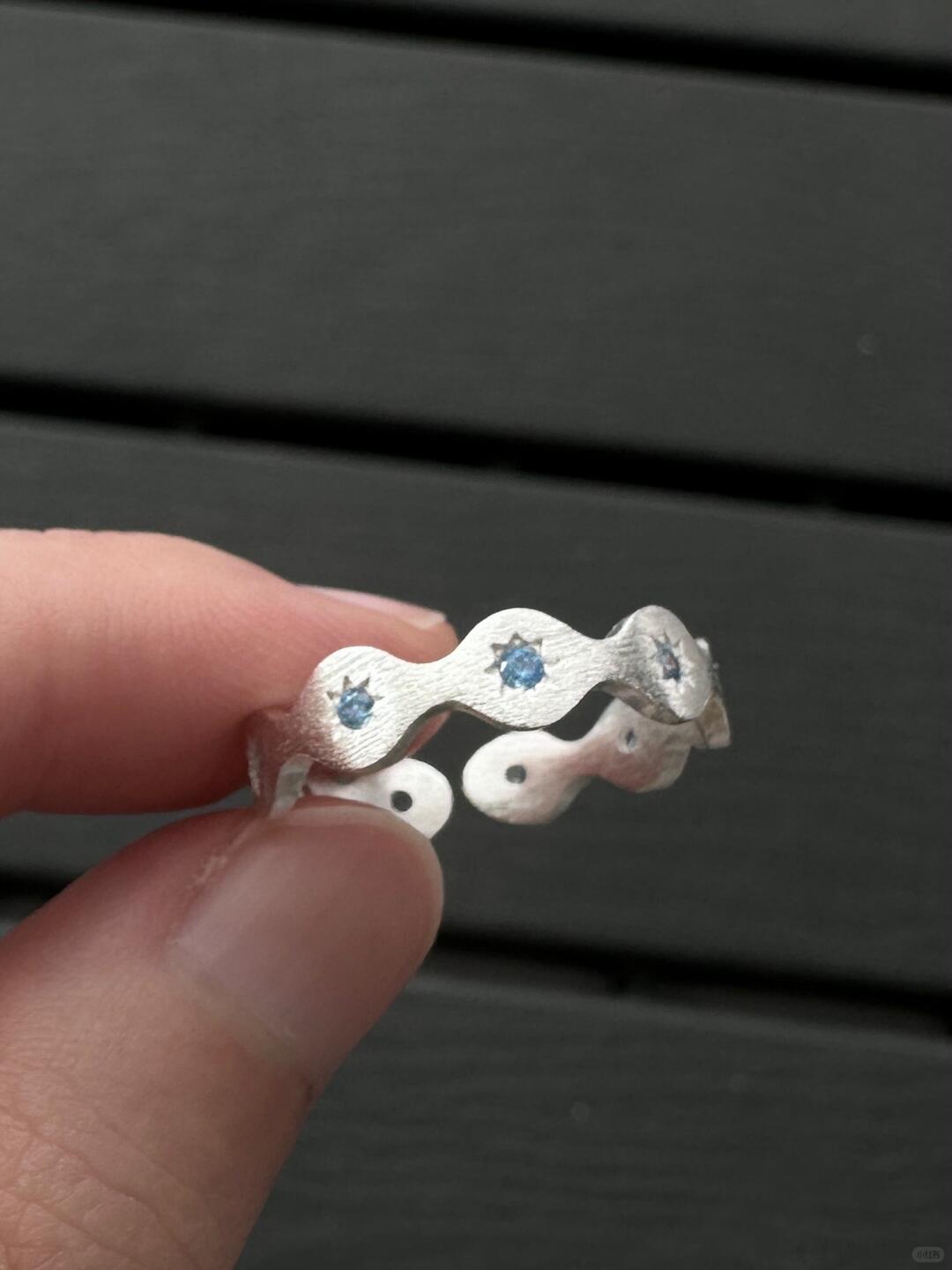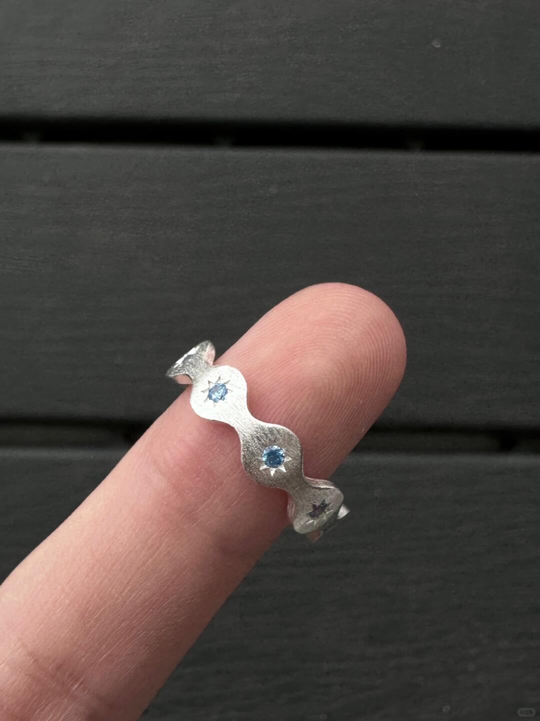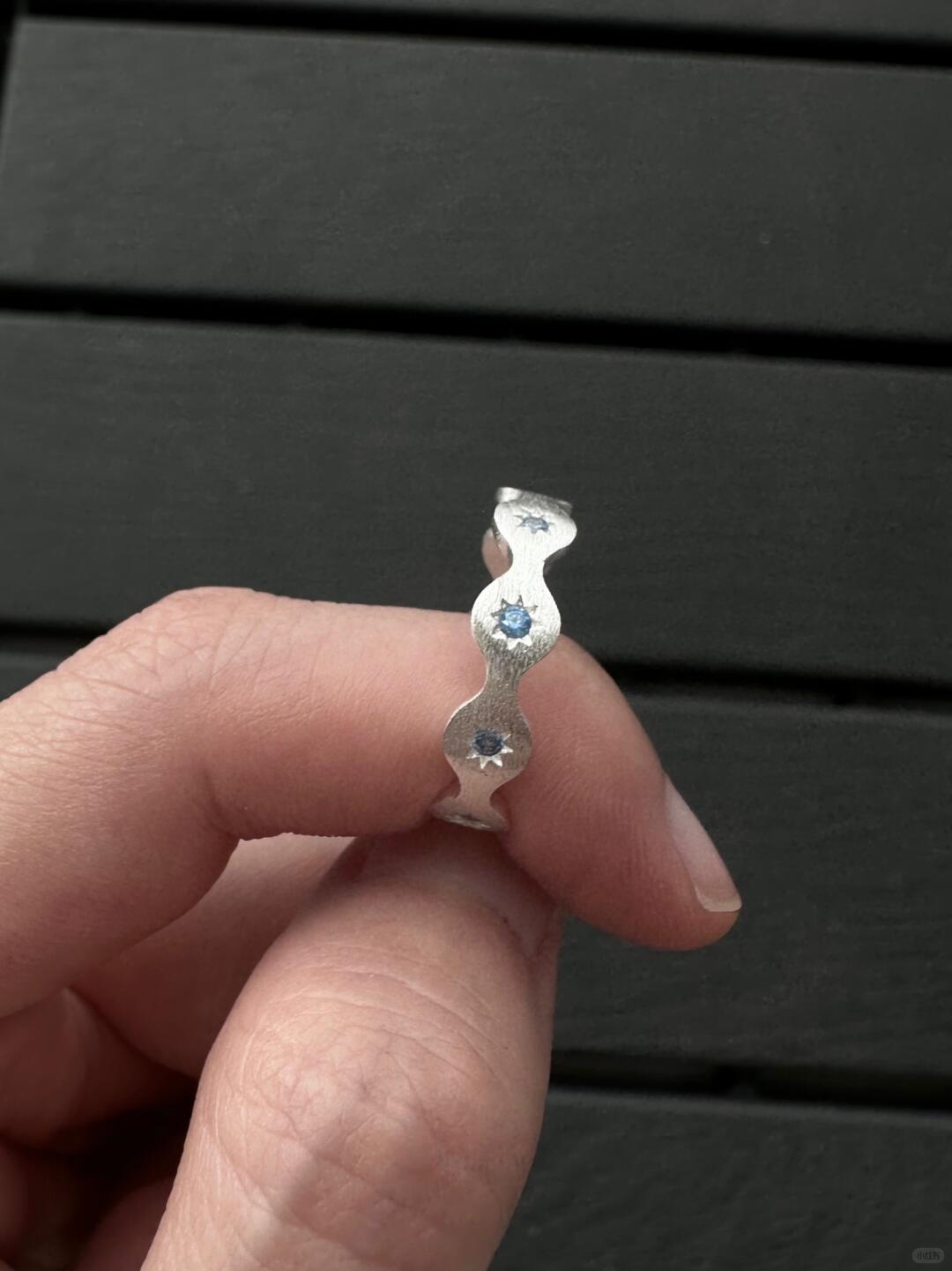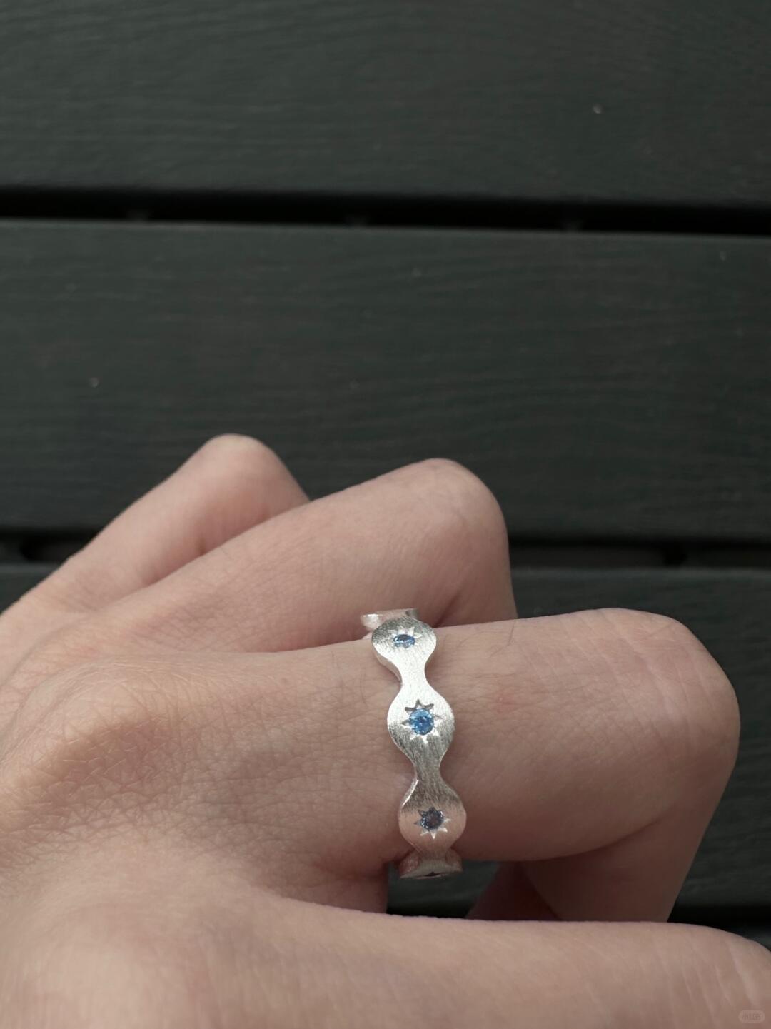 - Design: A delicate silver band with a soft blue gemstone, symbolizing starlight on water