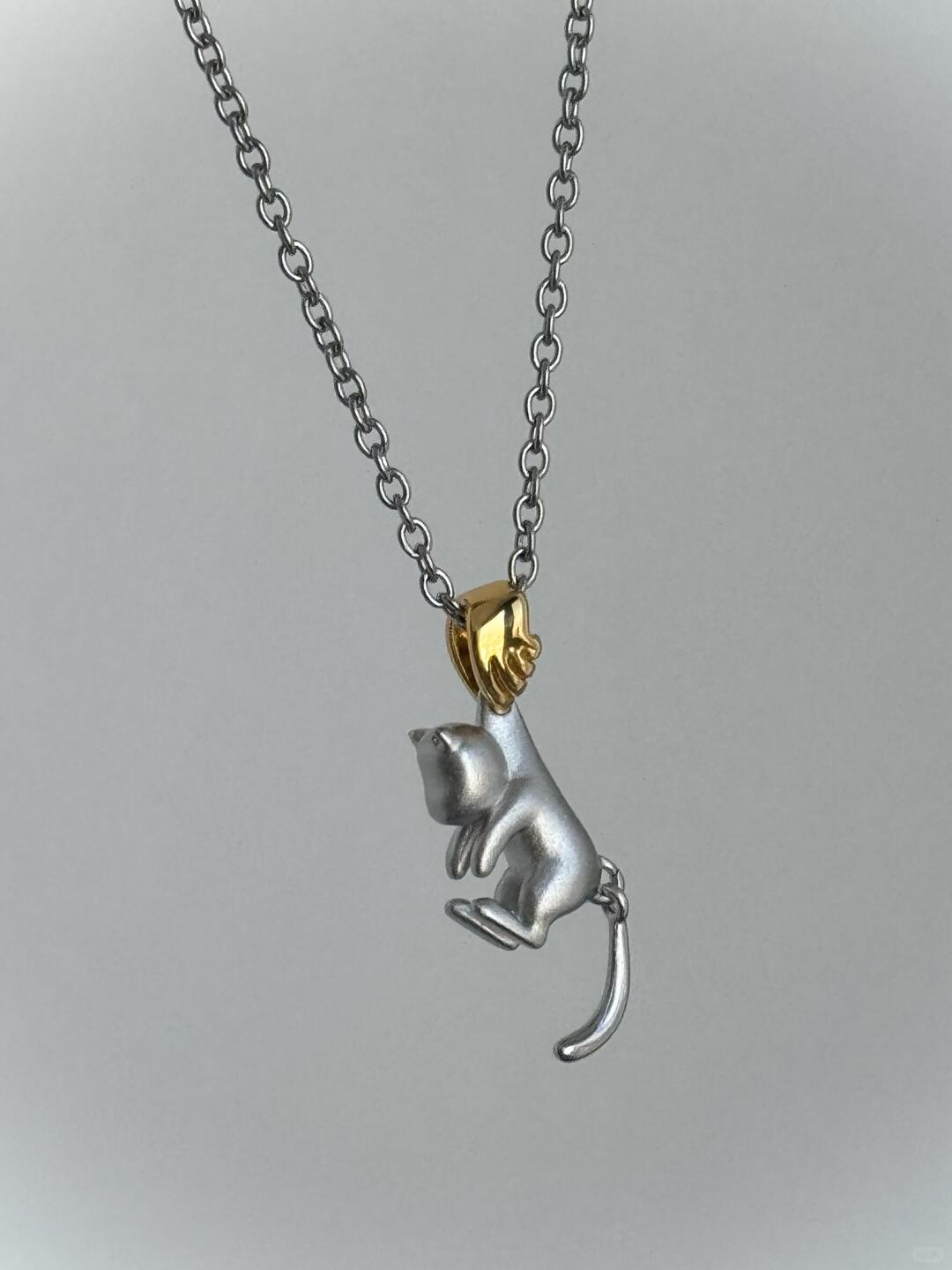 Caught Again | Playful Kitten Charm Necklace (Y2K One-of-a-Kind)