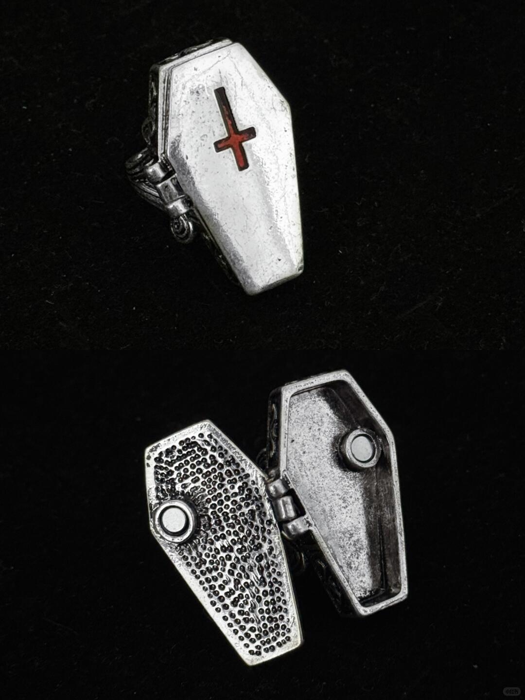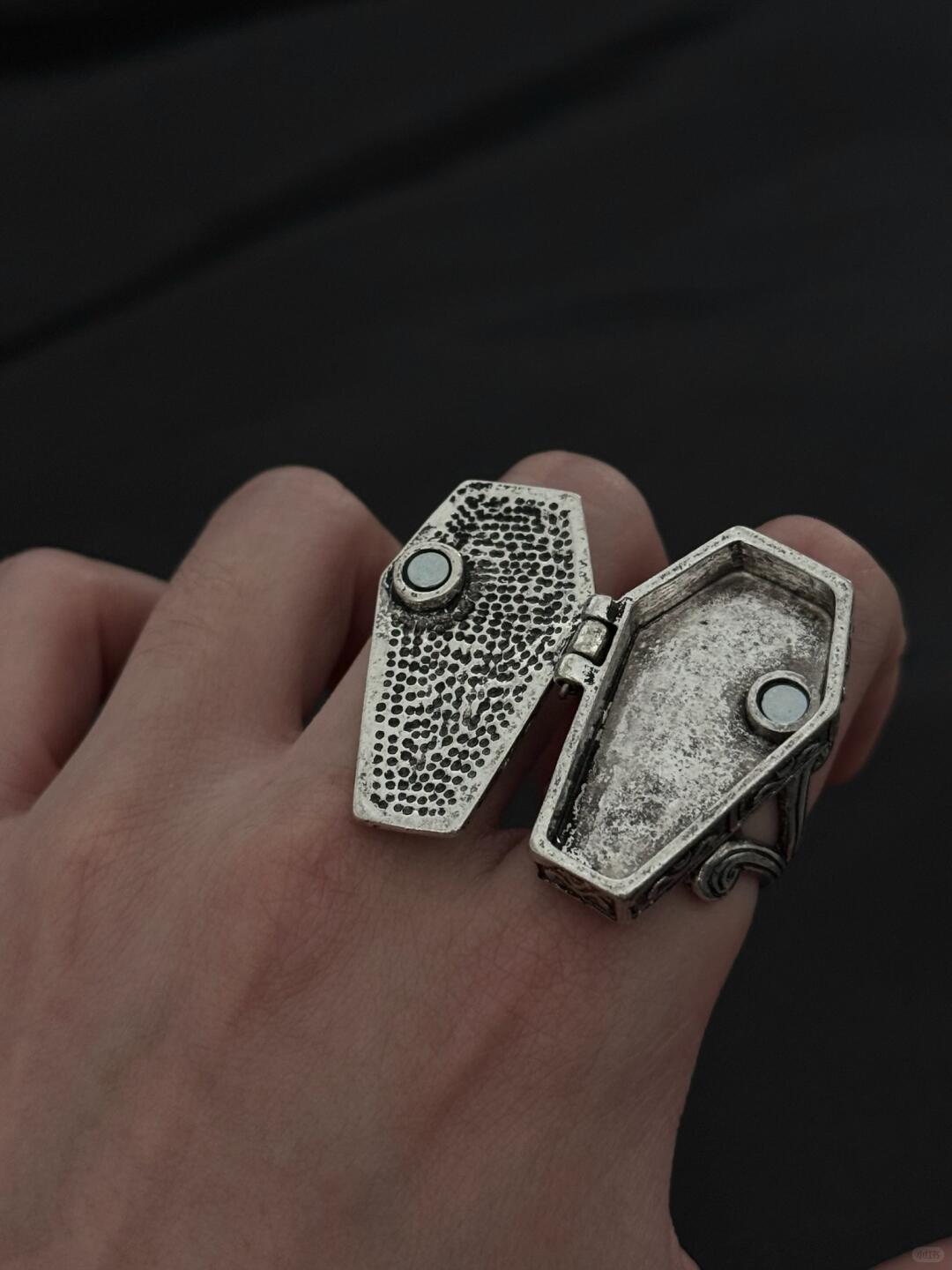 The Coffin World Ring is inspired by the Y2K gothic aesthetic, capturing the beauty of self-reflection and the inevitability of life’s end. It’s the perfect accessory for those who embrace the poetry of existence and the shadows it casts.