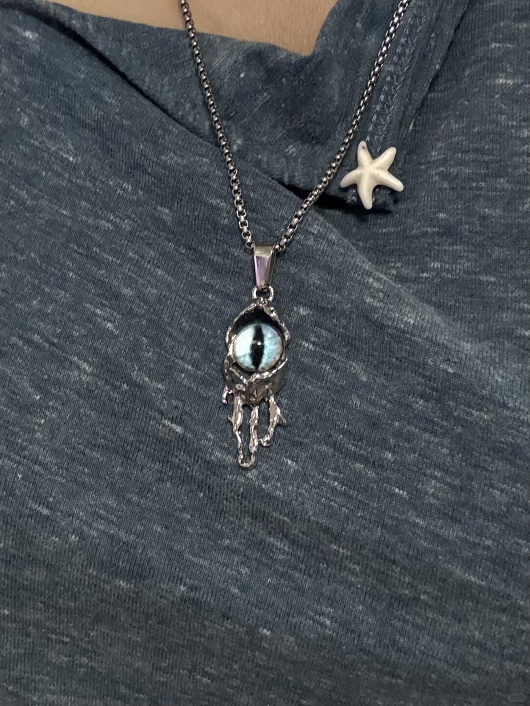 The Cthulhu’s Tear Necklace brings a lucid, eldritch gleam to your fit—equal parts gothic lore and alt street energy. A slim, glossy pendant that catches light like a secret.
