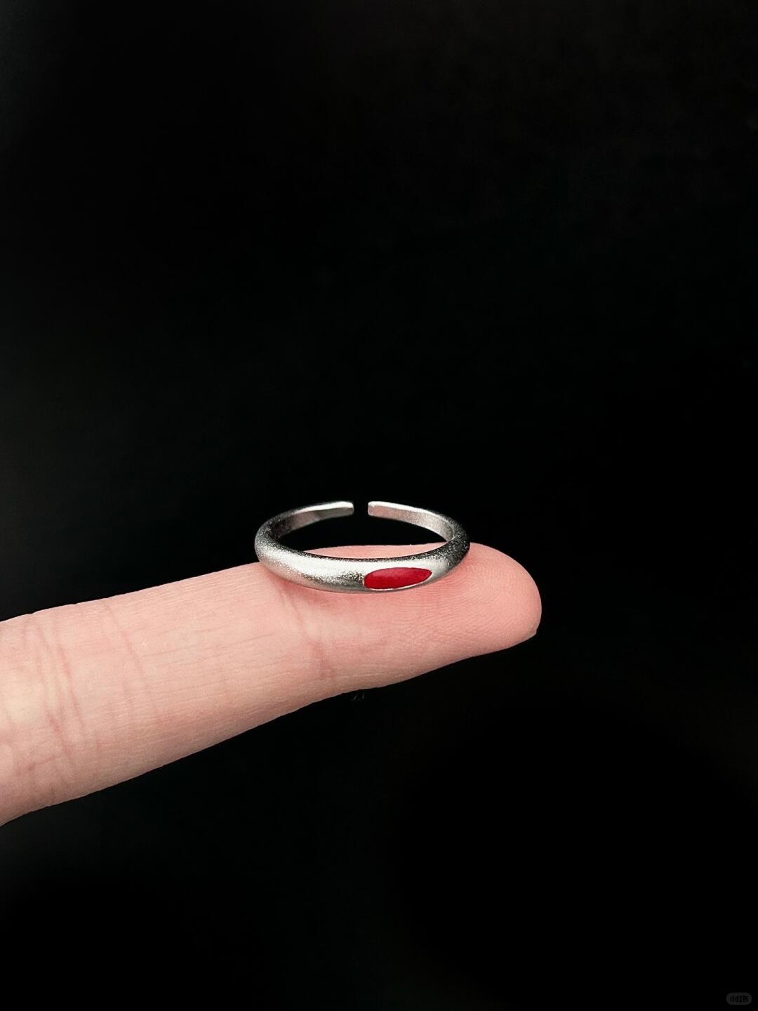- Design: Teardrop/blood‑drop motif with subtle thorn contours—an oath sealed in red