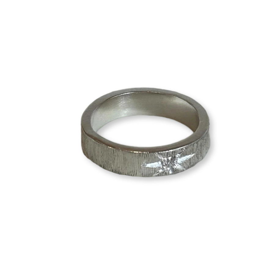 Forged in muted metal, the ring features a smooth, gently rounded form with no edges, no sharpness. Its brushed finish catches barely any light — by design. It is soft, steady, and subdued. Not yet the dawn — but the knowing that it’s coming.