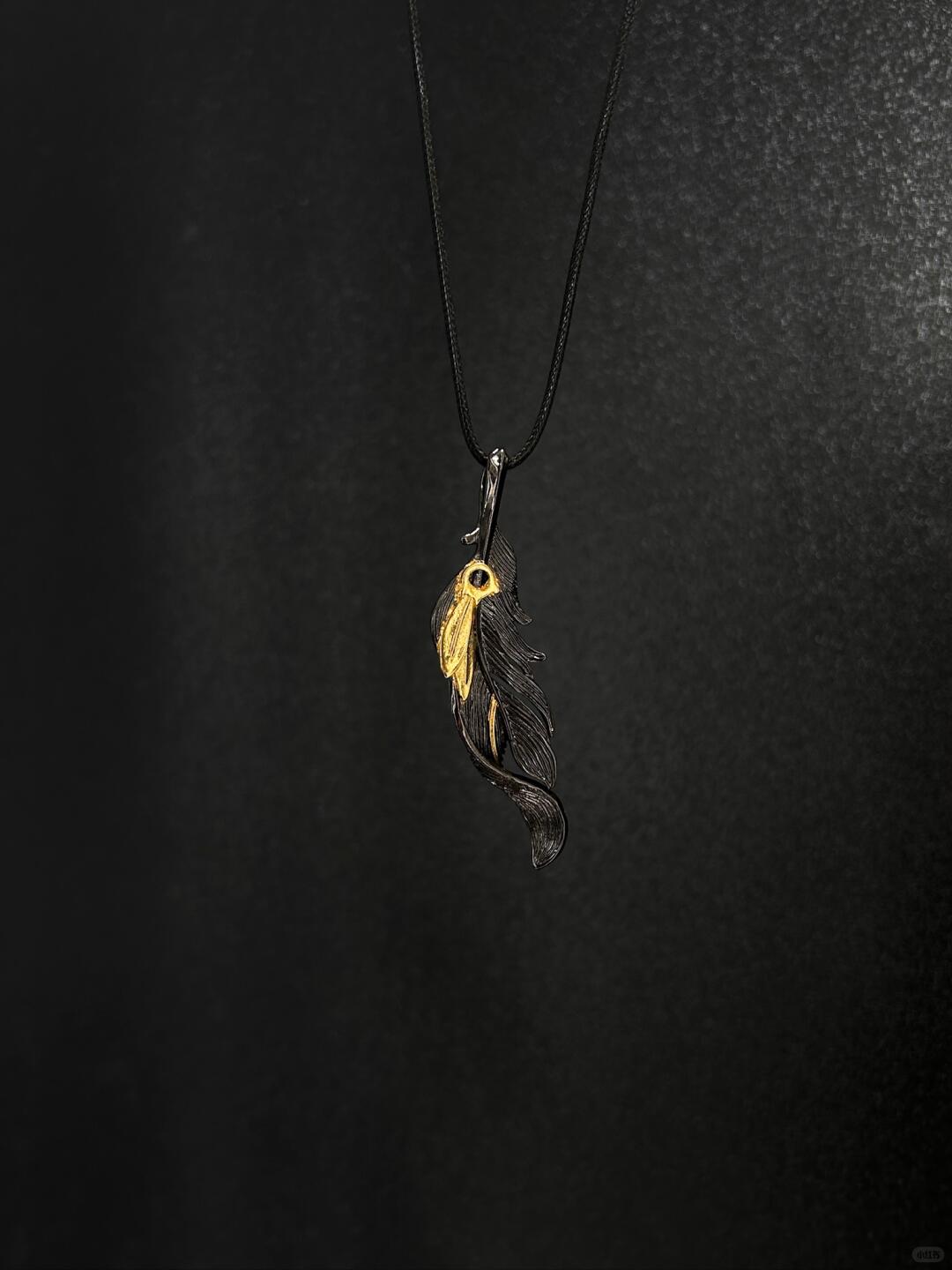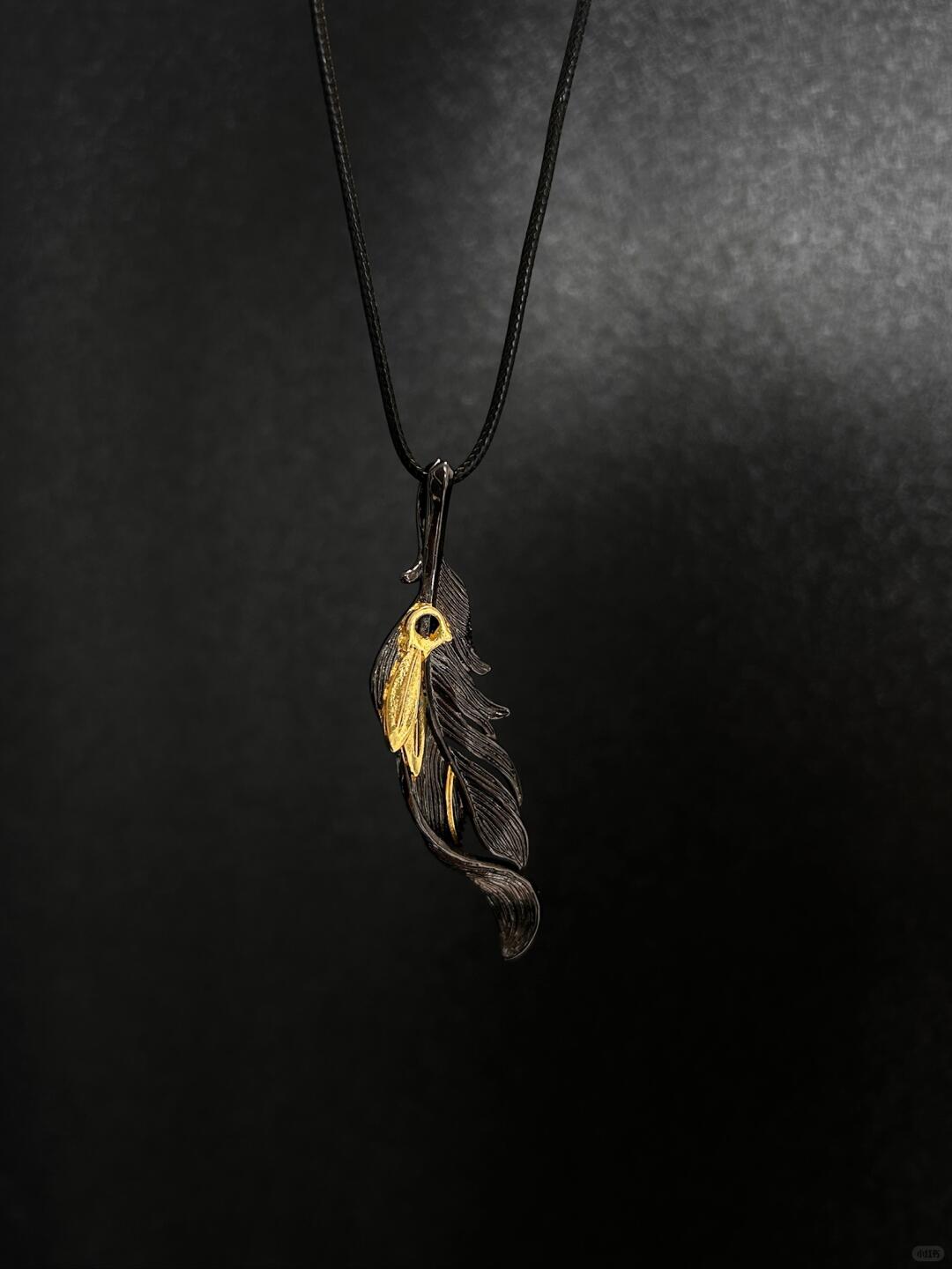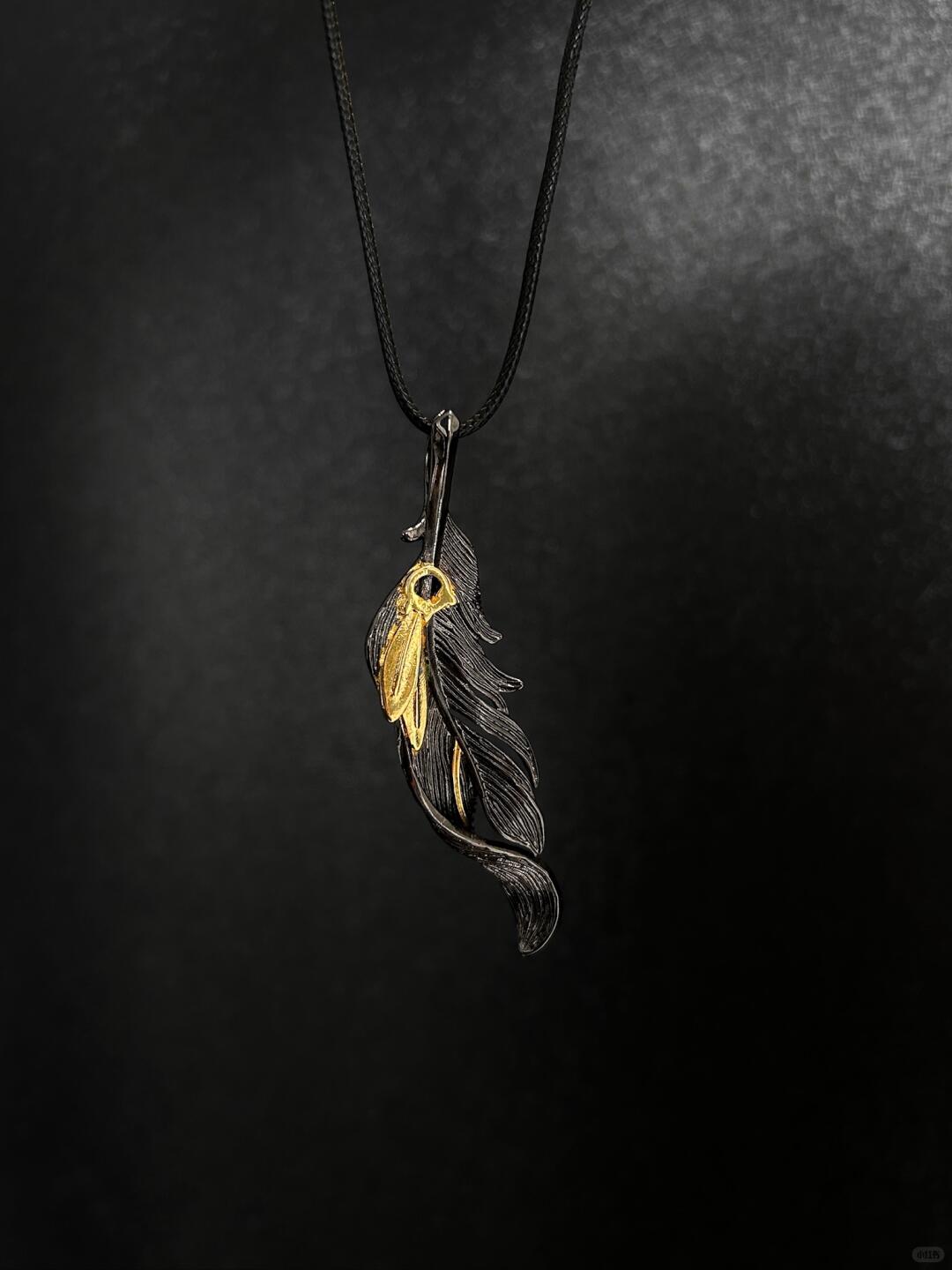 - Pendant: 28 mm sculpted feather wing forged in layered metal