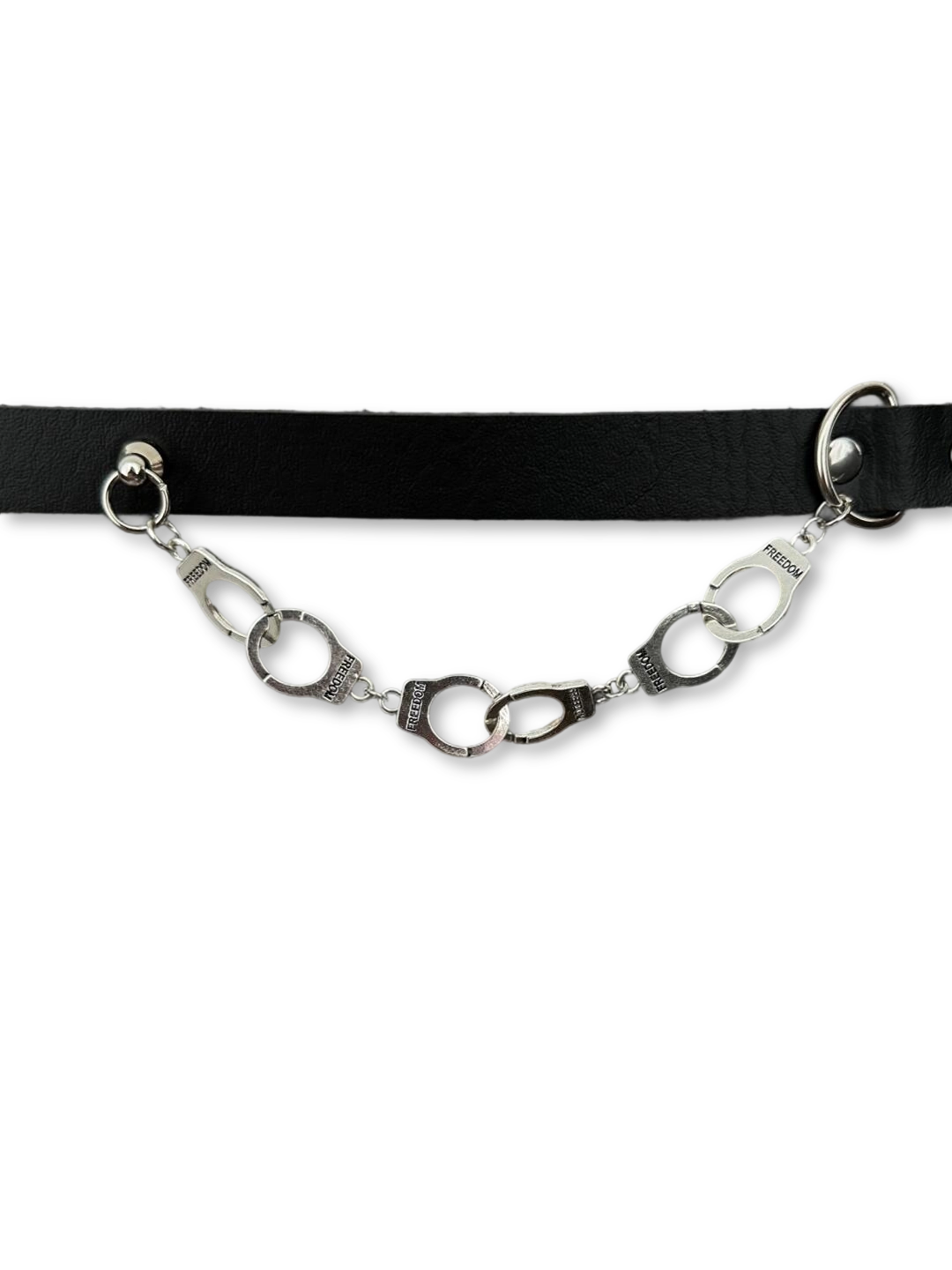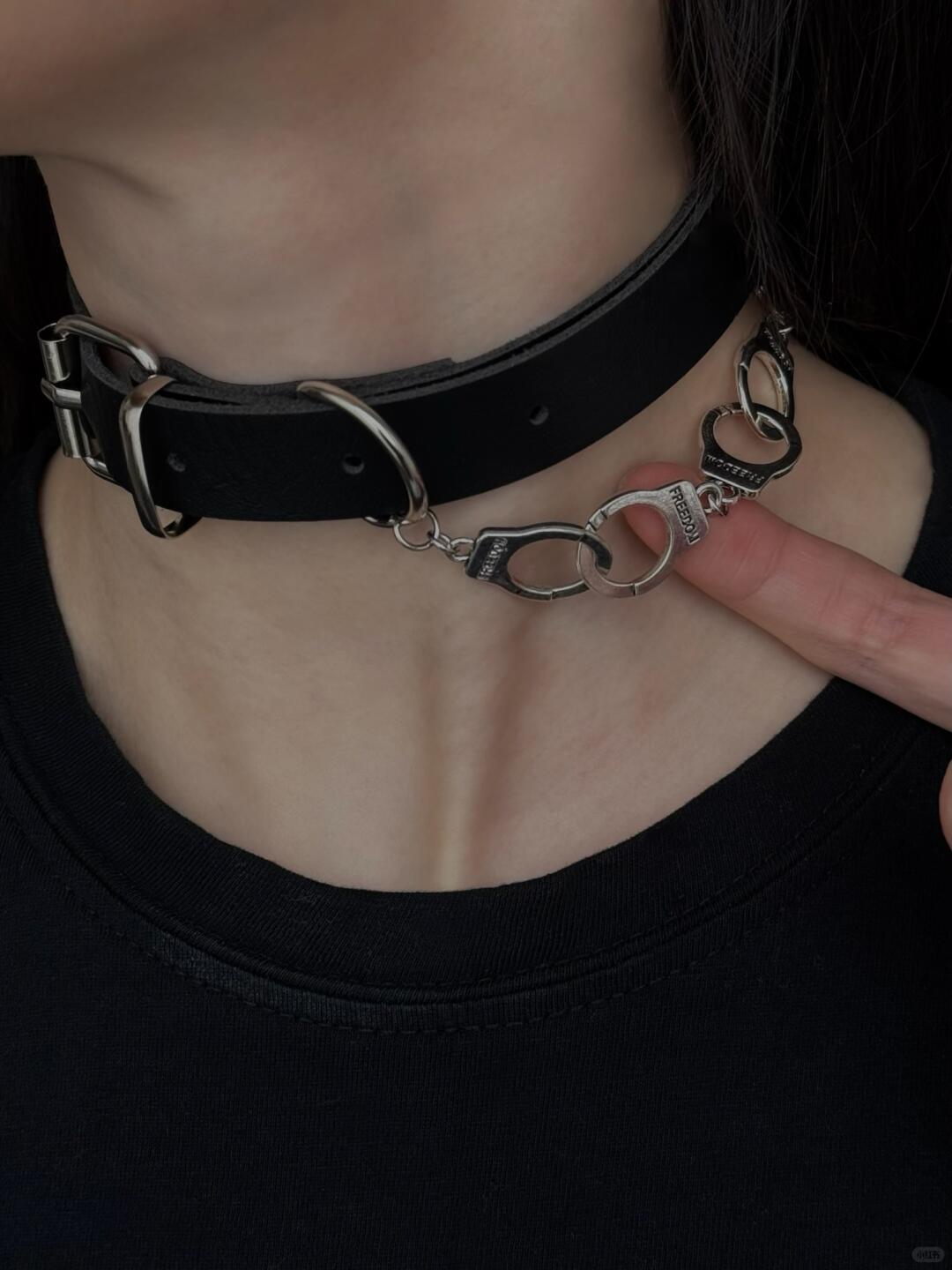 The chains binding my throat are intertwined with your innermost thoughts. “We will forever be entangled.” The Enchain Choker transforms vulnerability into a bold pledge—metal links echo the rhythm of two hearts locked in unison.