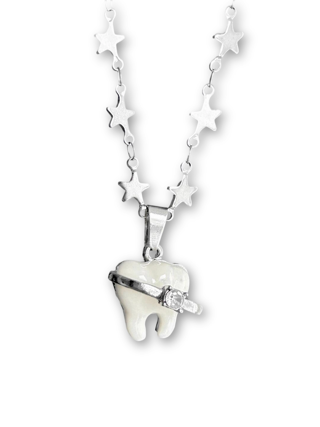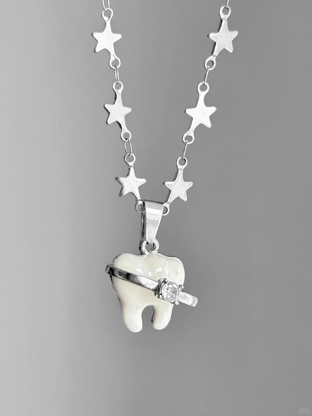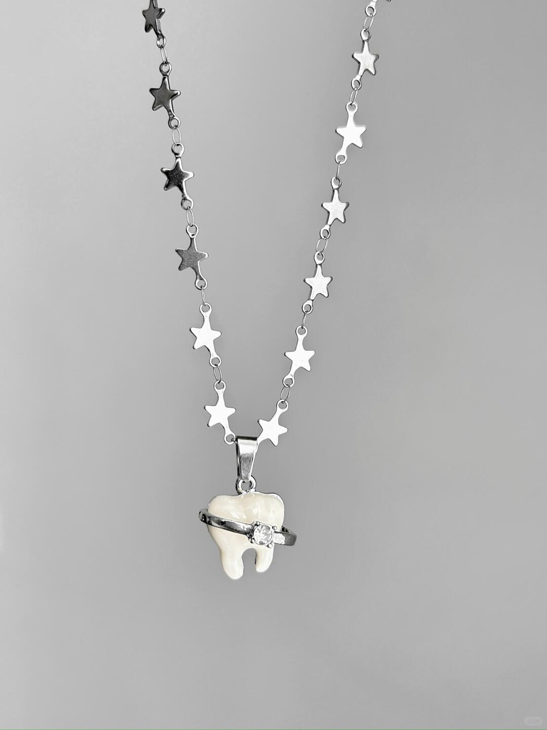 - Pendant: Tooth-inspired charm with delicate detailing, symbolizing innocence and nostalgia