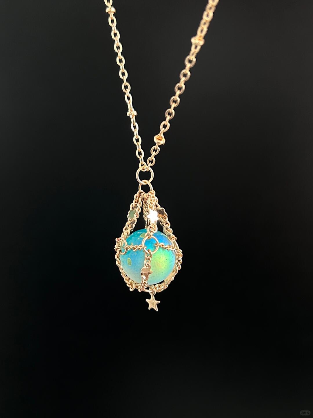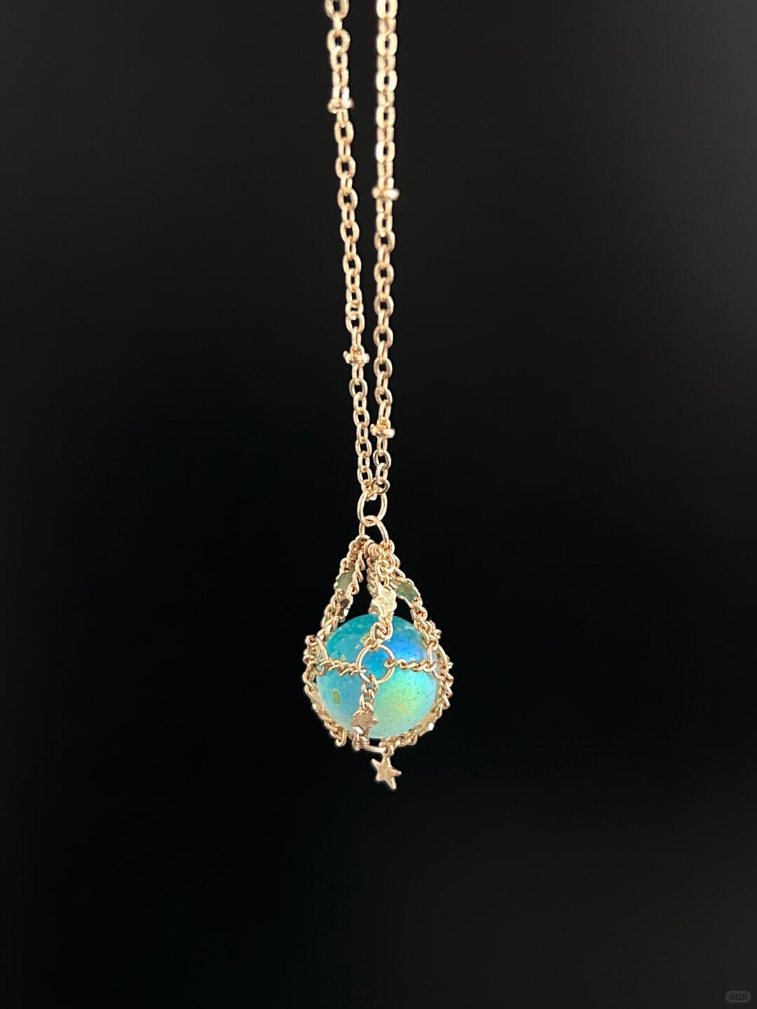 - Pendant: Star-shaped charm with iridescent detailing, symbolizing cosmic beauty