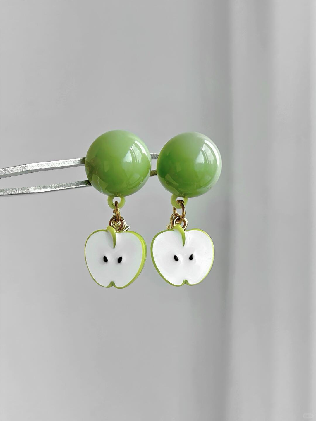 - Charm: Green apple-inspired studs with glossy enamel details, symbolizing youth and freshness