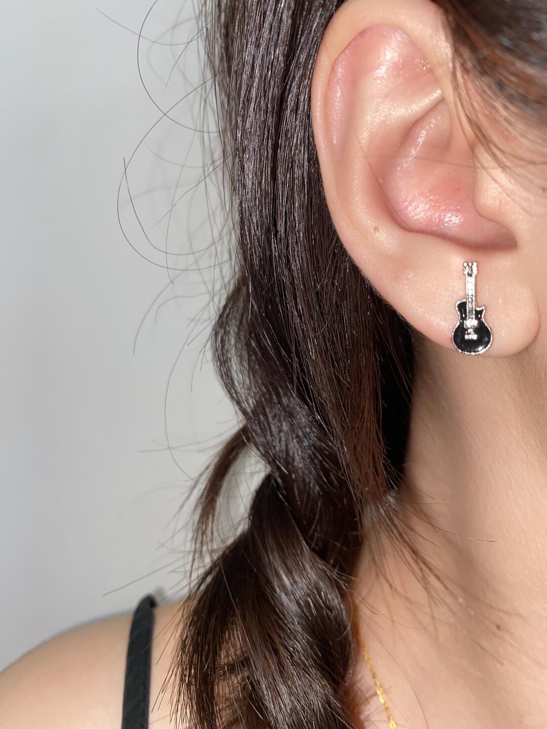Guitarist Stud Earrings bring set‑list energy to your ear stack: clean silhouettes with a glossy enamel guitar face that catches light like stage glow. Small, bright, and ready for soundchecks and coffee runs.