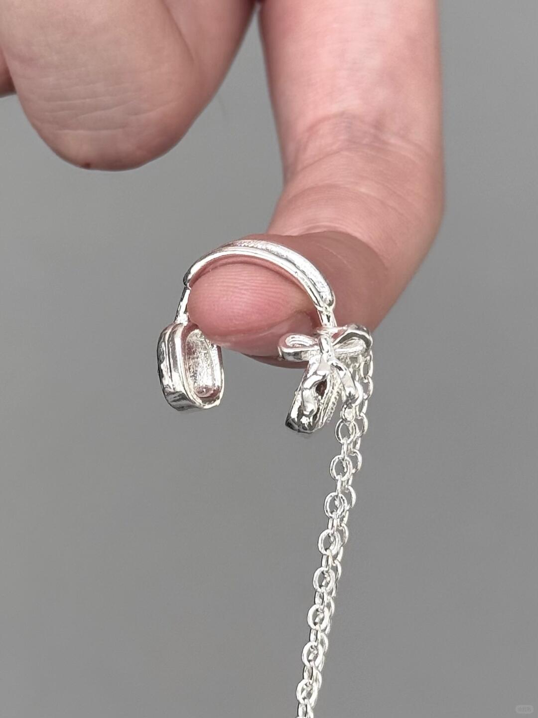 - Pendant: 18 mm sculpted headphone charm with micro-etched details