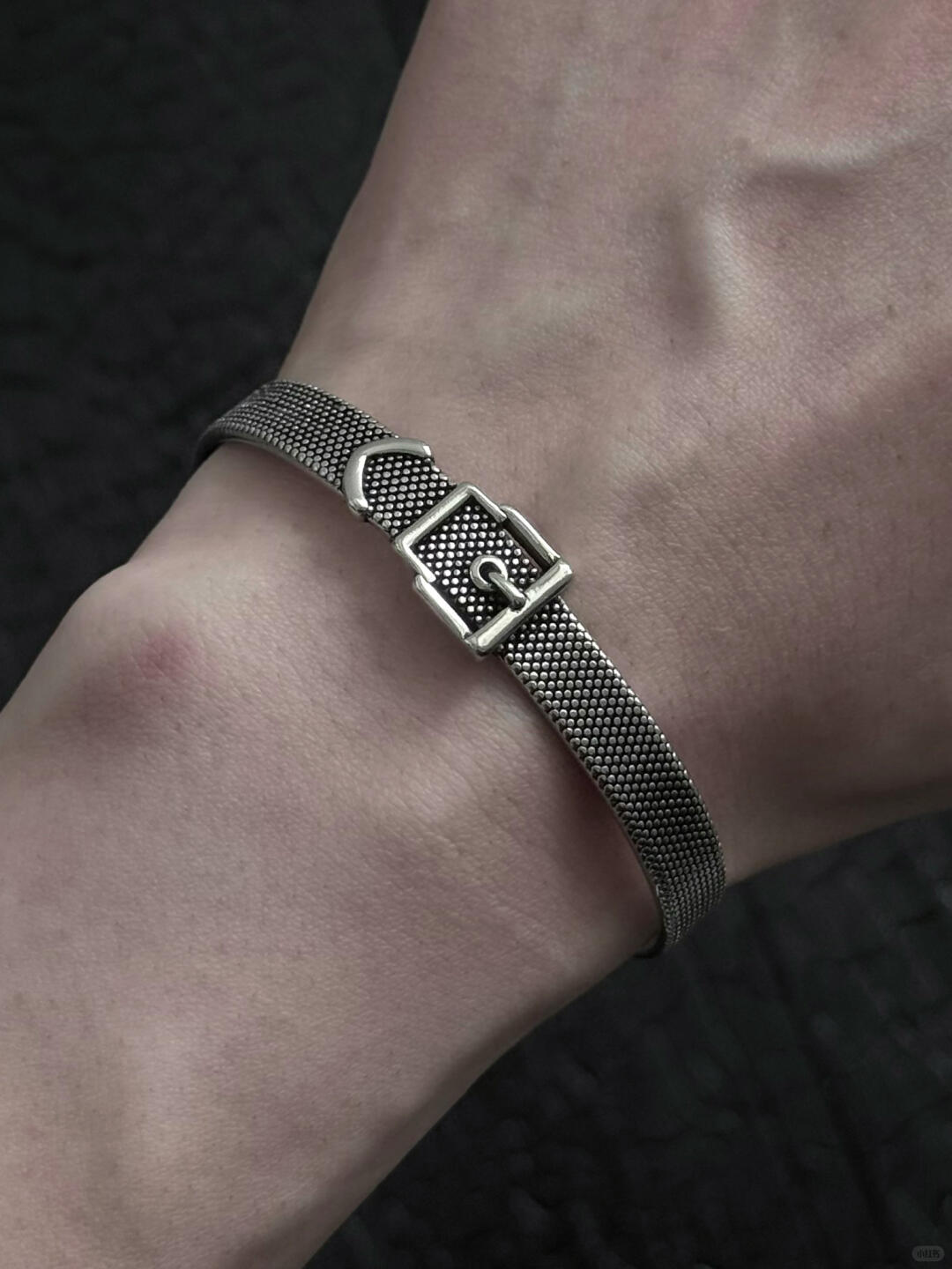 Channel early-2000s industrial chic—flip-phone gleams and pixelated textures—fused with timeless artisanal precision. The Leather Strap Bracelet is your essential accessory for celebrating freedom, choice, and understated elegance.