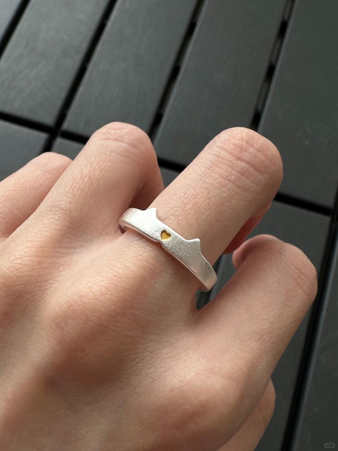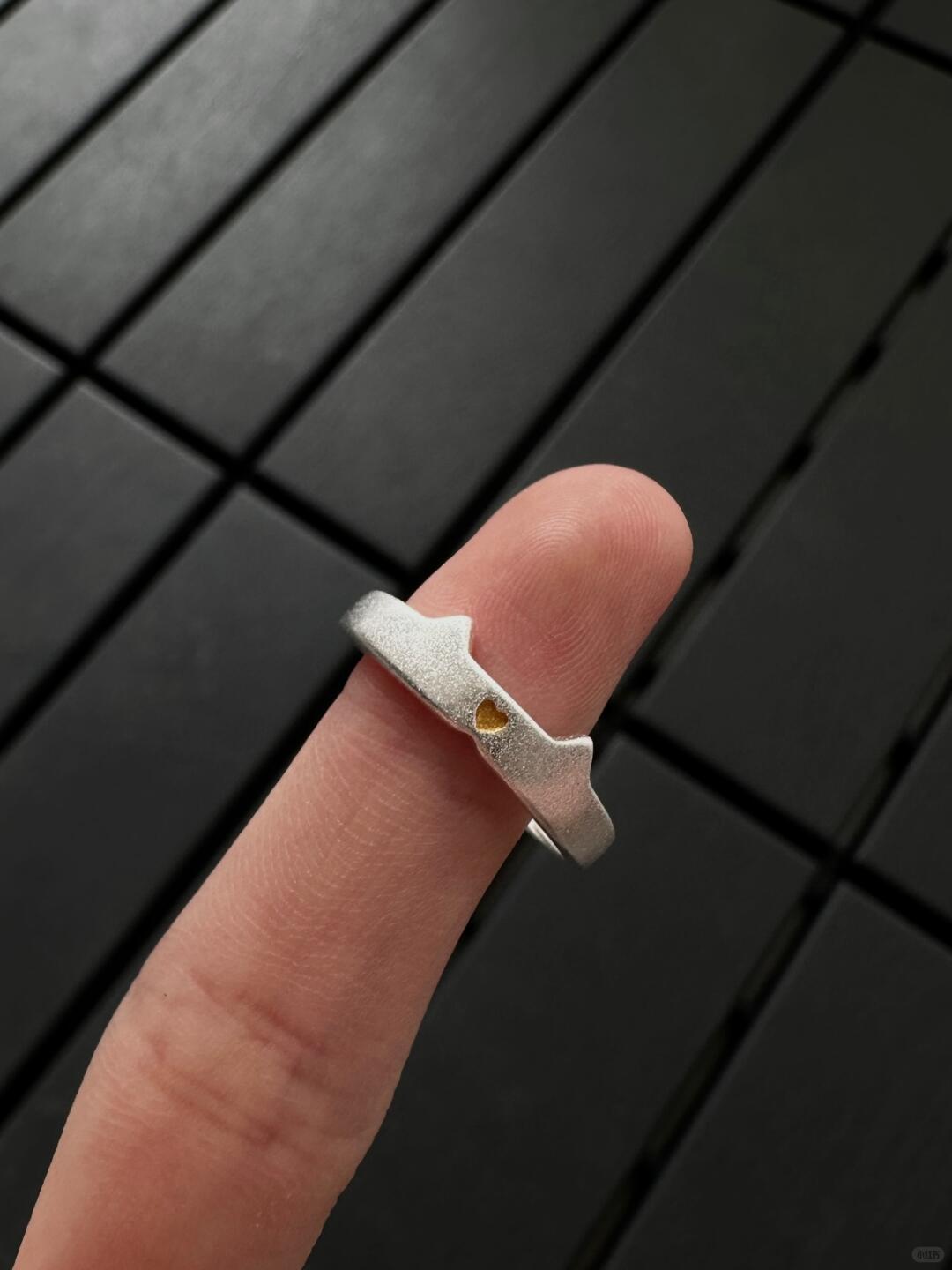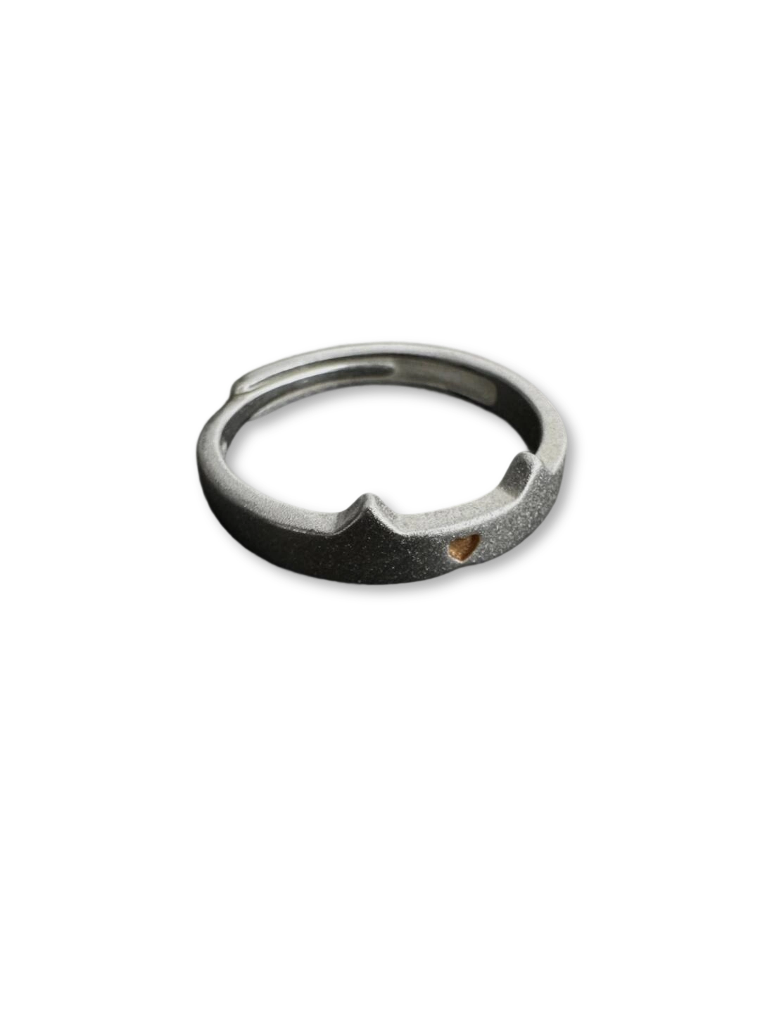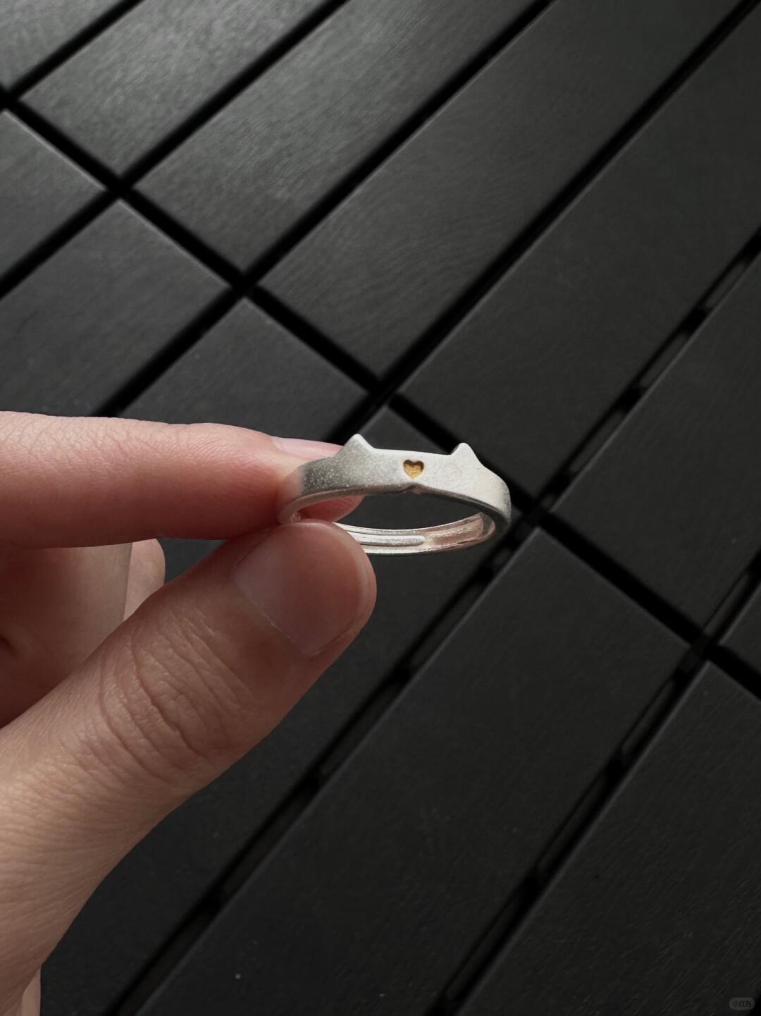 This ring pairs sleek Y2K minimalism with a wink of cat-like mischief. Its sculpted band arches like whiskers in repose, while two mirrored curves echo the graceful swing of a tail in mid-ambush.