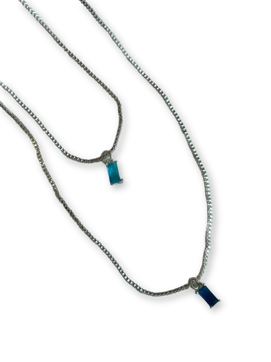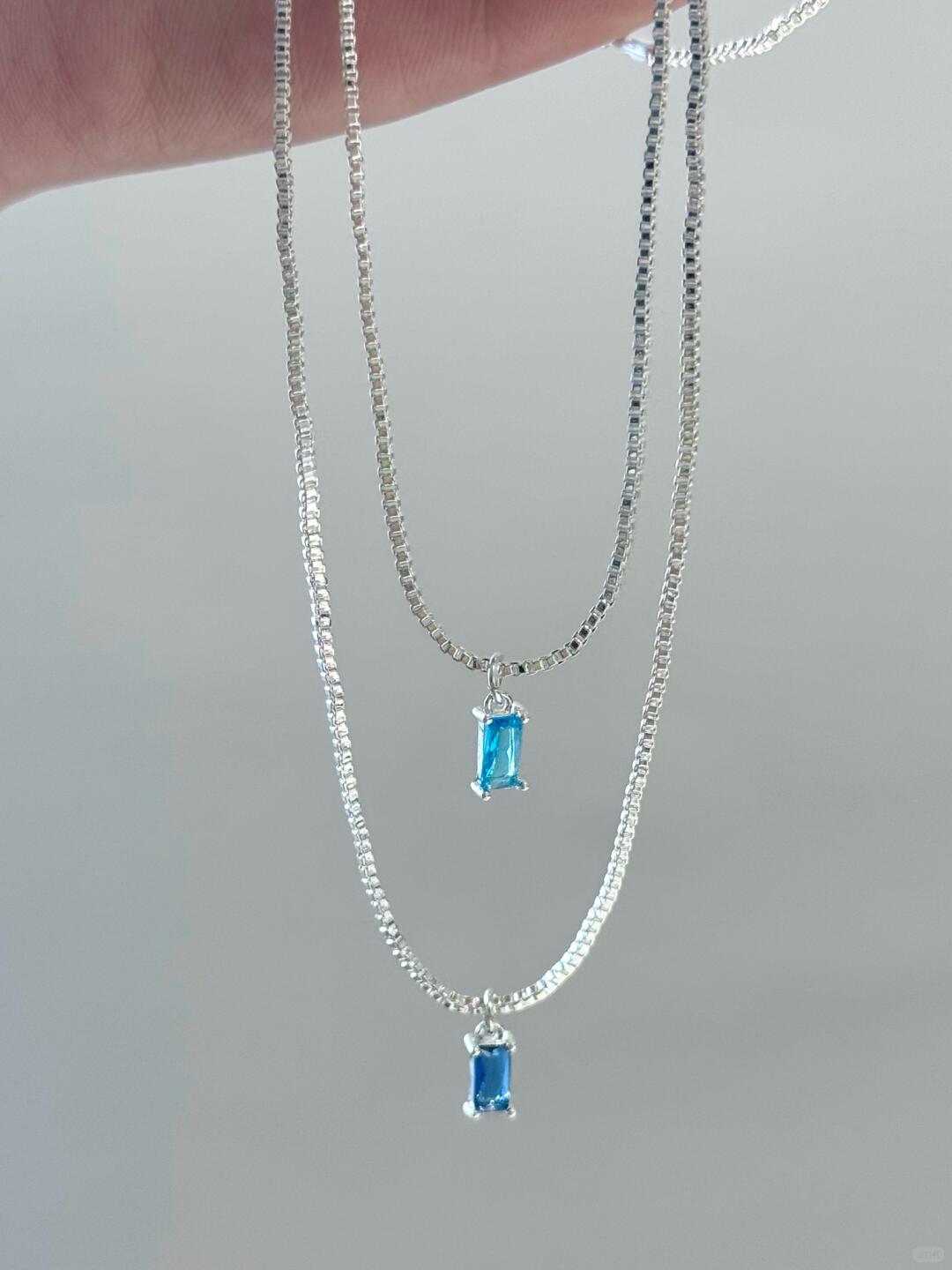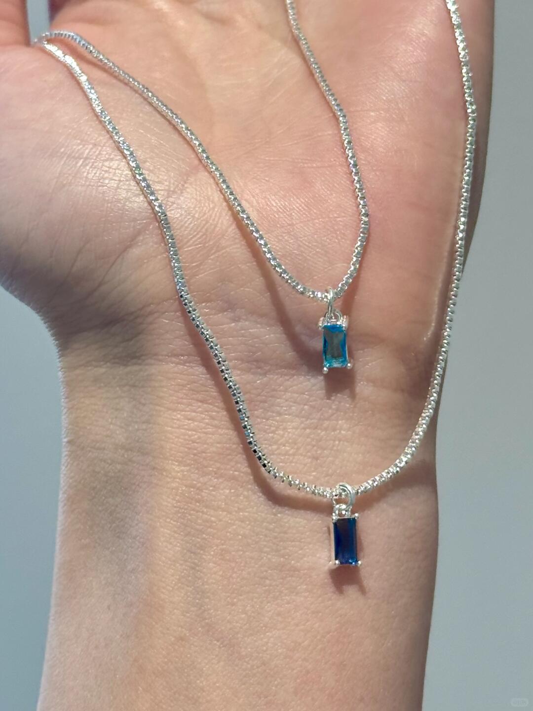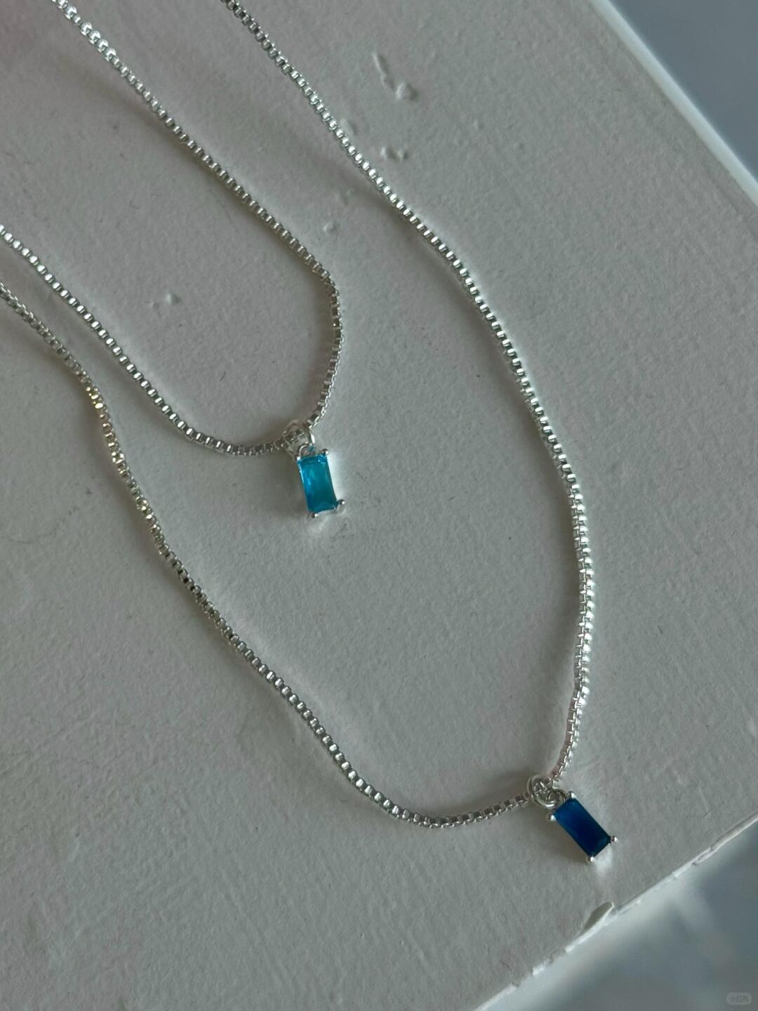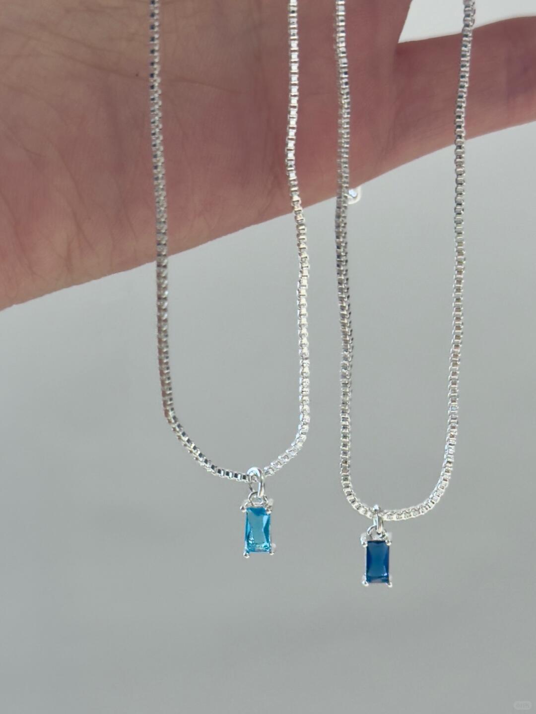 - Pendant: 12 mm aqua-blue resin “ice cube” with prismatic glow