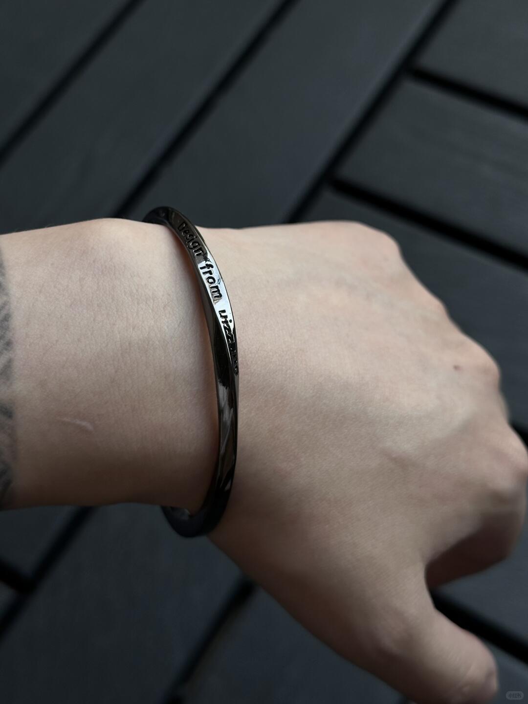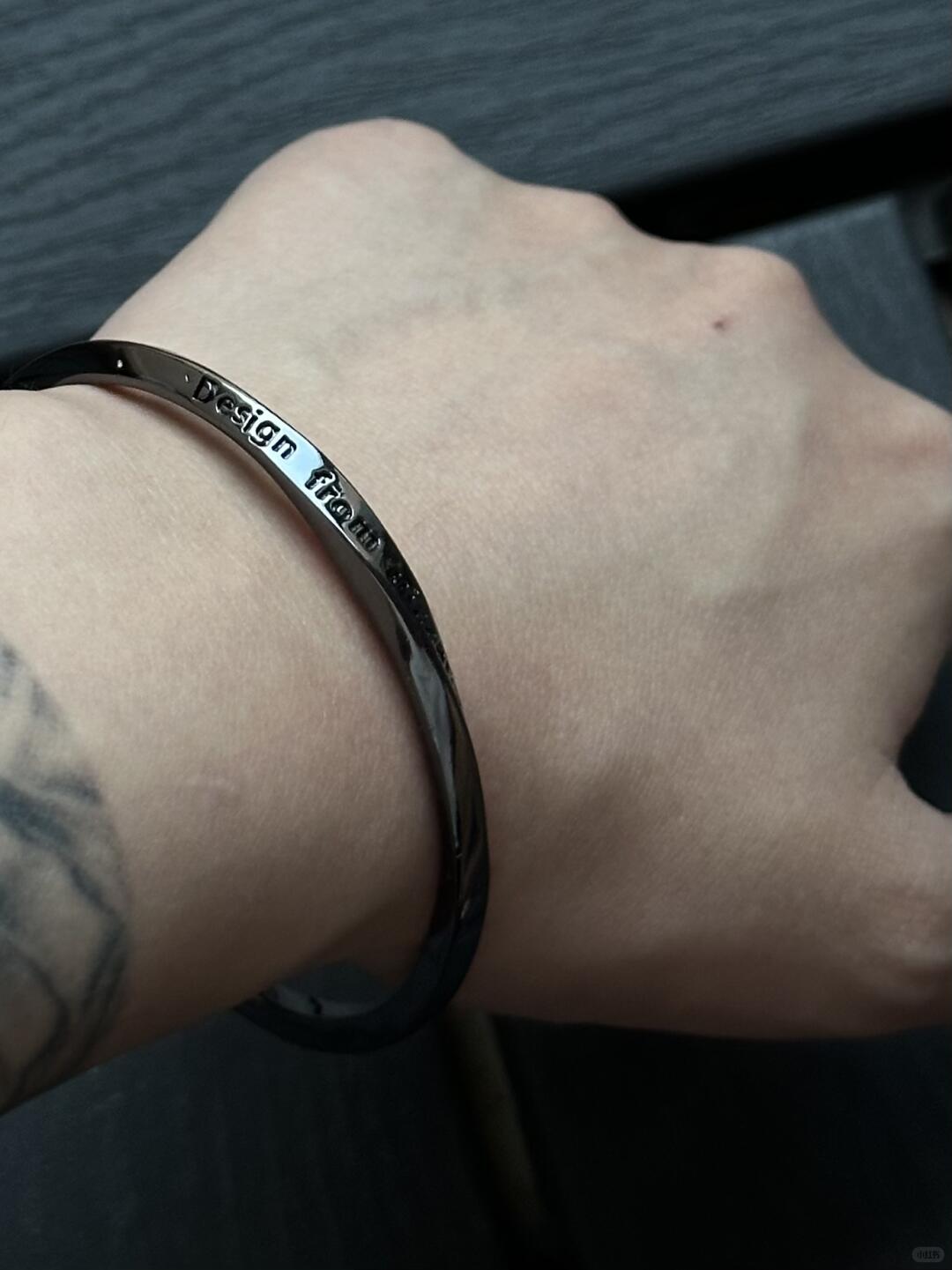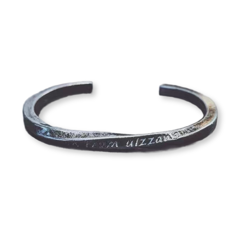 Hand-forged in gunmetal black, the band is modeled after the Mobius strip — a single continuous surface twisting once before closing. The result is a bracelet without inside or outside, front or back — only one endless journey. Its matte finish is shadowed, silent, like something you dream of but never fully recall. Each is made by hand, carrying its own quiet imperfections.