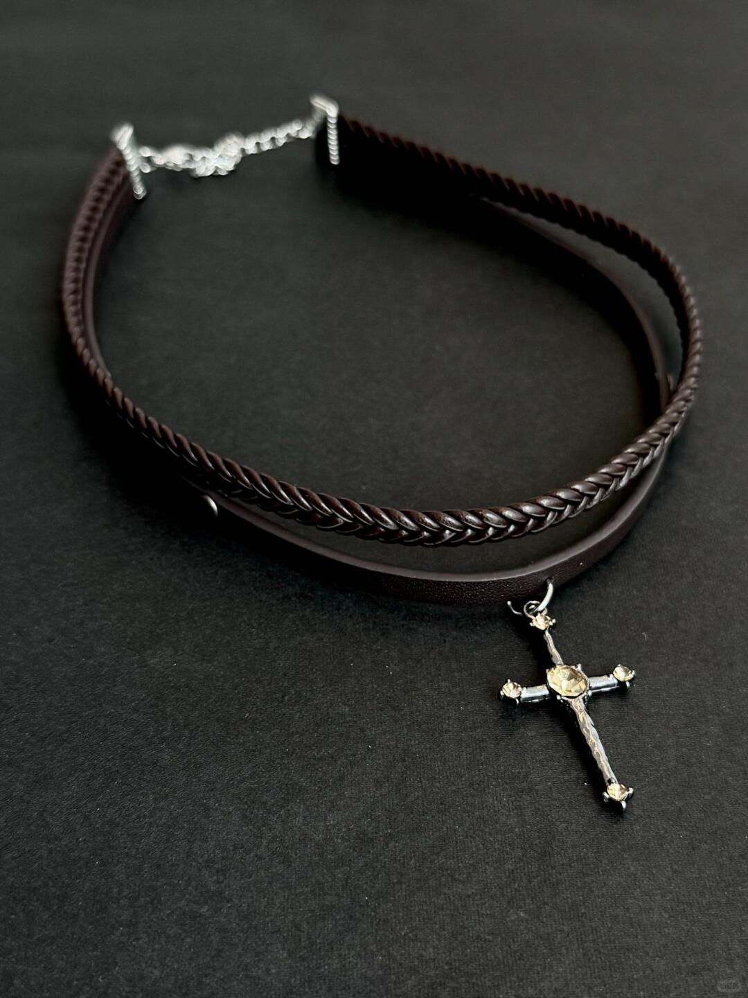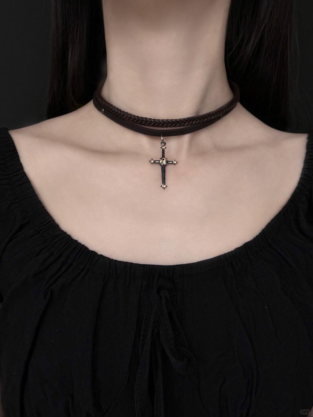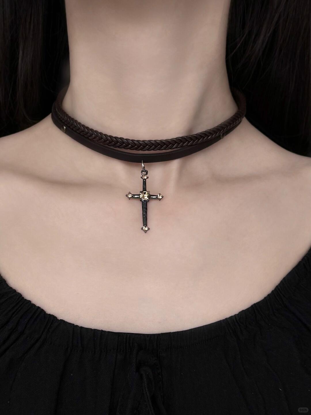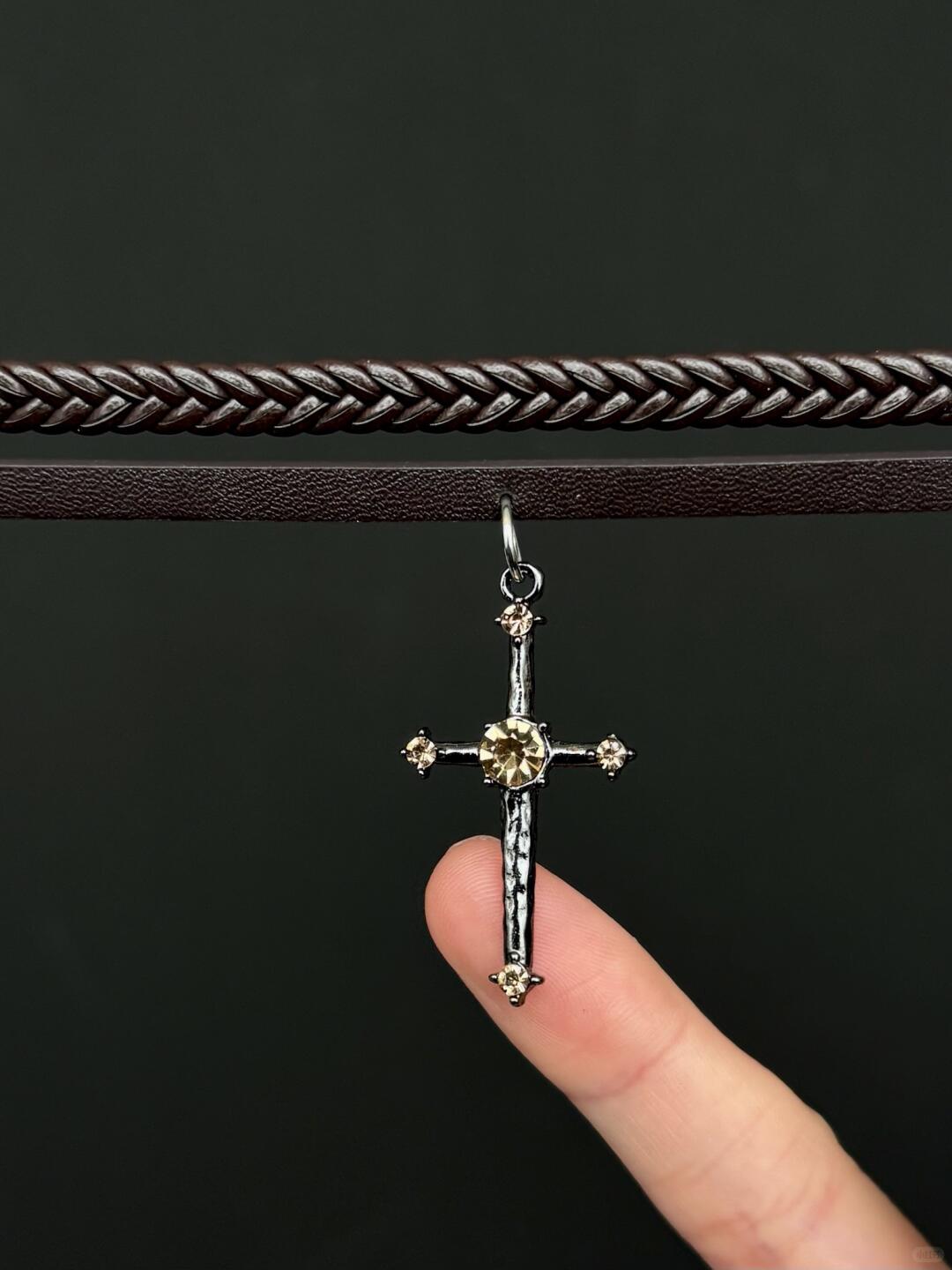- Design: Cross-shaped pendant with textured details, symbolizing mystery and rebellion