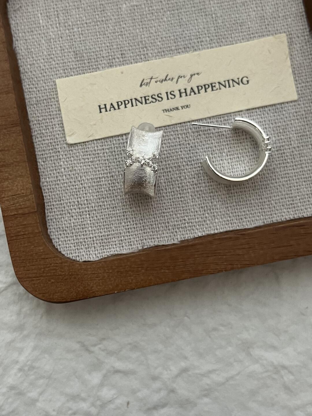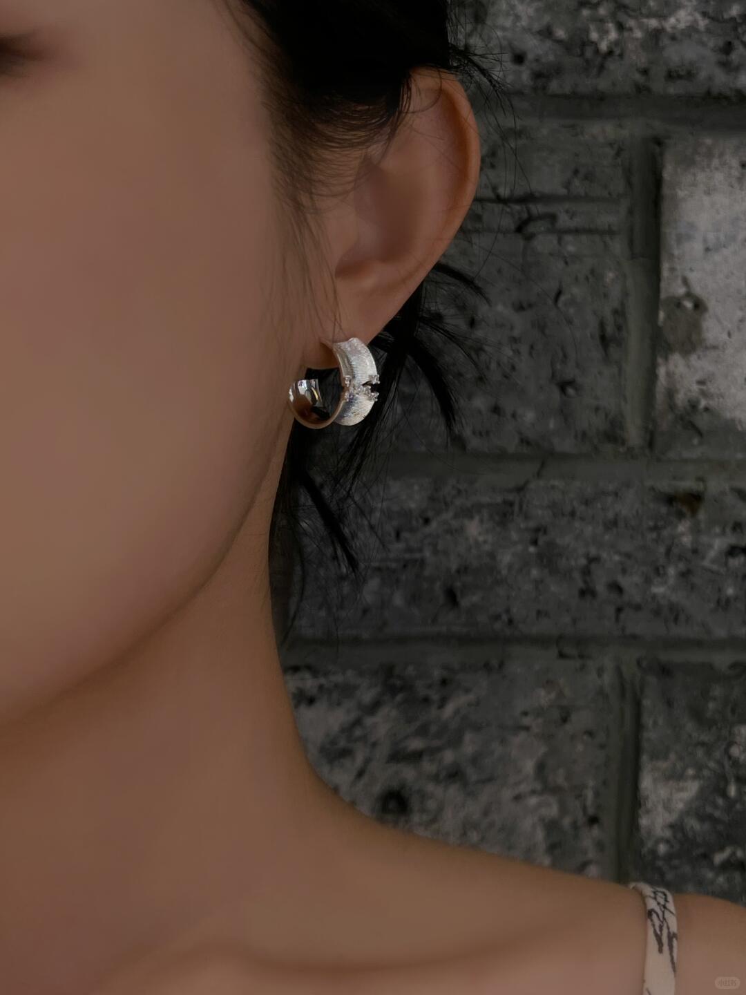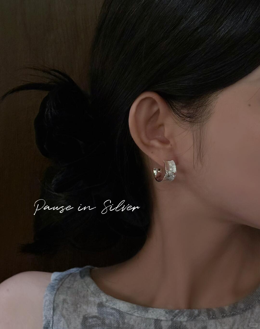 - Design: Minimalist silver hoop with subtle textured sparkle