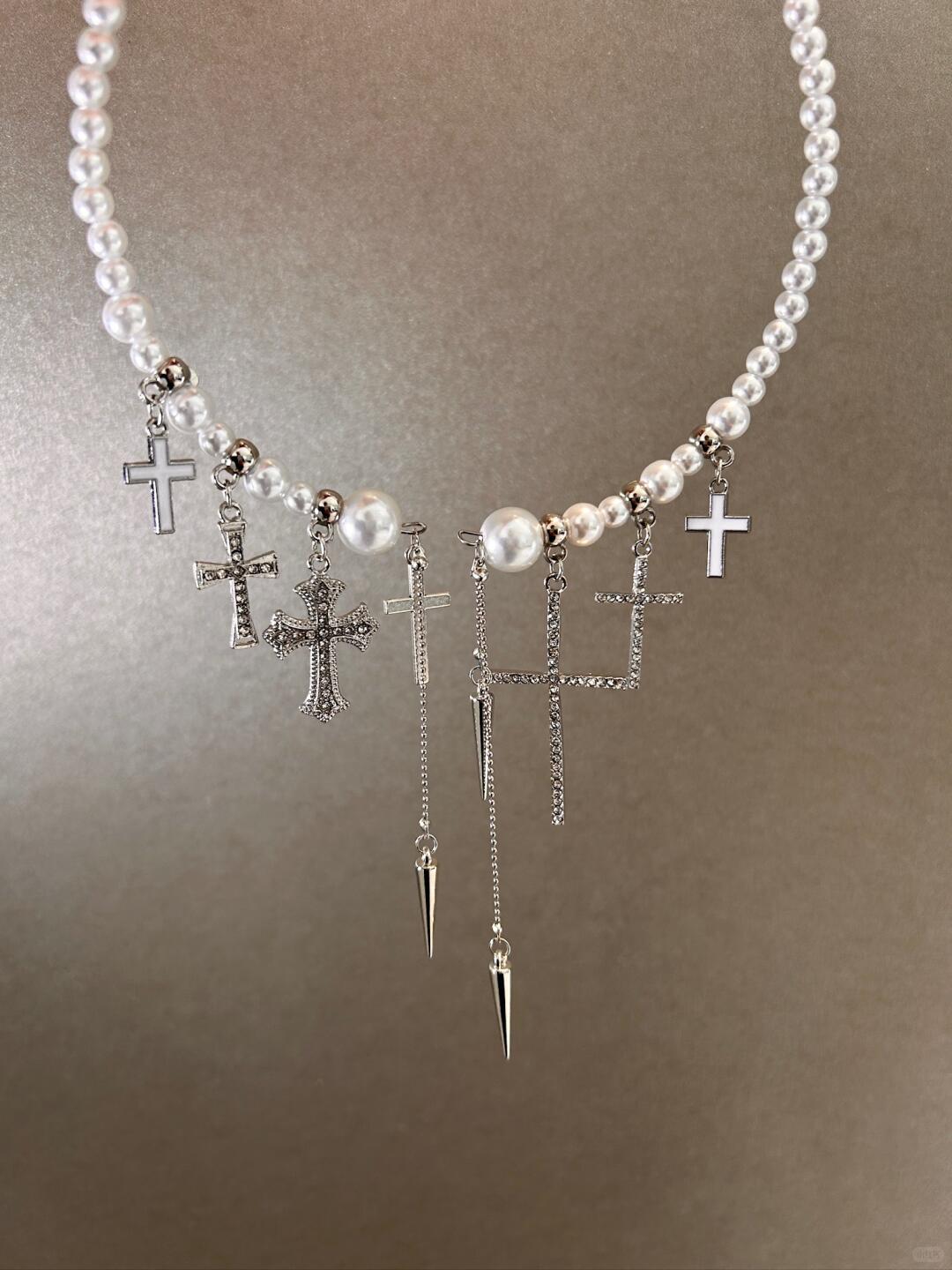 The PearlCr Cross Necklace is inspired by the Y2K gothic aesthetic, blending the timeless beauty of pearls with the boldness of a cross. It’s the perfect accessory for those who embrace their strength and seek their own path.