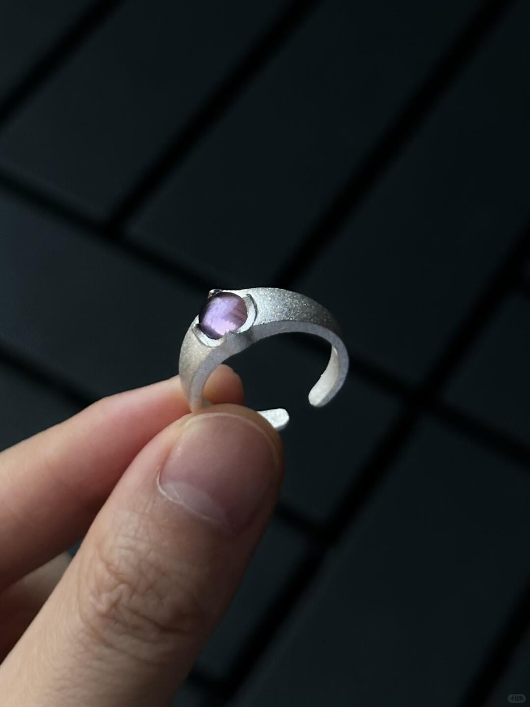 Cast in deep silver alloy, the ring features a disrupted, open-split design — as if broken in half and carefully pieced back together by orbit itself. Its surface is textured, as if worn by tides or crushed by proximity. From certain angles, it reflects starlight; from others, it swallows it whole. It wraps the finger like a soft, silent implosion.