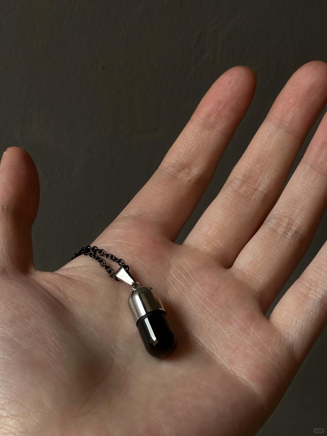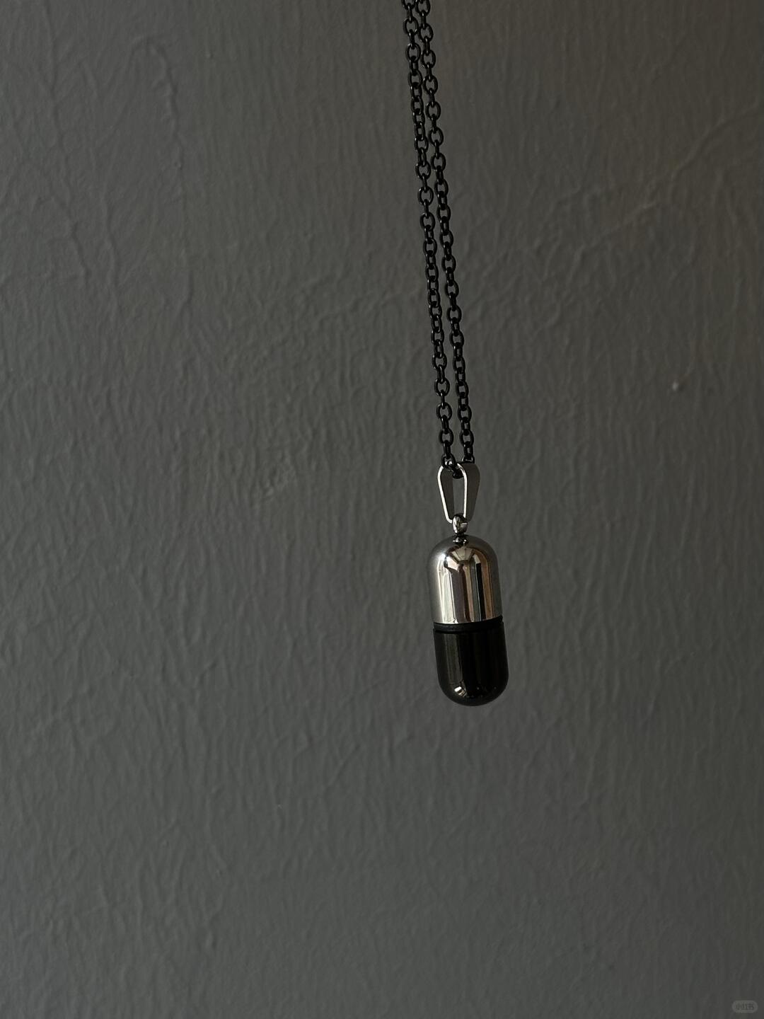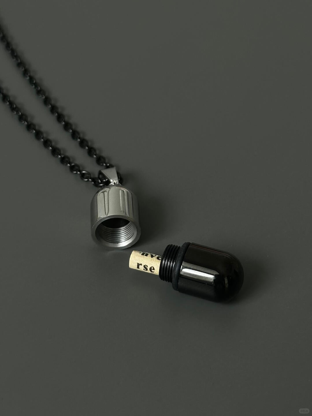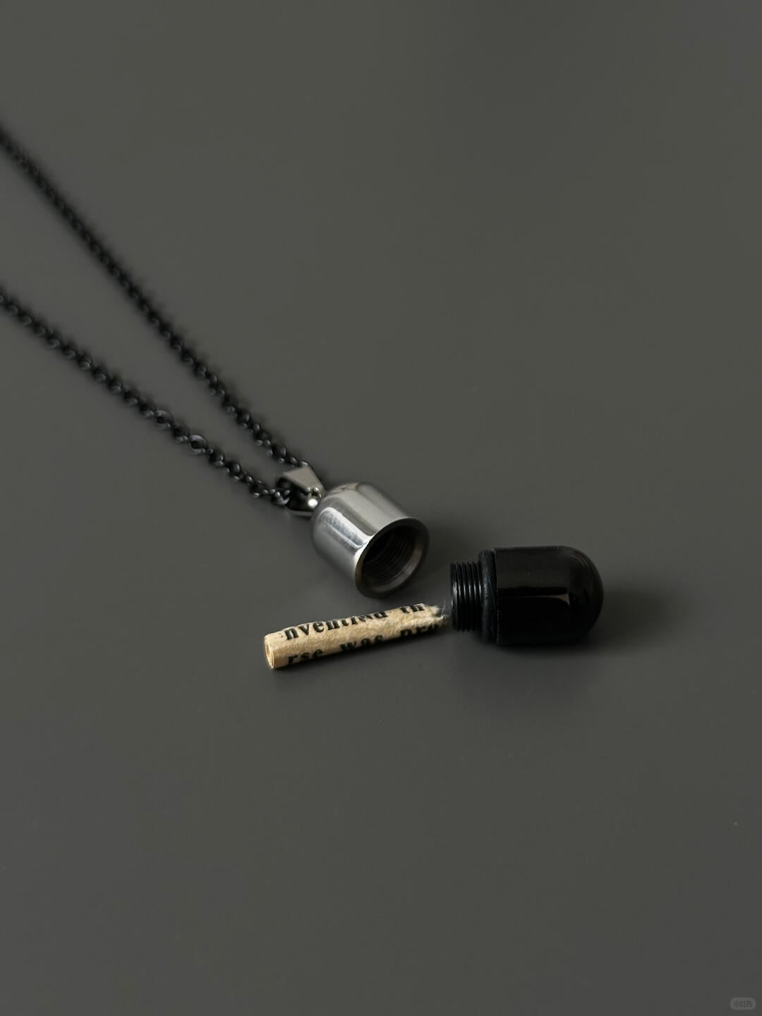 The Poisoned Love Letter Necklace fuses early-2000s nostalgia— flip-phone chrome glitches and VHS static—with gothic minimalism. It’s a wearable trust fall: trust your heart to the poison, trust the relic to outlive desire.