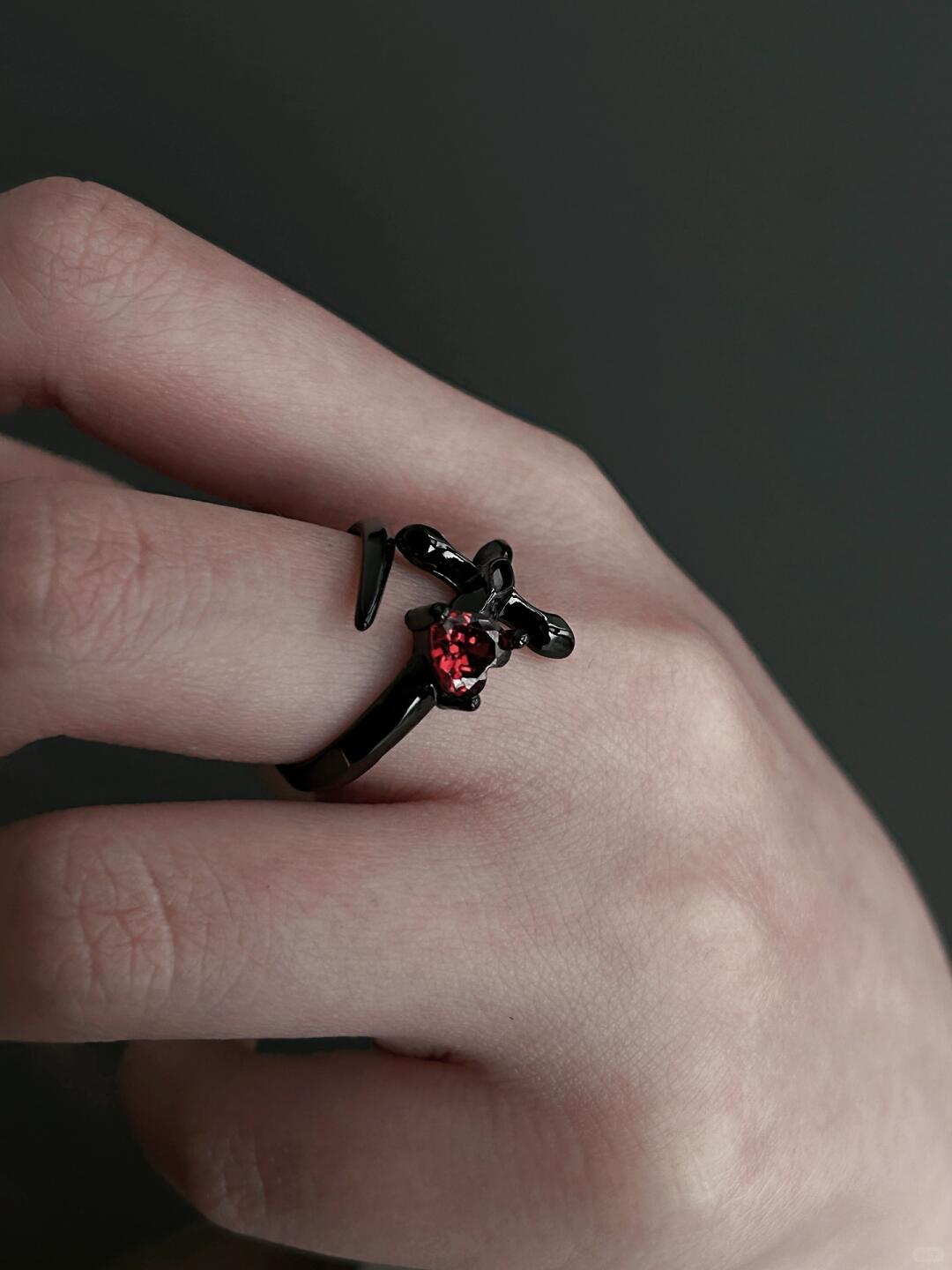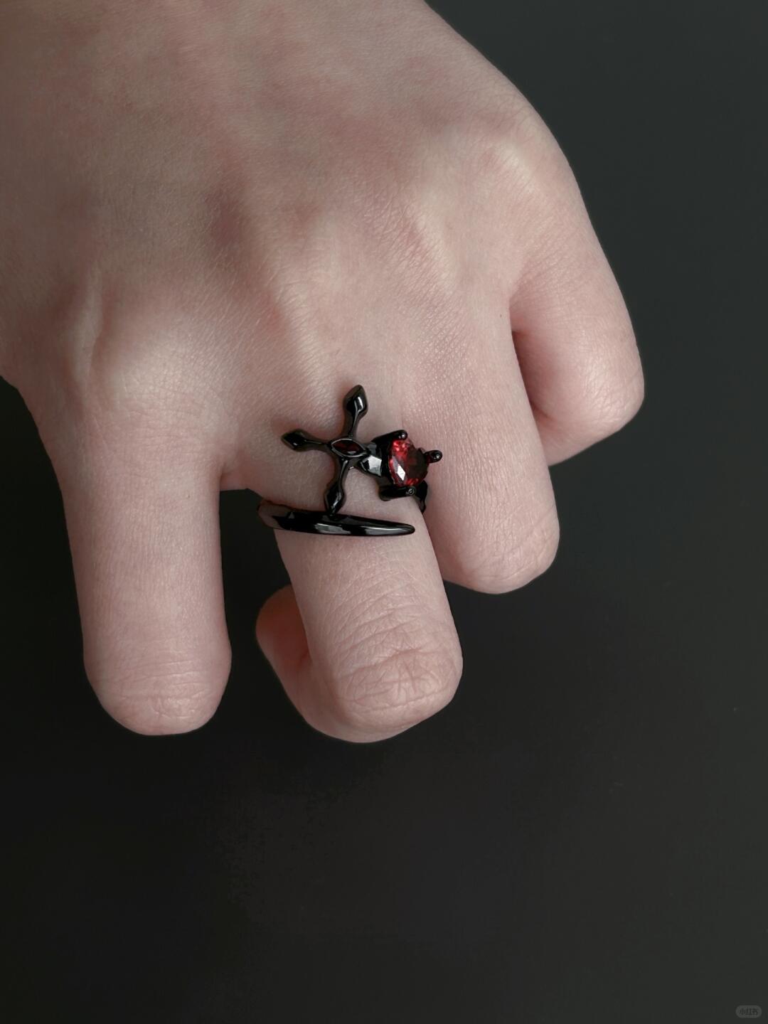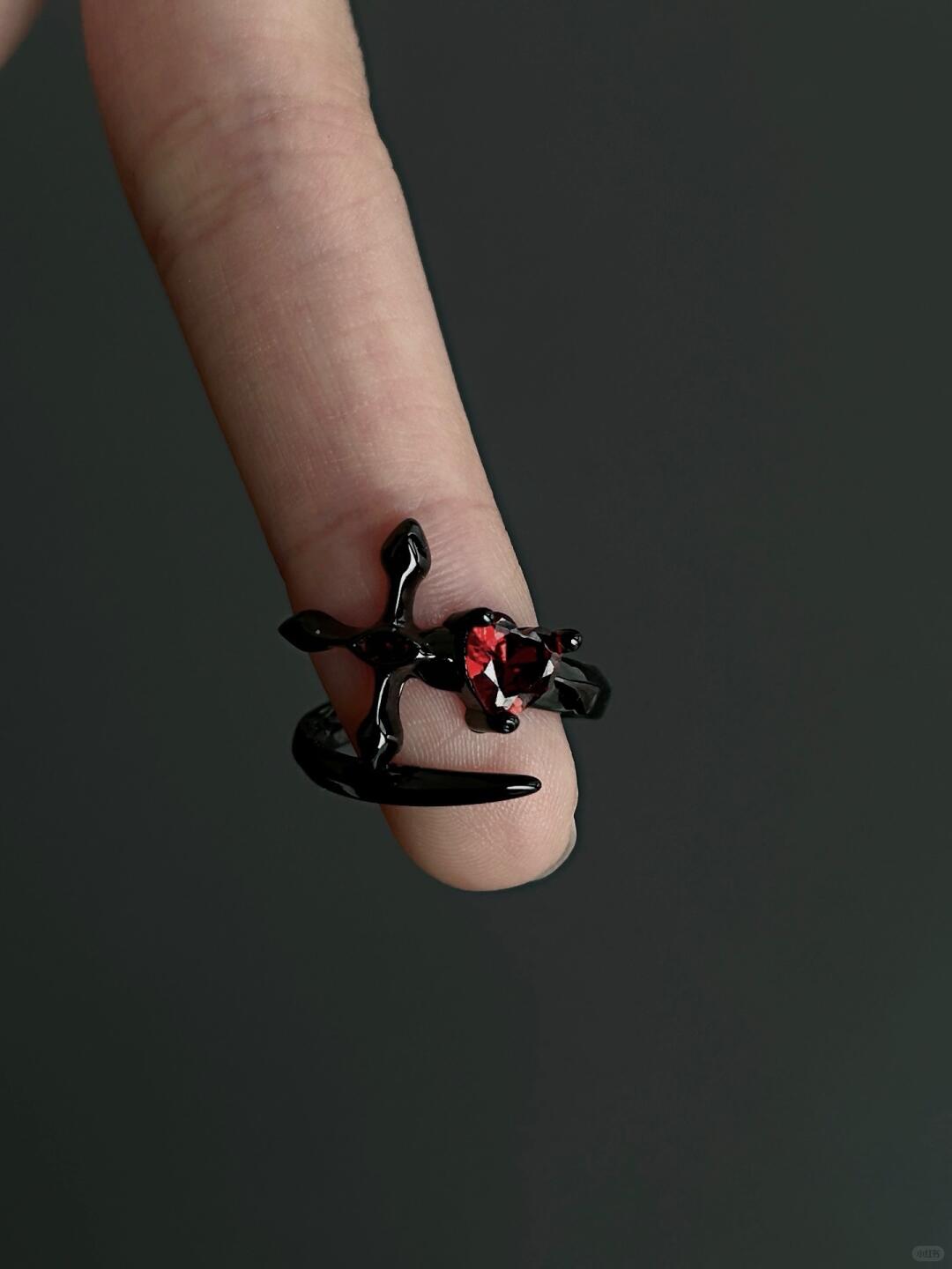 “My heart is a scarlet stone… and I am also the memory of a sword.” Viscera, nape, skeleton—your body bears every fragment. The Scarlet Heart Memory Ring captures that paradox in crimson and steel, a gothic testament to love and loss etched in metal and glass.
