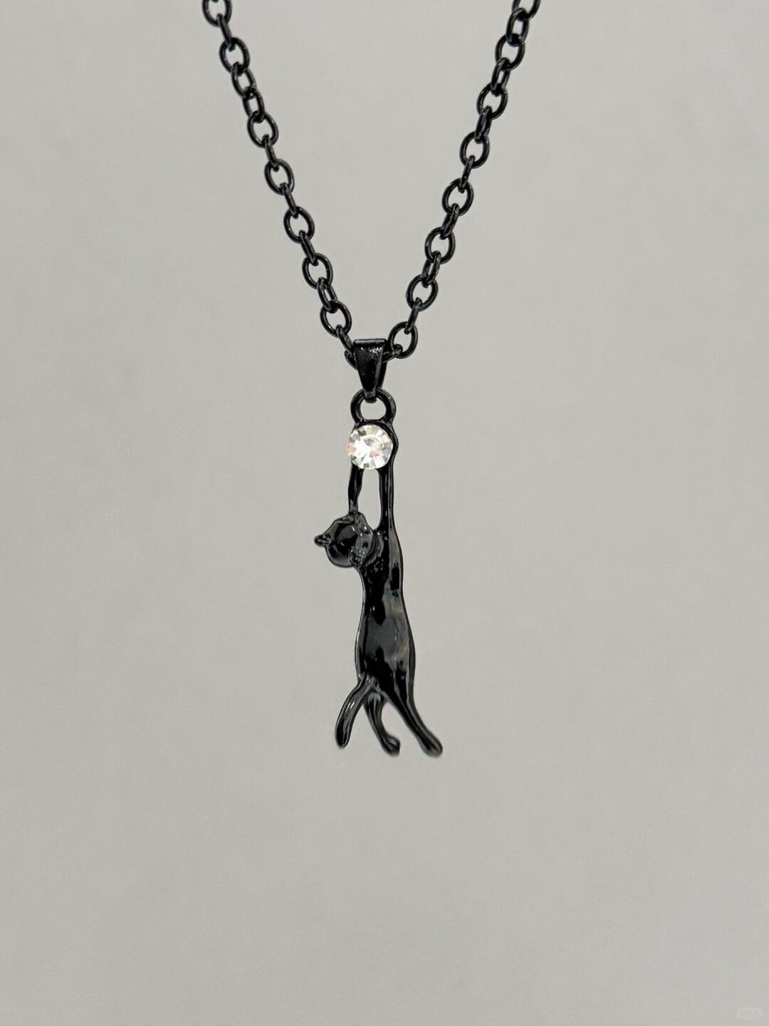 Shiny Stone Necklace | Playful Feline Charm (Limited Edition)