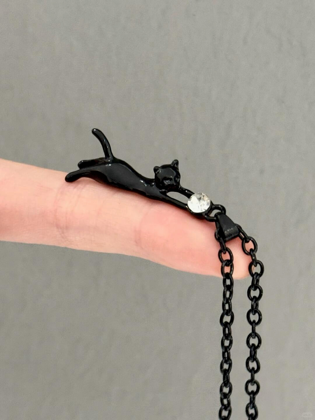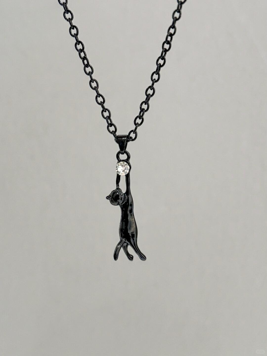- Pendant: Cat-inspired charm with a sparkling stone detail, symbolizing mischief and love