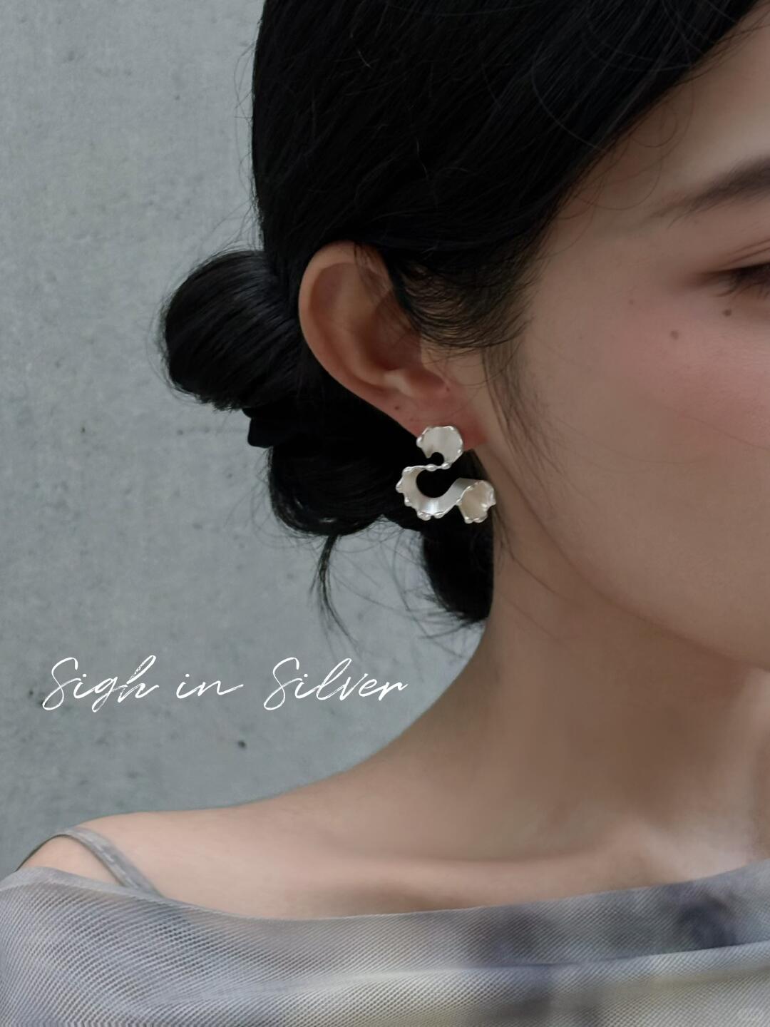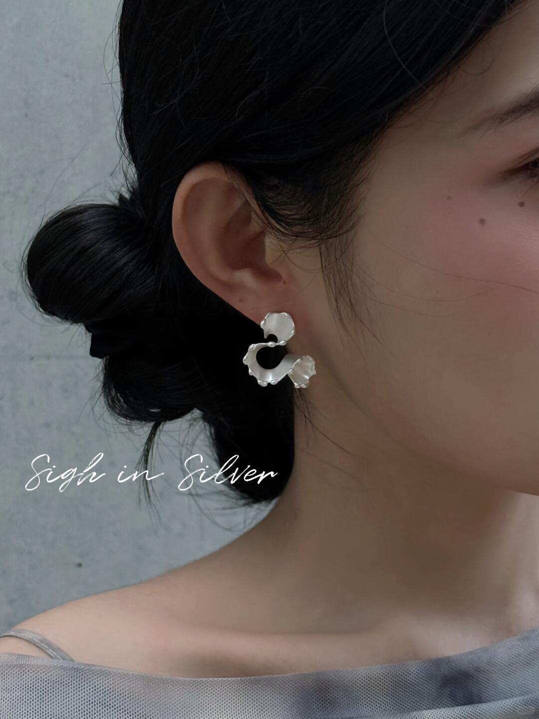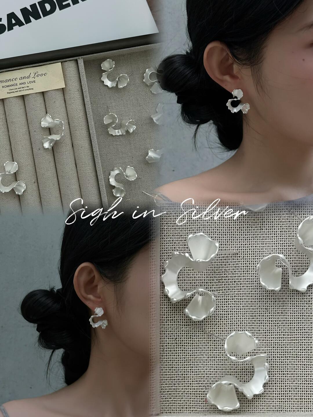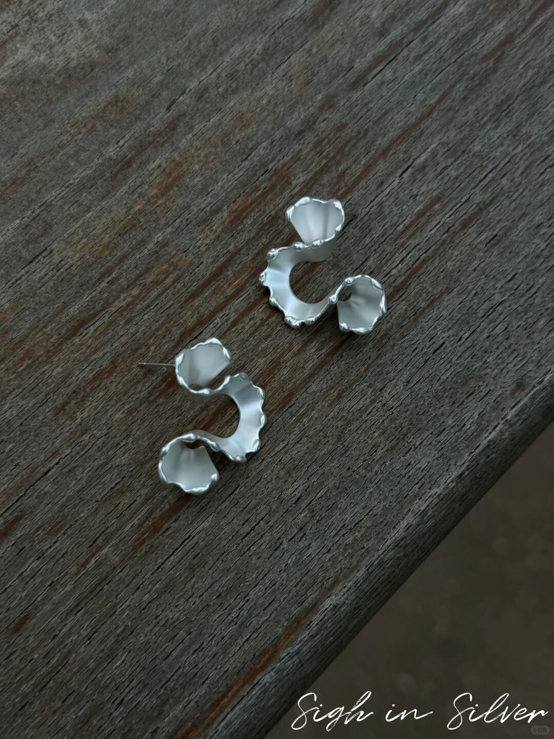 The Y2Bling Sigh in Silver Earrings — Cold Satin capture the hush of tides and the shimmer of moonlight. Pleated folds in silver metal echo rippling water, each curve like a silent line of poetry. Minimal yet full of story, cool yet quietly tender — a dream from the deep sea resting at your ear.