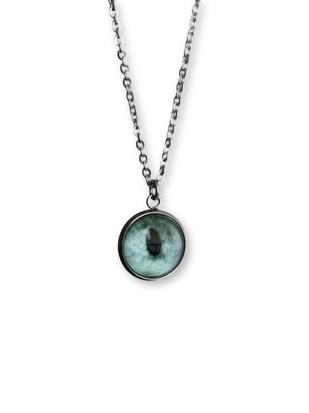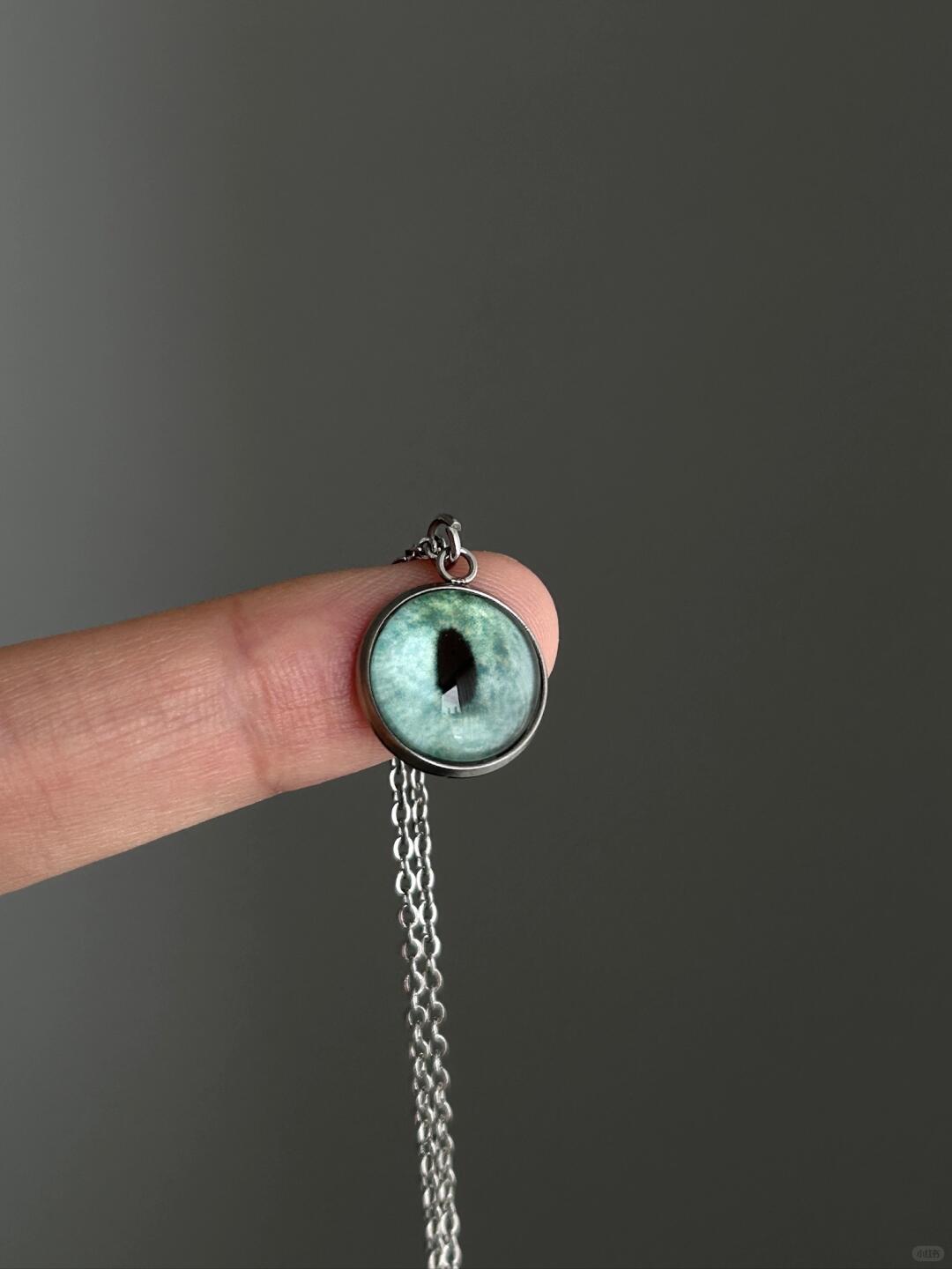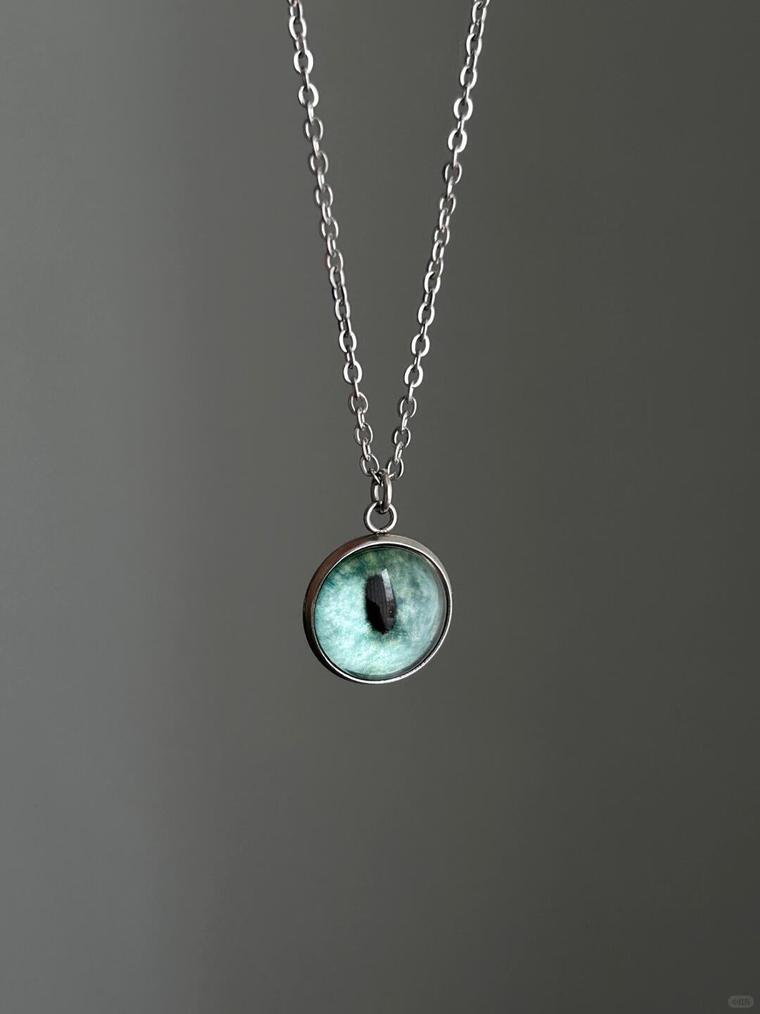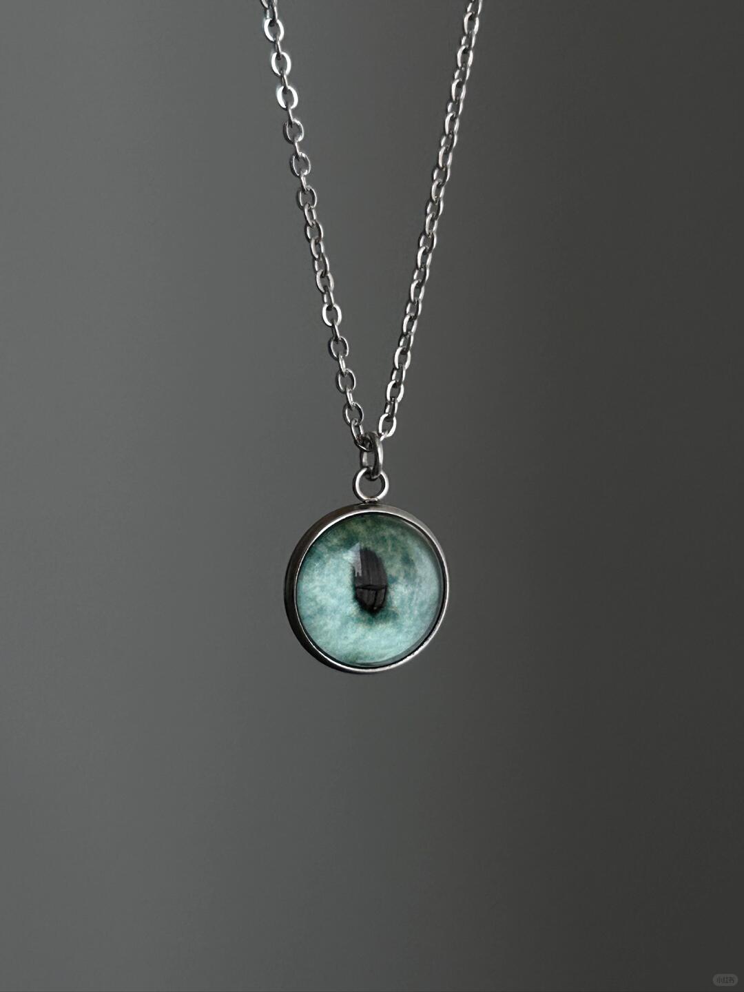 - Pendant: 18 mm sculpted eye motif with micro-etched iris details
