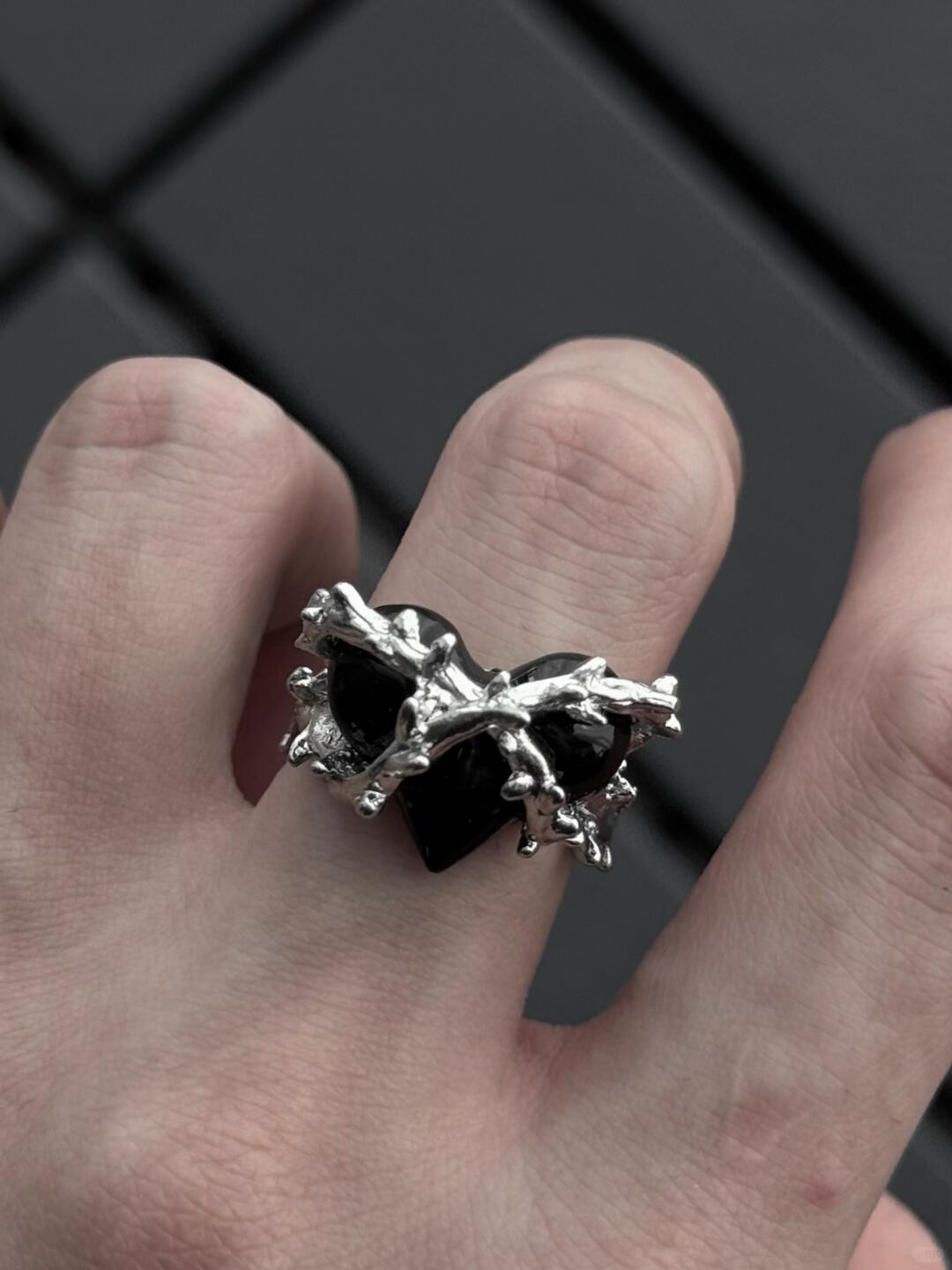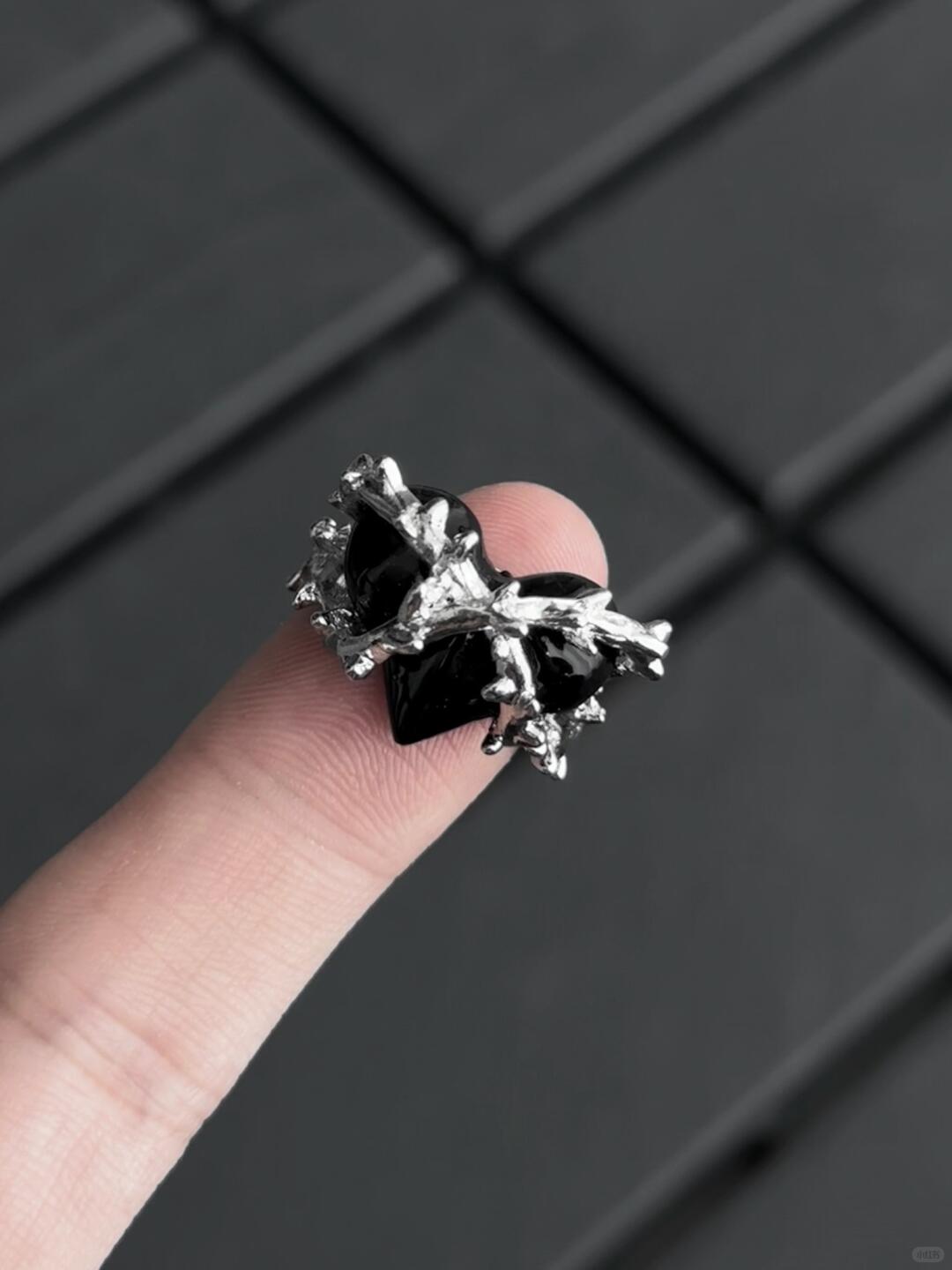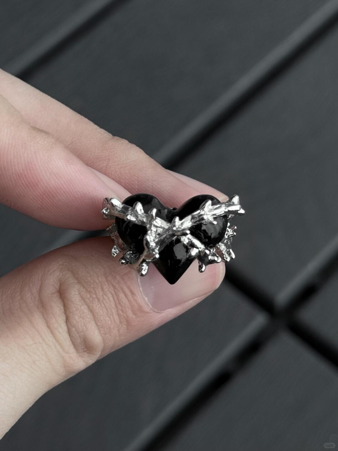 Sorrowful Heart | Thorn-Pierced Black Heart Statement Ring (Y2K Limited)