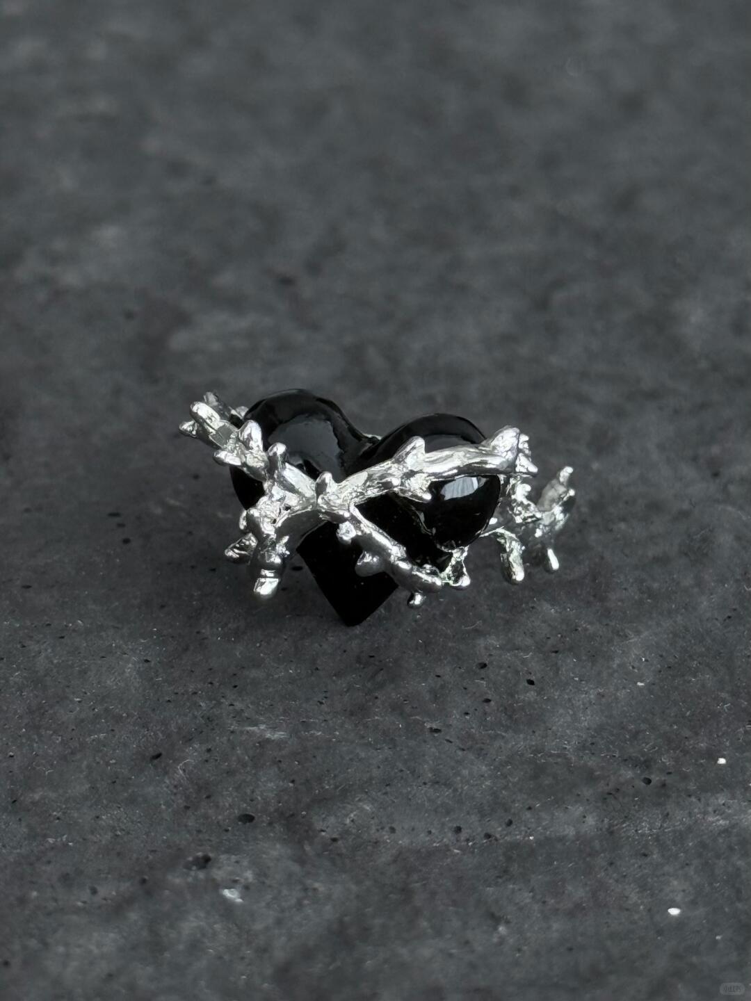 Channel early-2000s industrial chic—flip-phone gleams and pixelated shadows—fused with artisanal precision. The Sorrowful Heart Ring lets your style echo with the intensity of love’s scars.