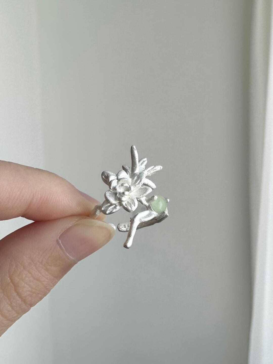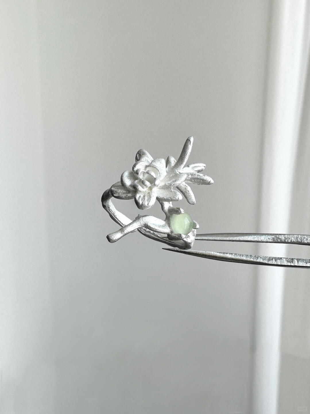 “When wastelands fade, another spring unfolds.” In the Spring Prelude Ring, bamboo shadows dapple across your finger as fallen blossoms kiss quiet waters, stirring gentle ripples of promise.
