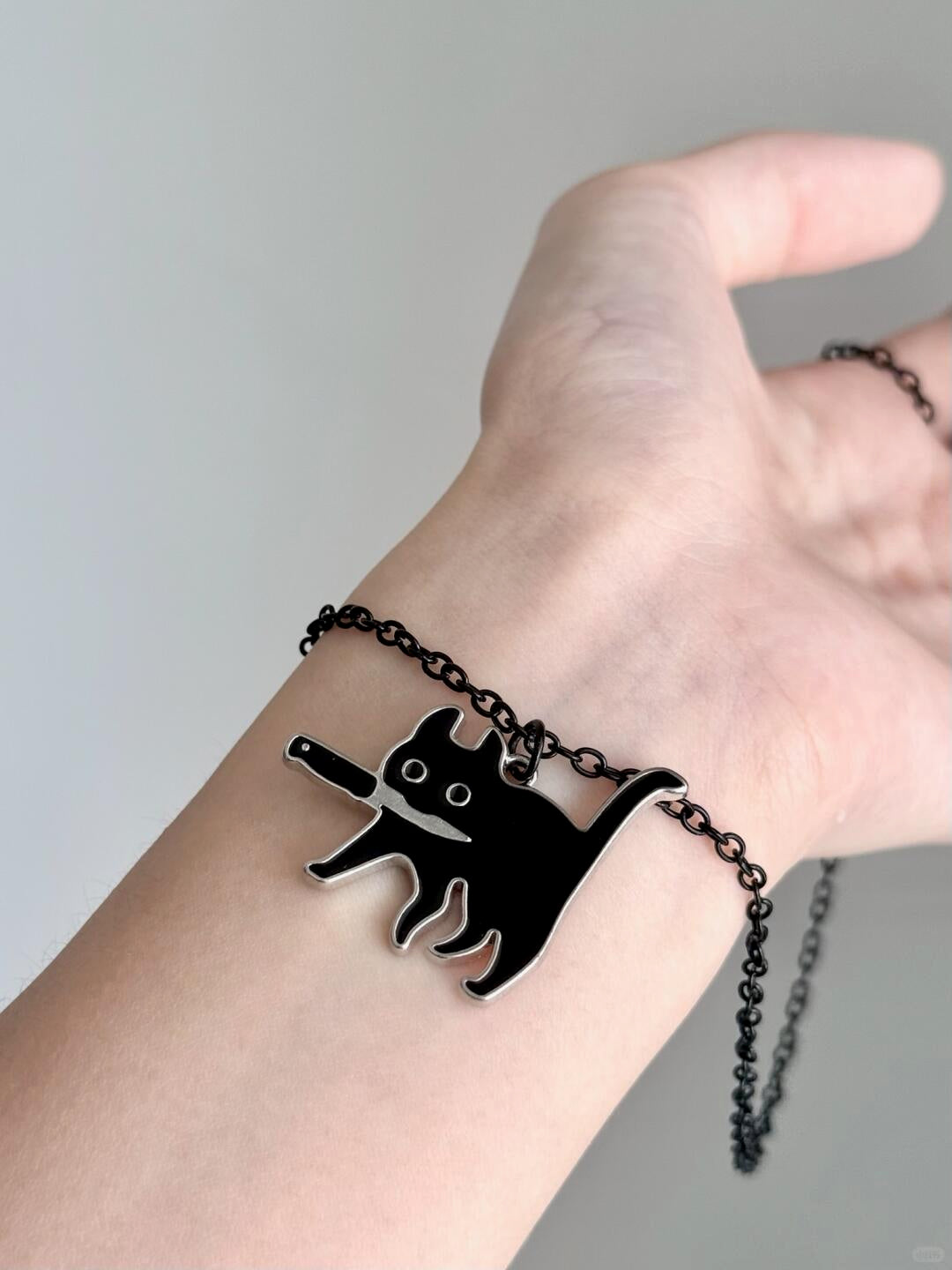 - Pendant: 18 mm sculpted cat silhouette with dagger detail