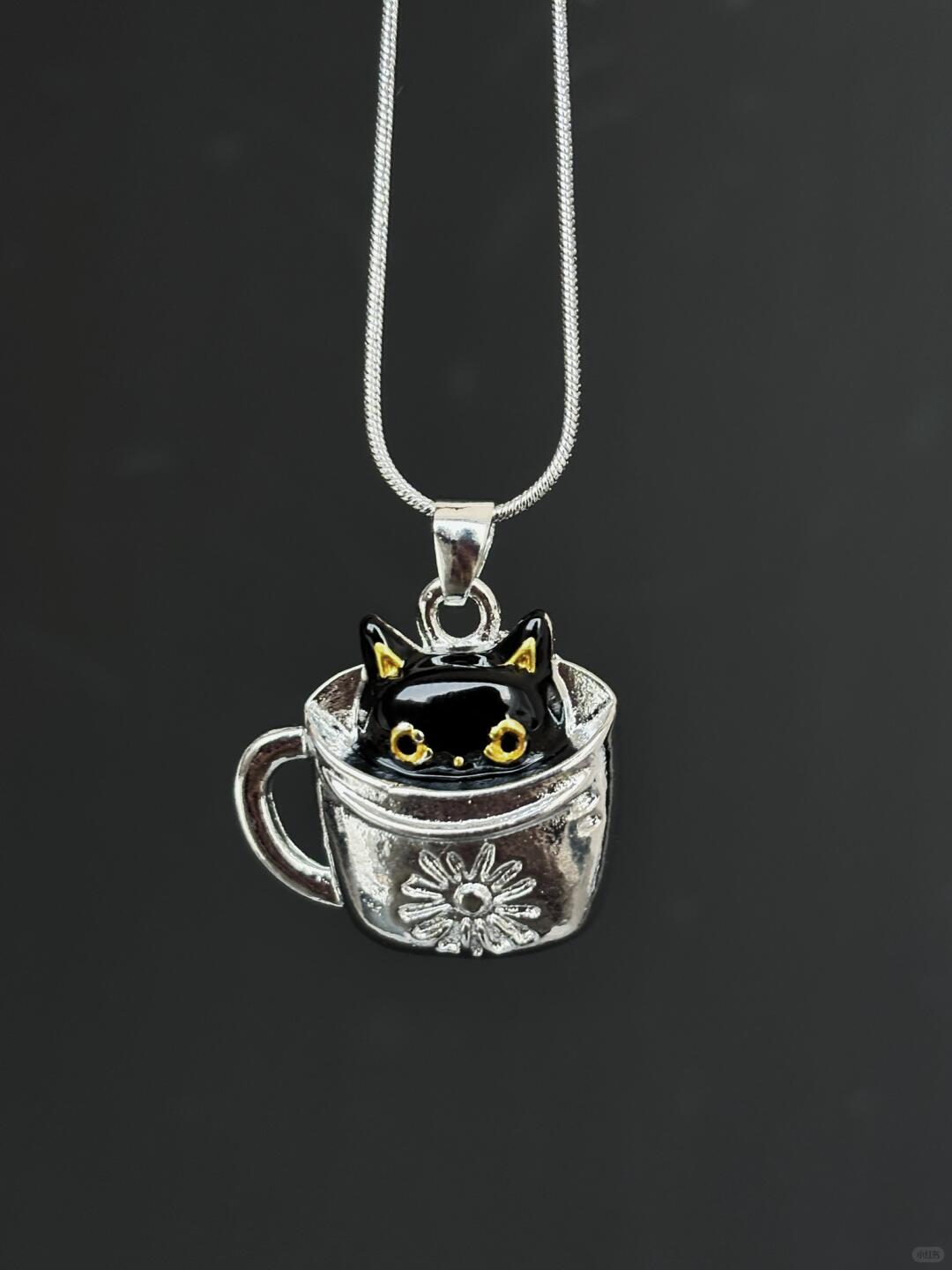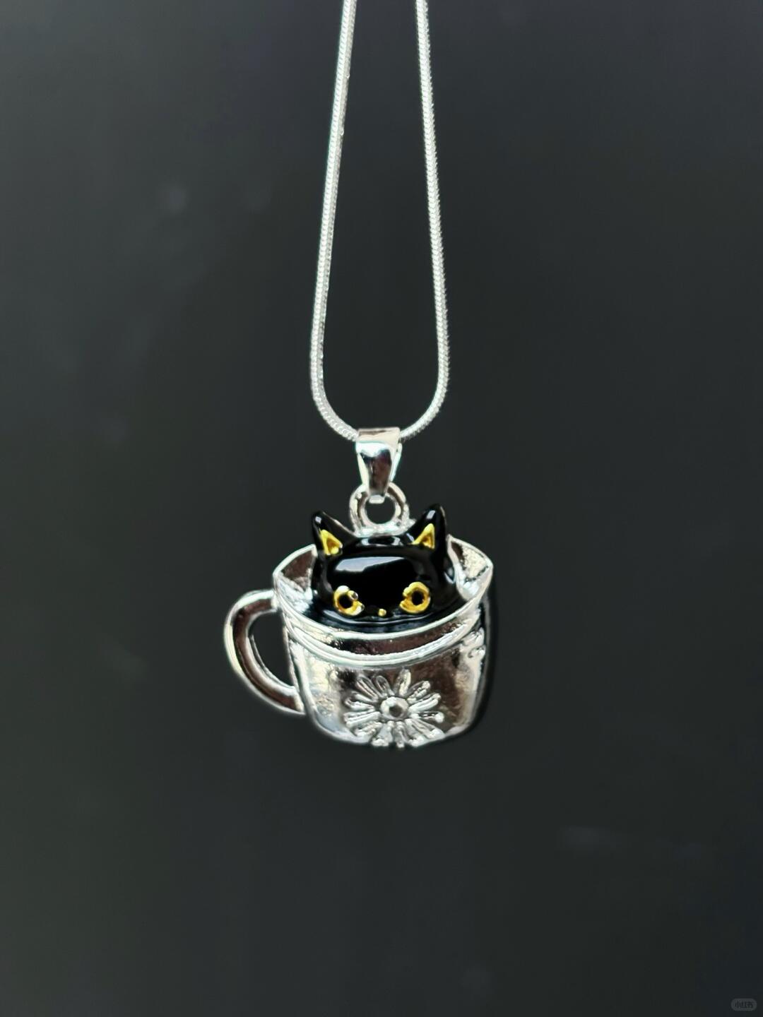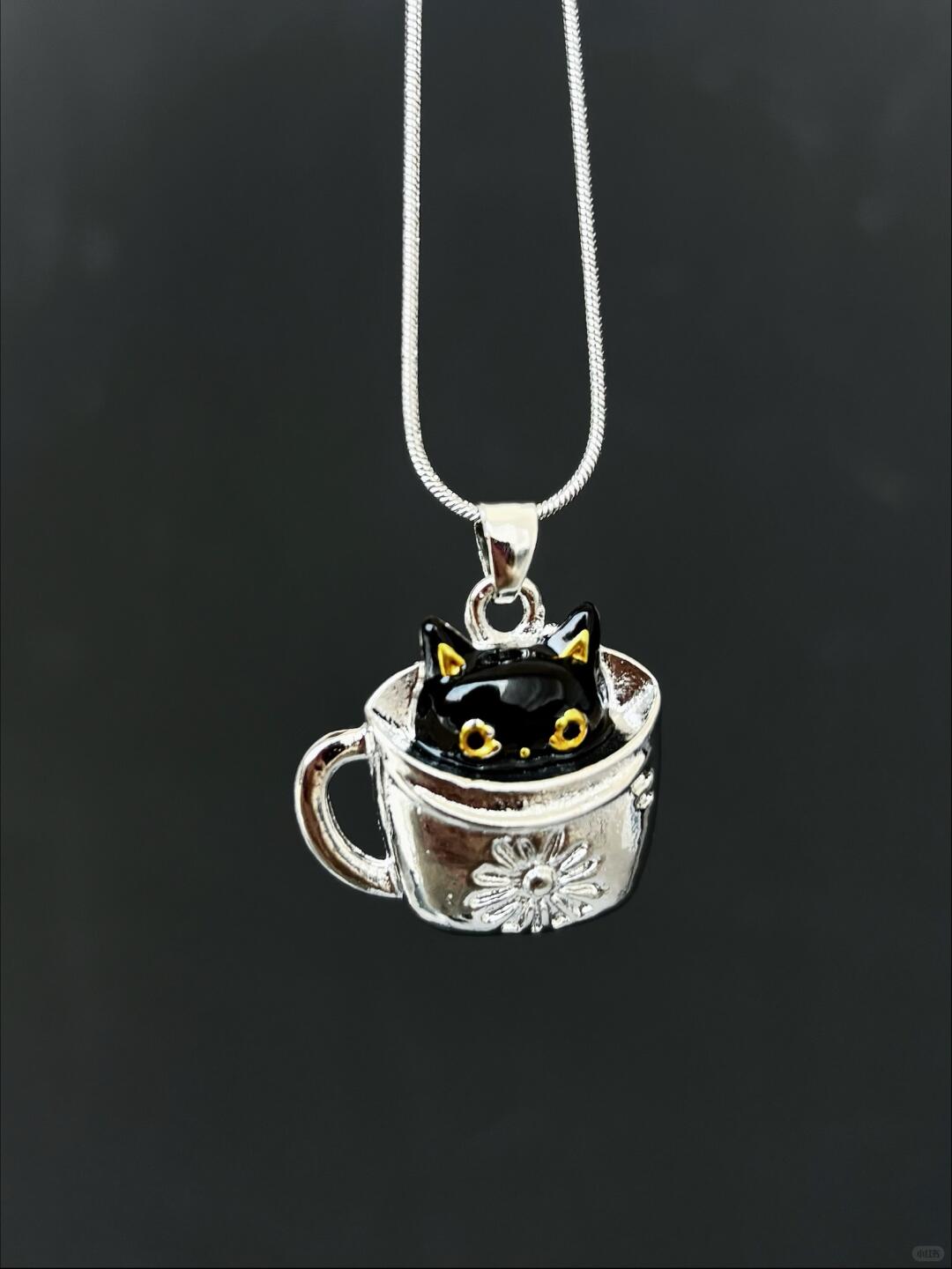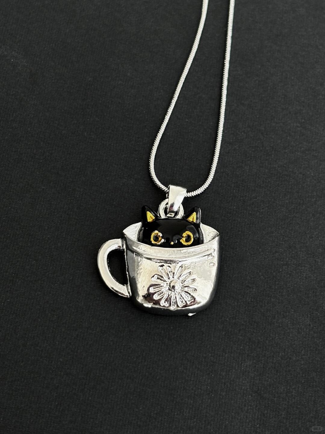 - Pendant: stylized black cat silhouette with lustrous enamel finish