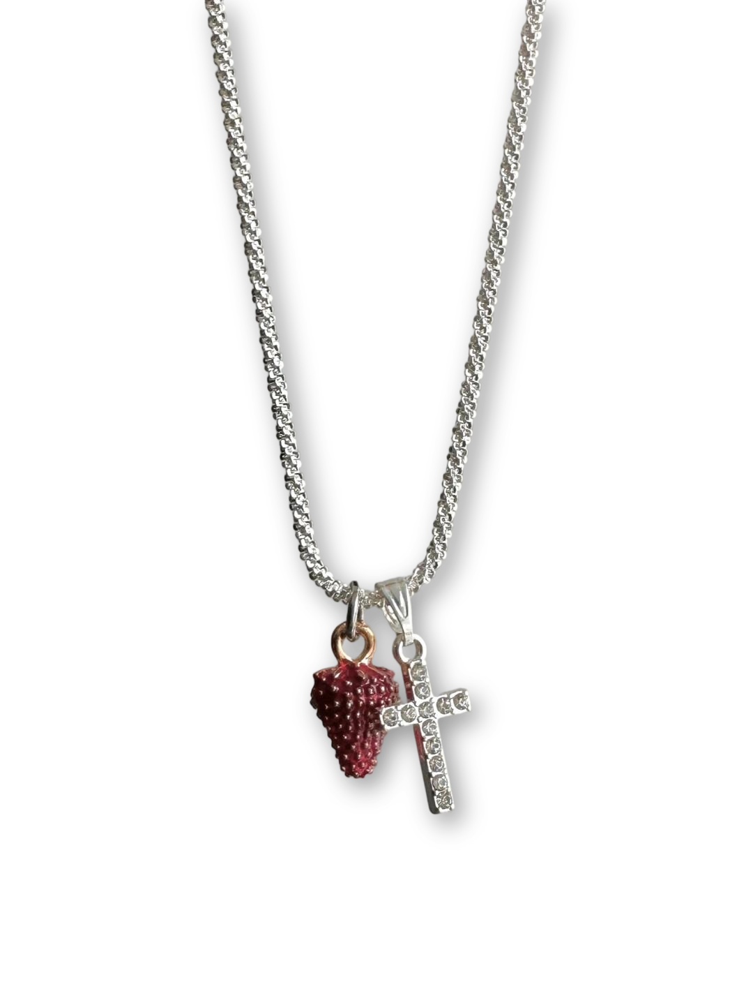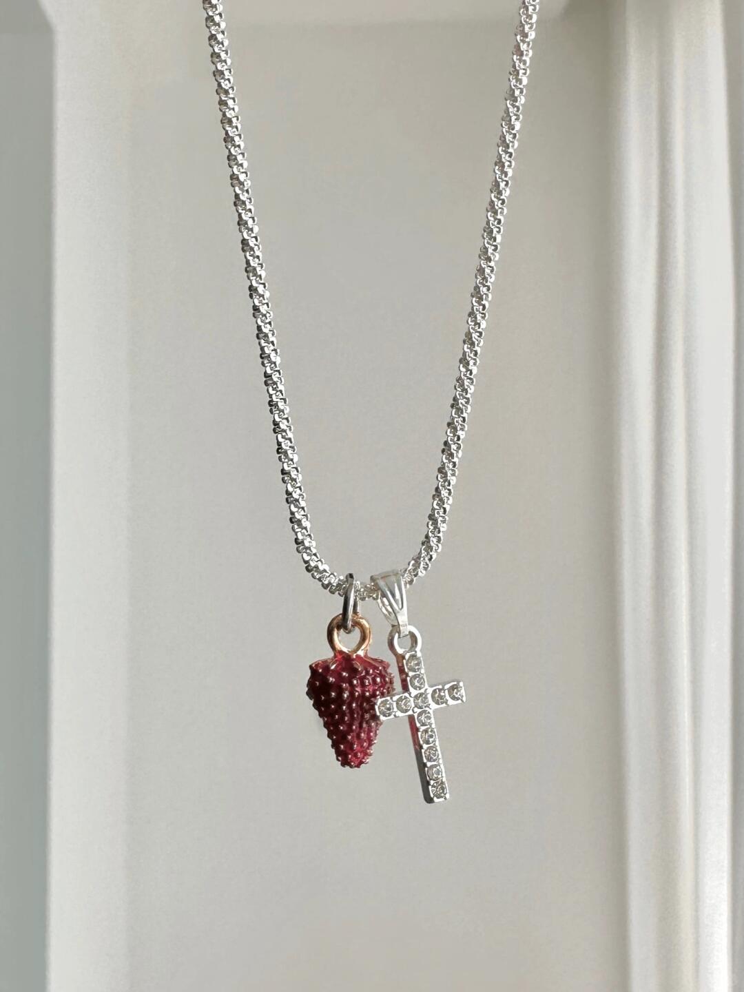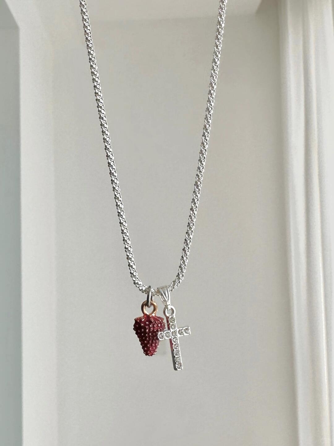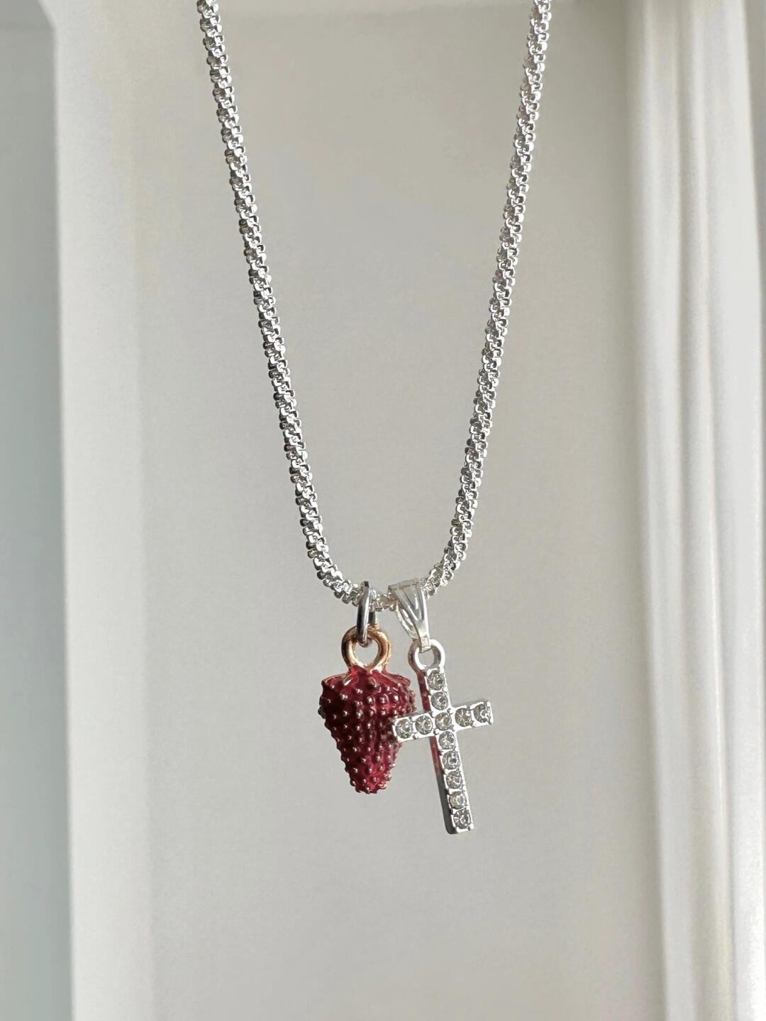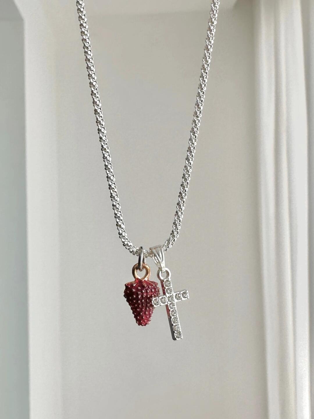 - Pendant: Strawberry-inspired charm with delicate cross and serpent details, symbolizing temptation and beauty