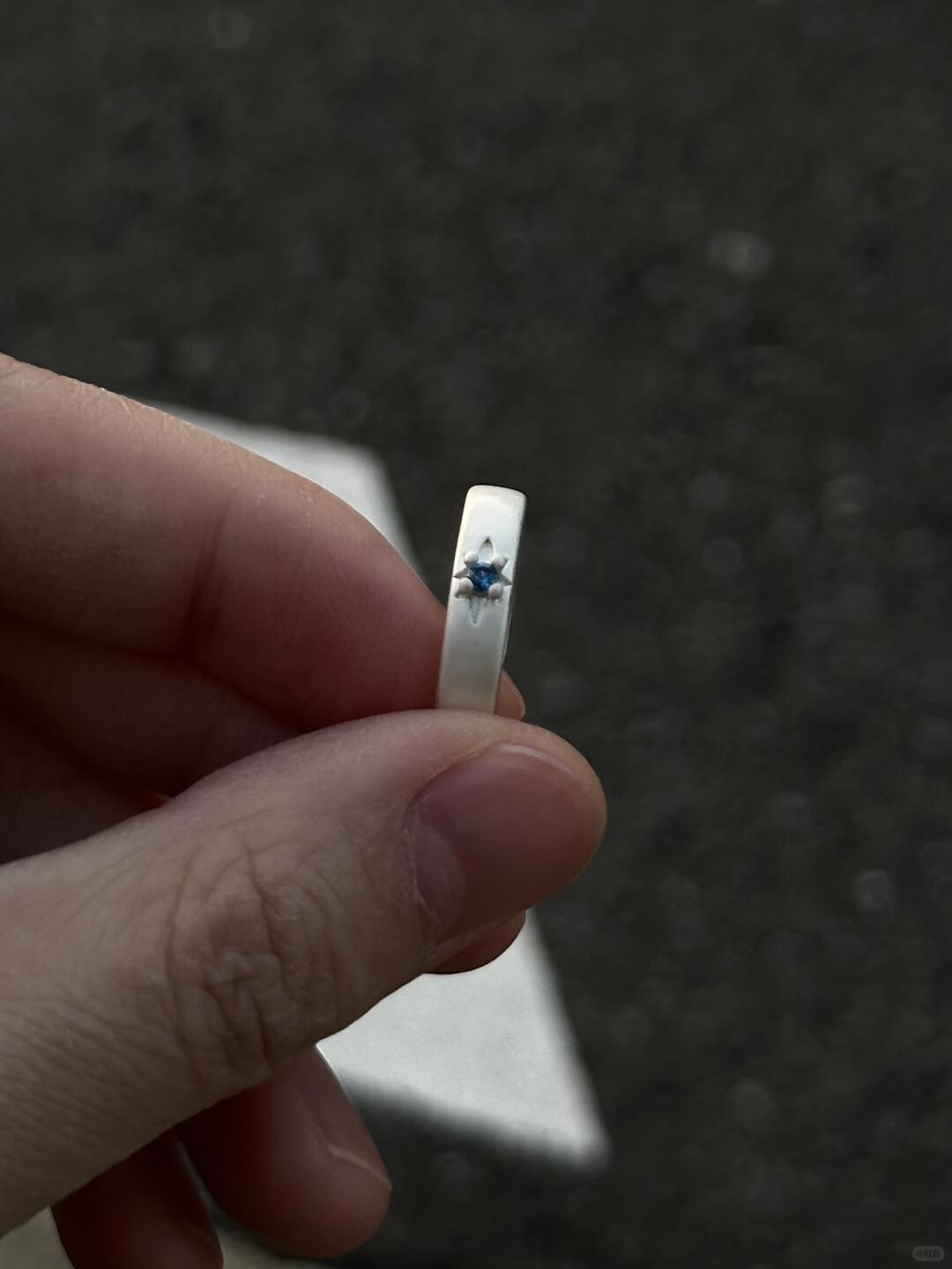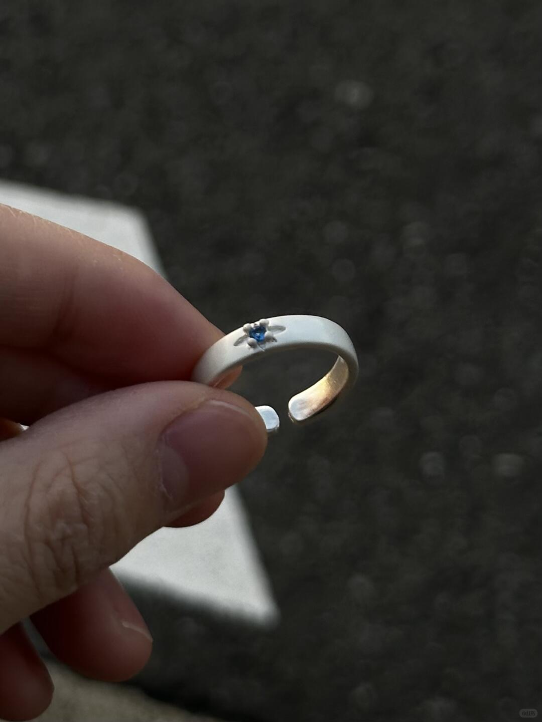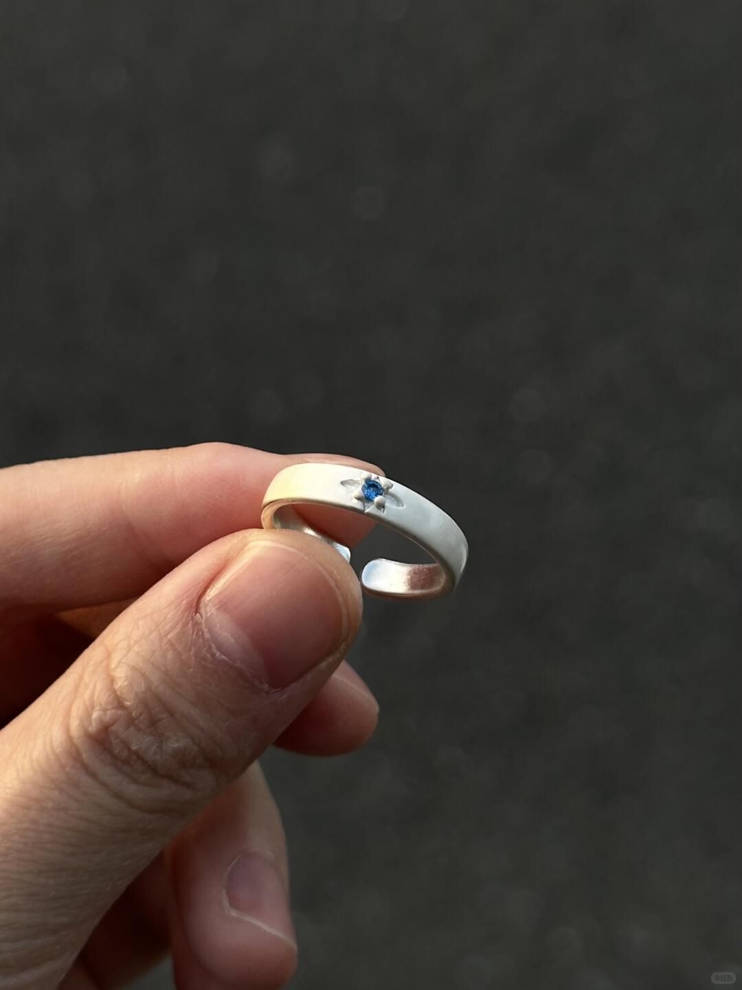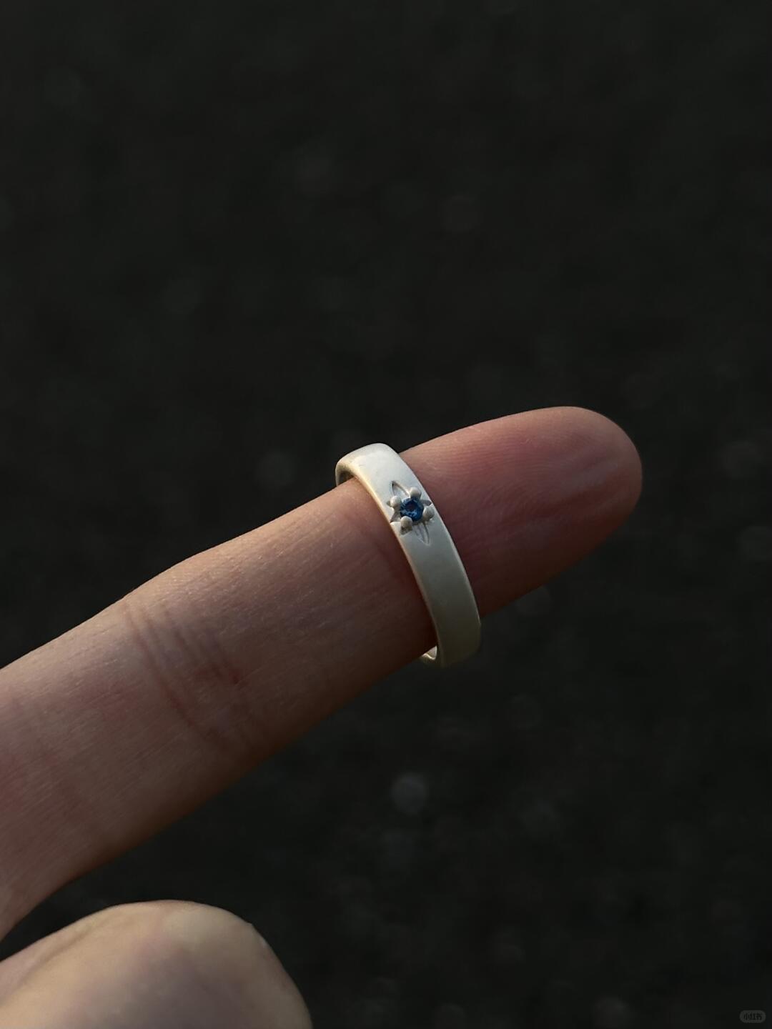 This ring is finished in a luminous ocean-blue sheen, glazed over a slim band with curved edges. The surface catches light like waves do — slowly, deliberately. Its minimal shape holds maximum feeling. Smooth, cool, and deep-toned, it rests lightly on the finger but leaves weight in its meaning.