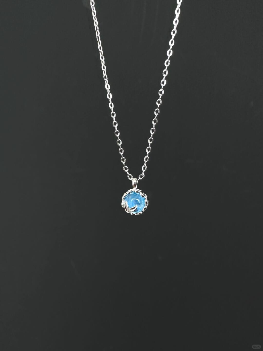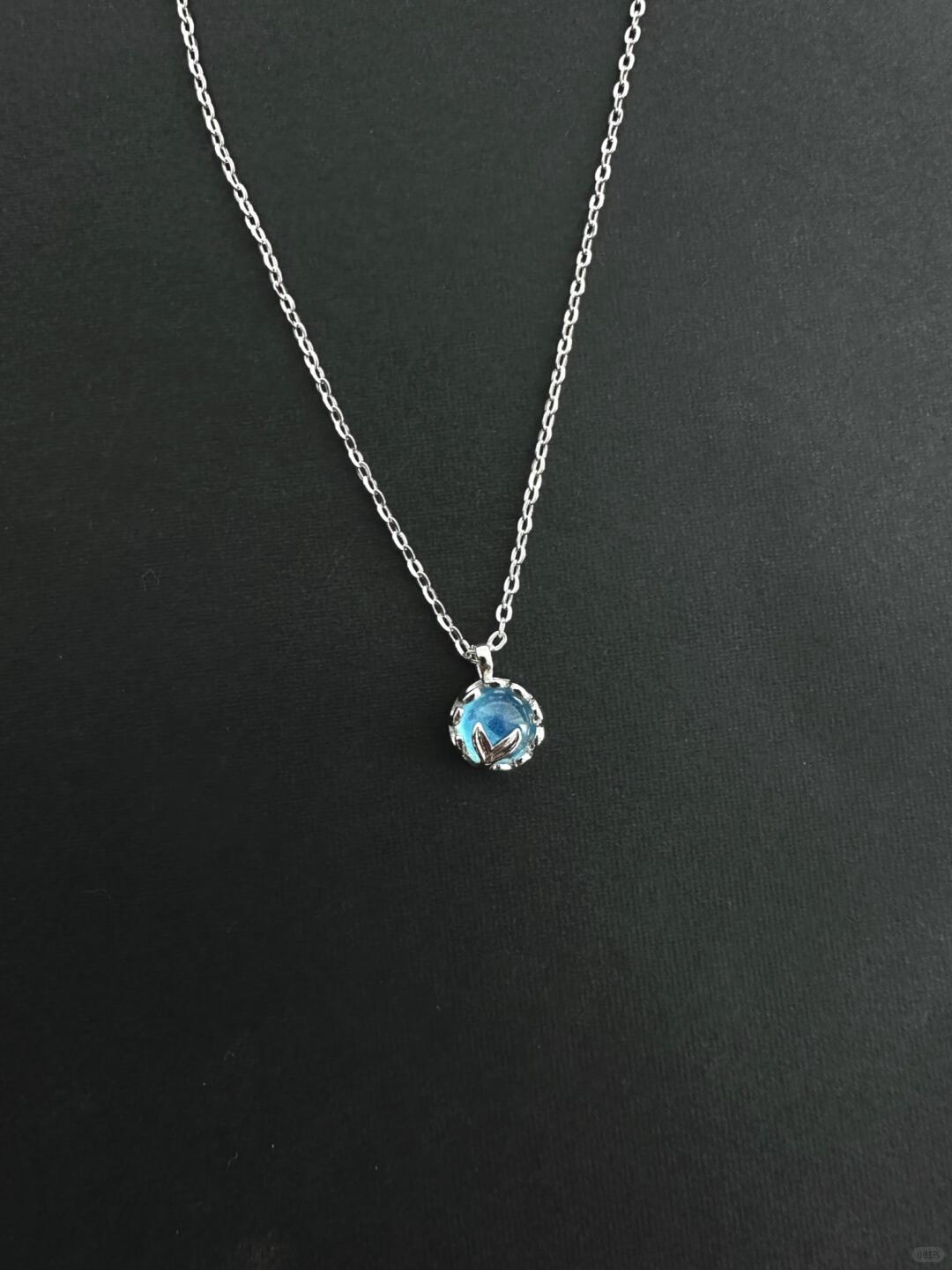 - Pendant: 8 mm ocean-blue resin teardrop infused with shimmering star flecks