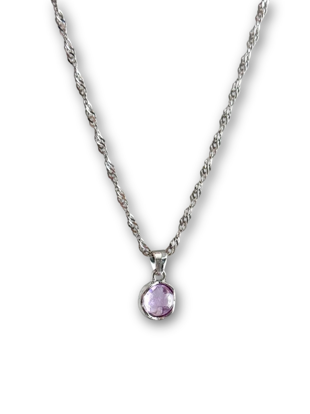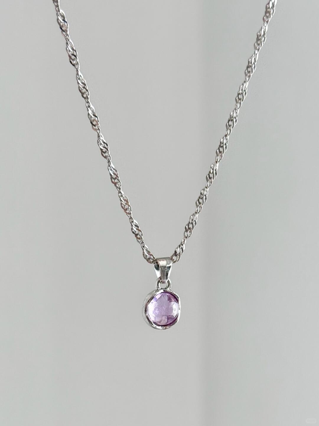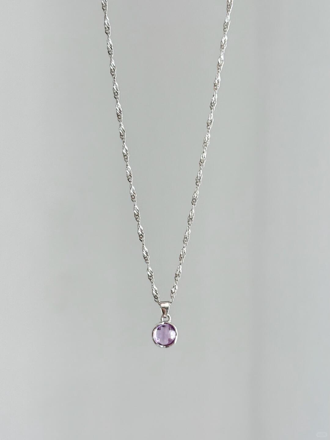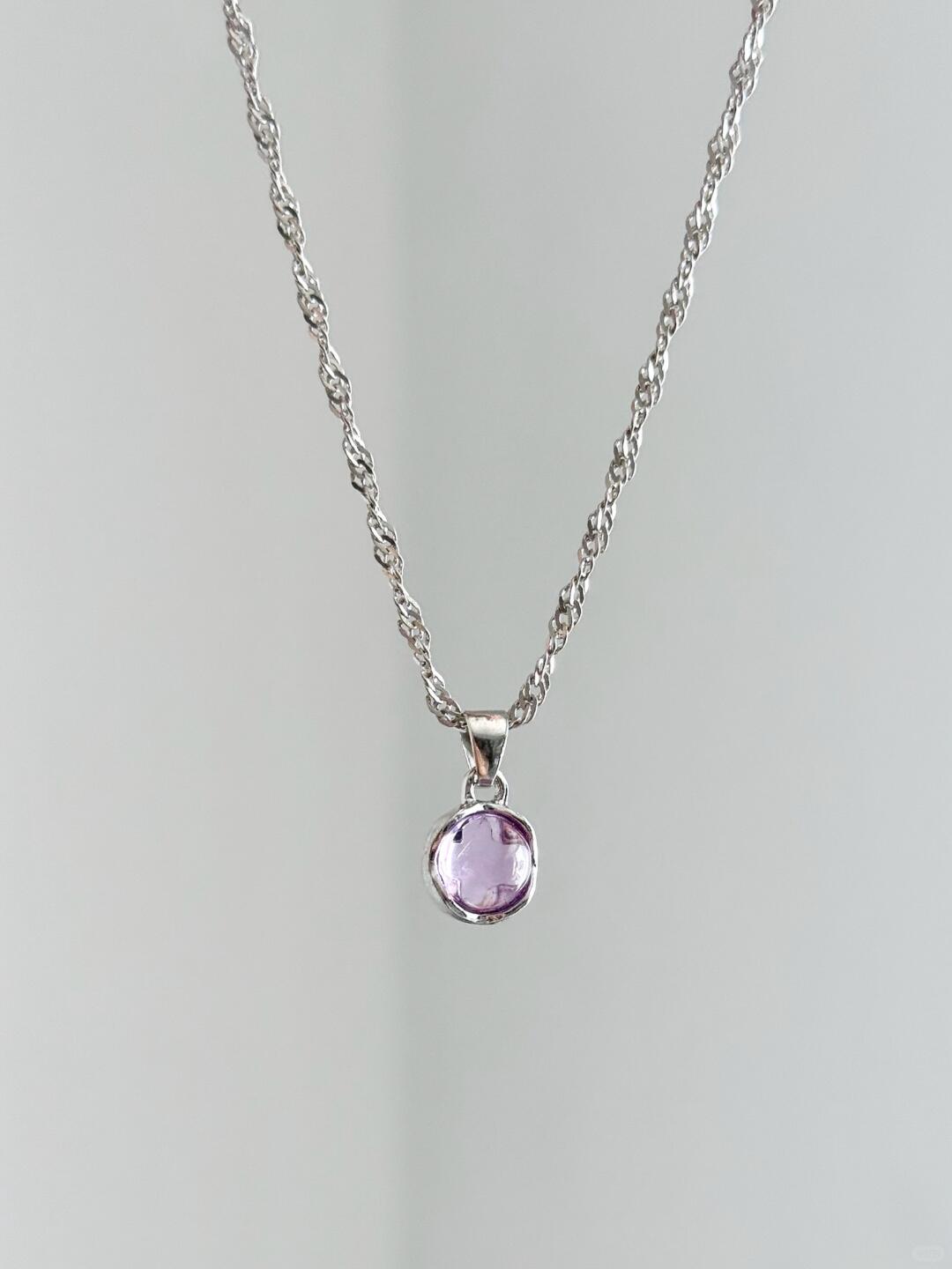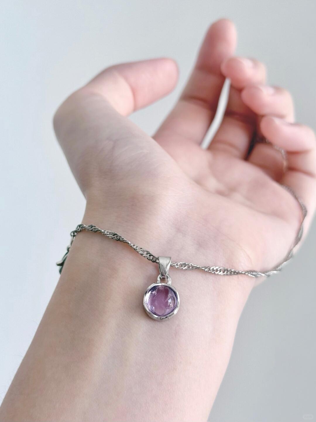 - Pendant: Violet-hued crystal encased in a delicate silver frame, symbolizing dreams and serenity