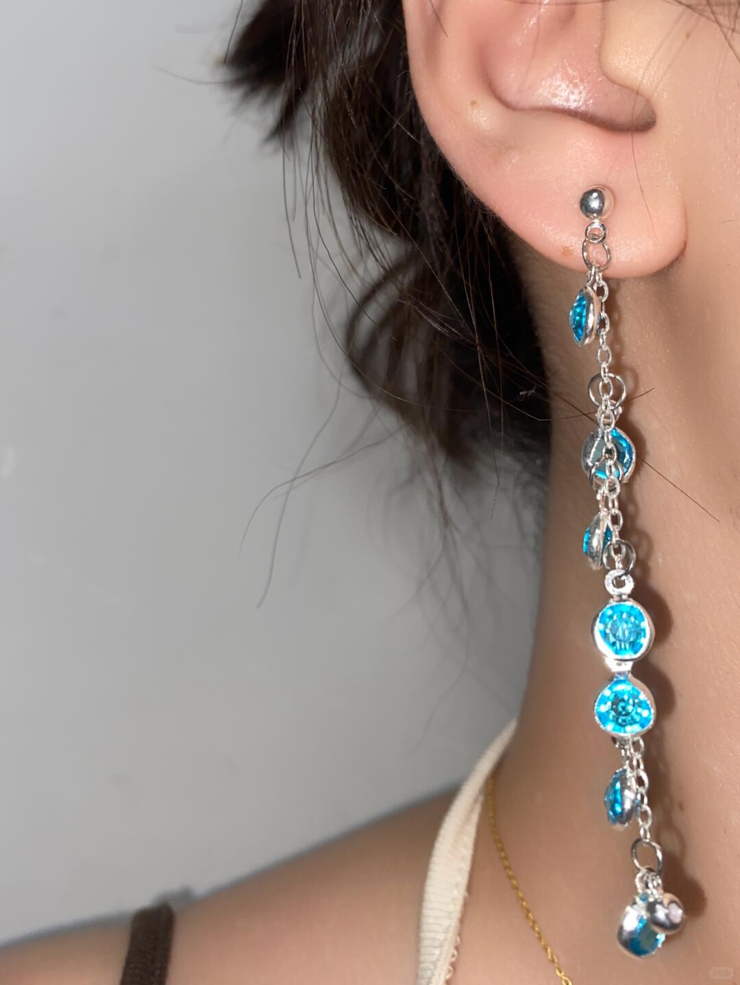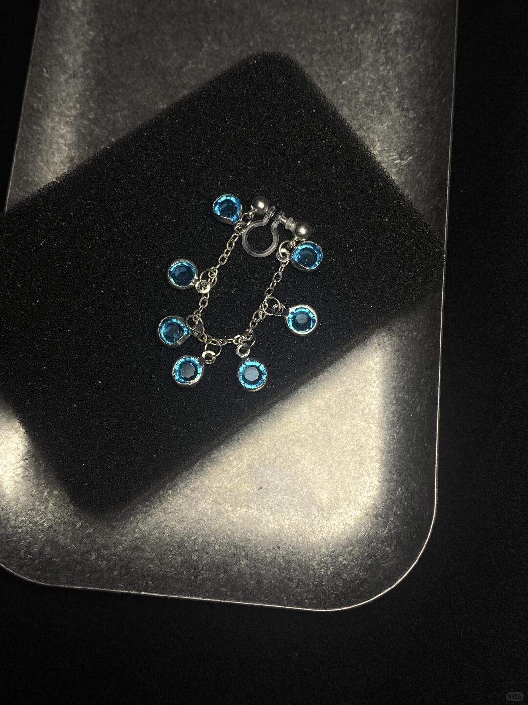 Water Color Ear Clips bring that cool, dewy blue to a clip-on format. The rear charm detaches so you can switch between a clean front look or a fuller drop — two ways, one pair. Hand‑modified resin clips mean secure hold with a lightweight feel.