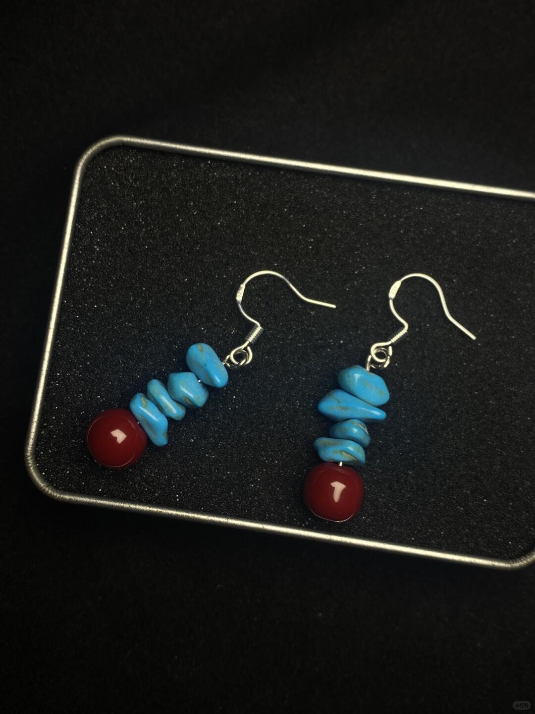 - Design: Asymmetric turquoise‑tone + cinnabar‑red stones, each unique