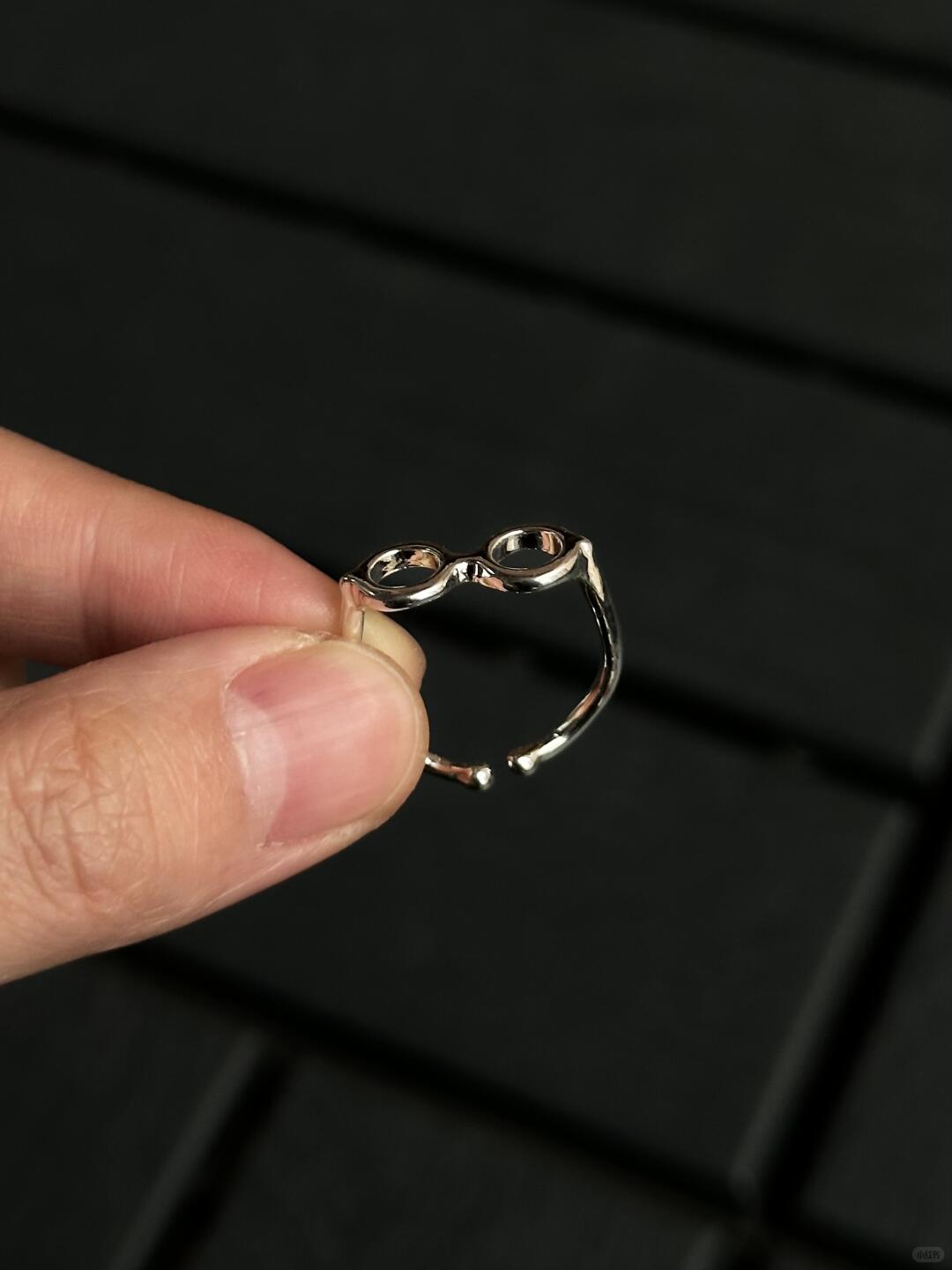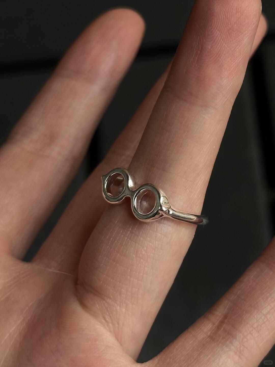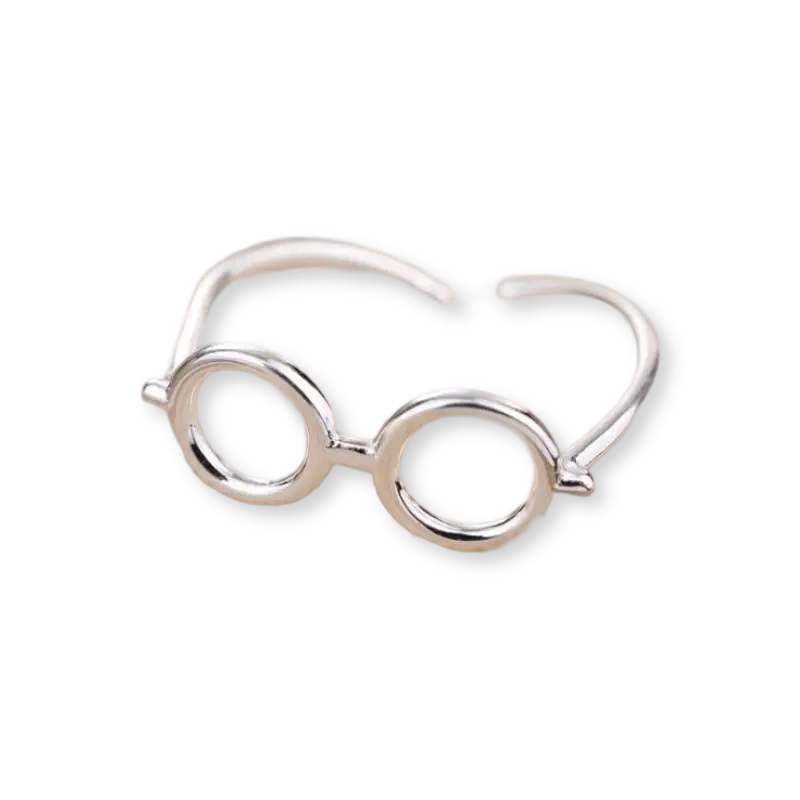- Design: detailed replica of classic round glasses perched atop a 4 mm band